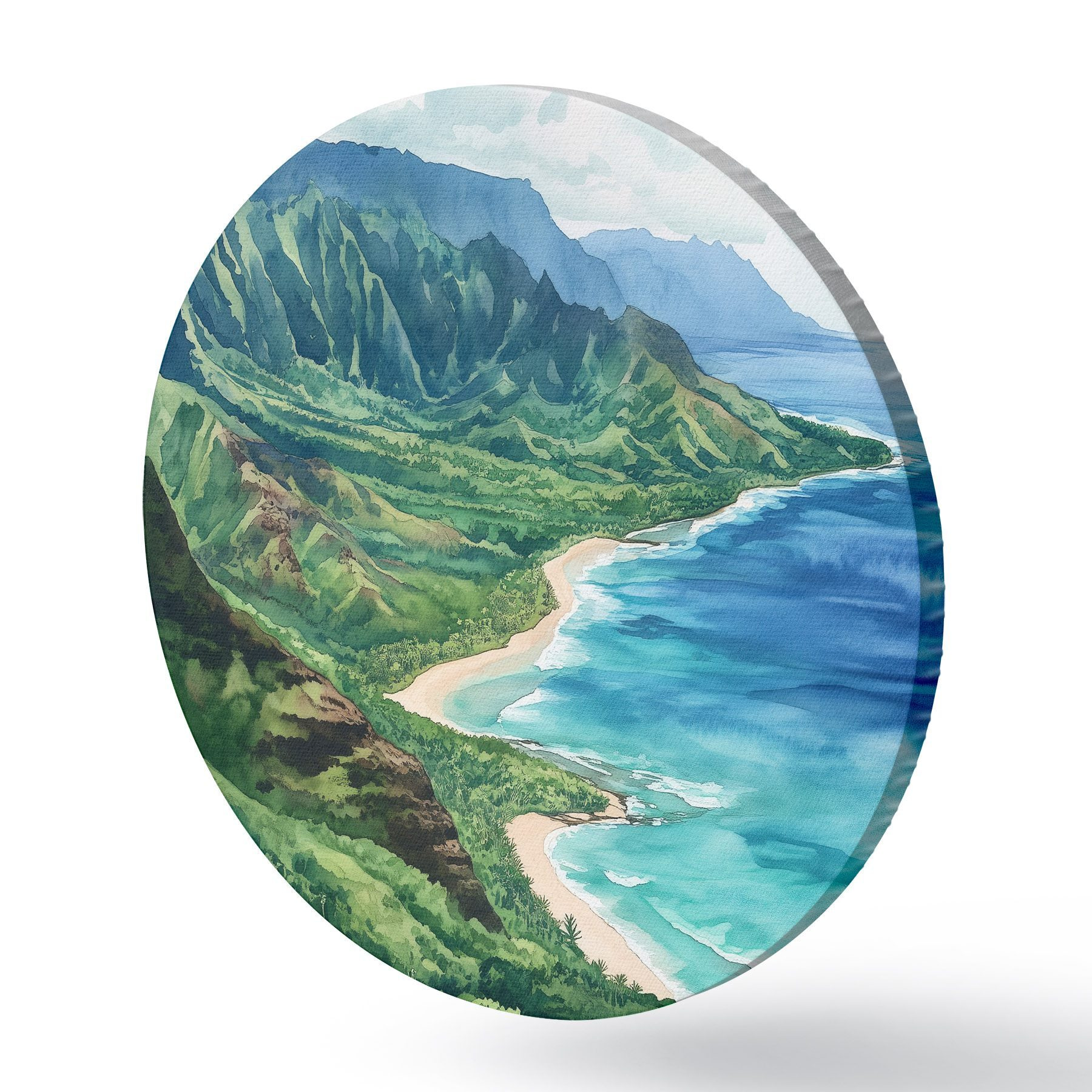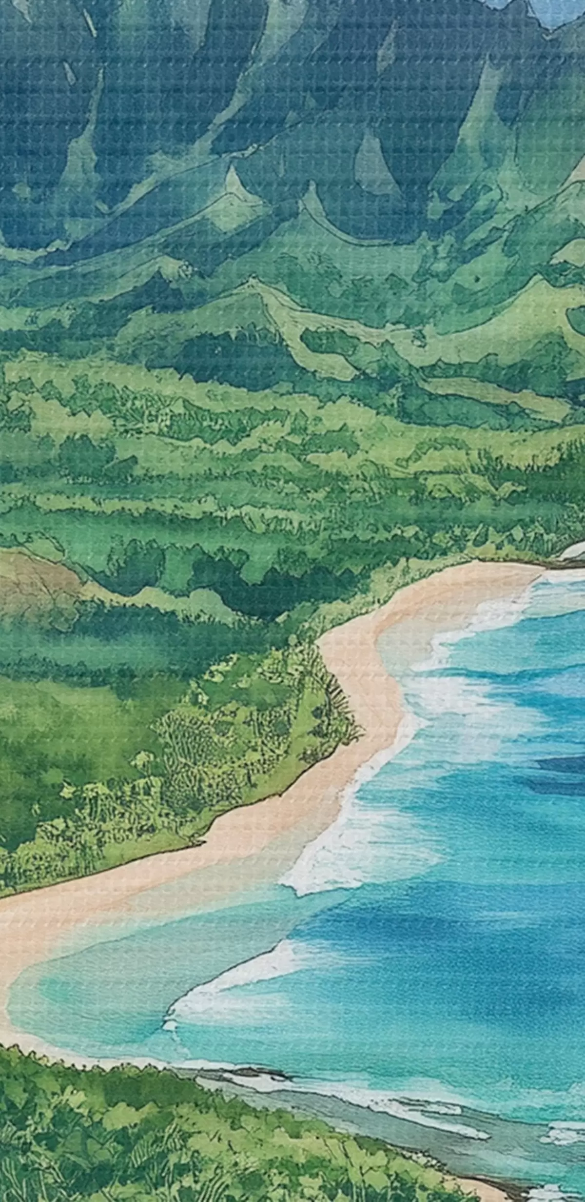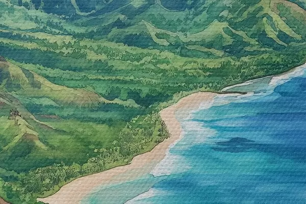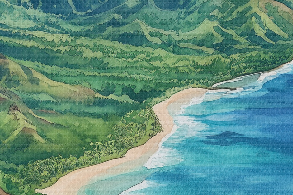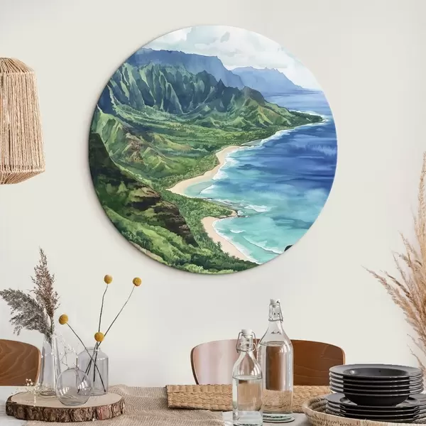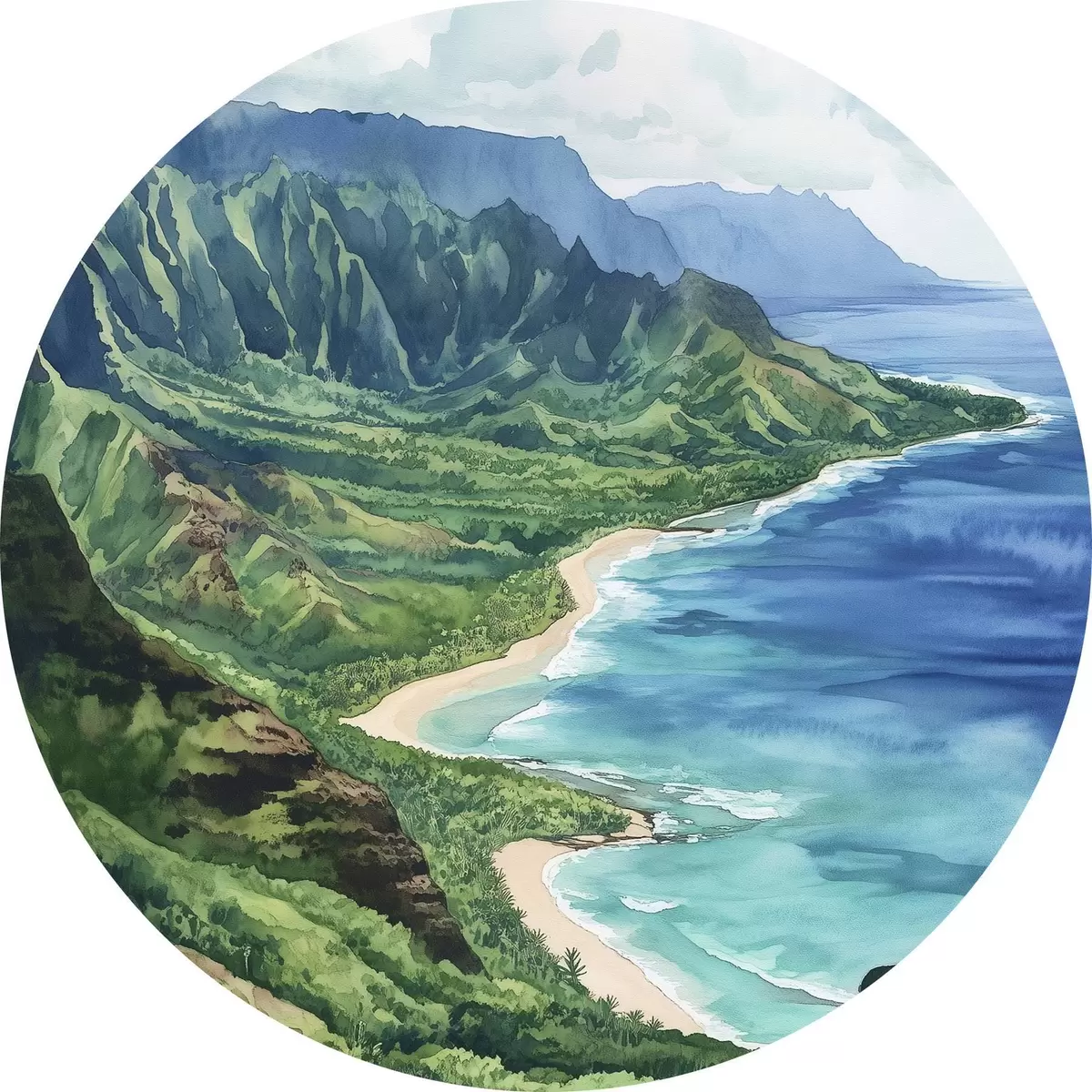 Obrázek Zelené hory, Havaj, oceán, tropický, akvarelový styl Nr r44143