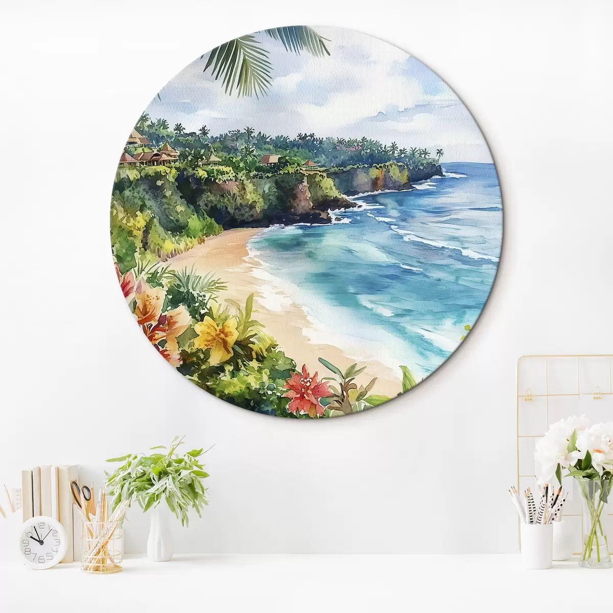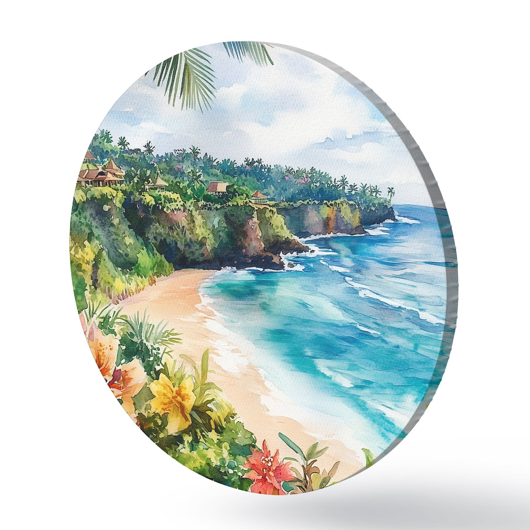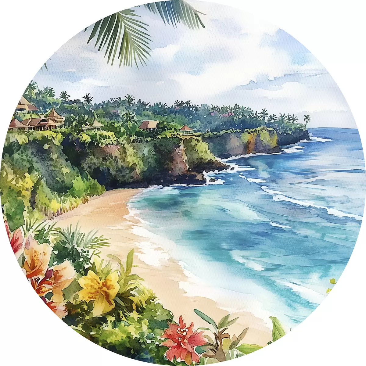 Obrázek Tropická oceánská pláž, palmy, květiny, akvarel Nr r44145