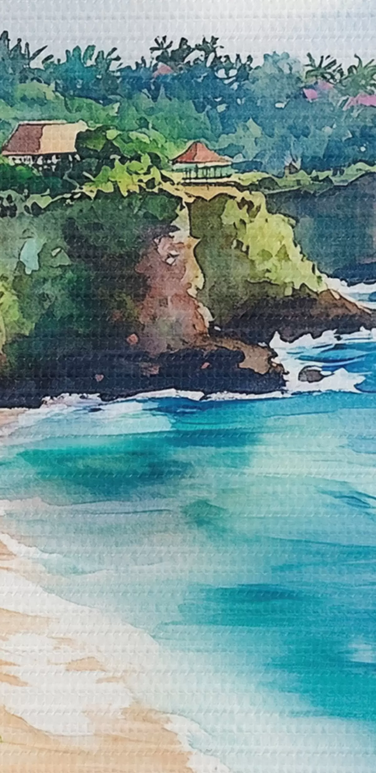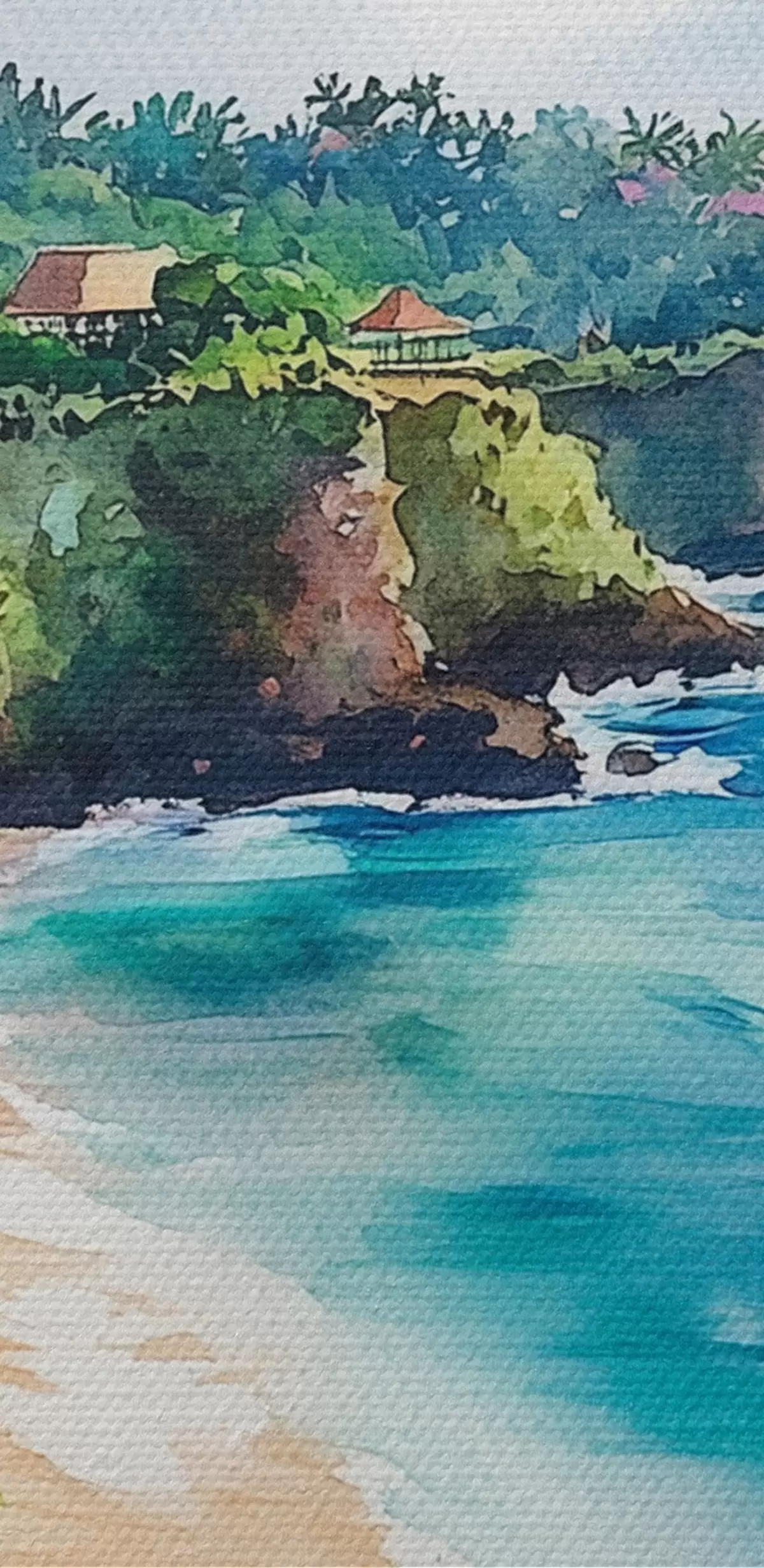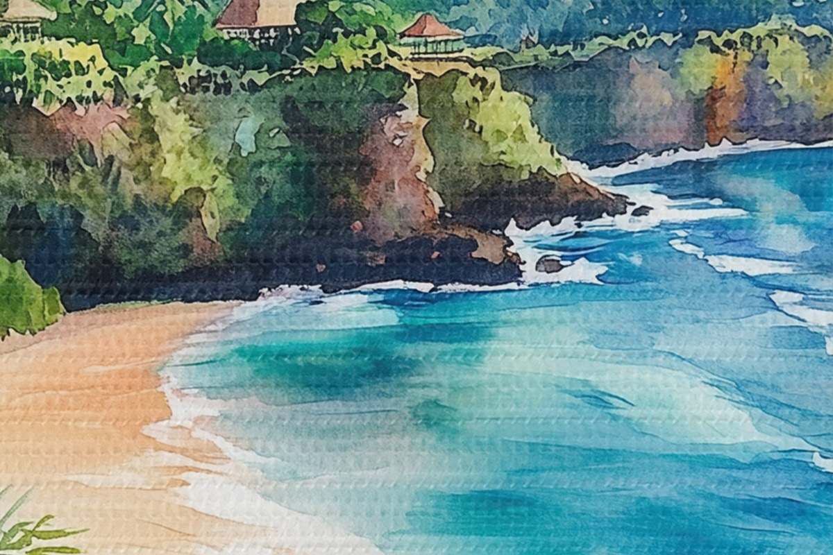 Obrázek Tropická oceánská pláž, palmy, květiny, akvarel Nr r44145