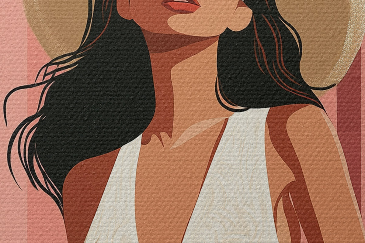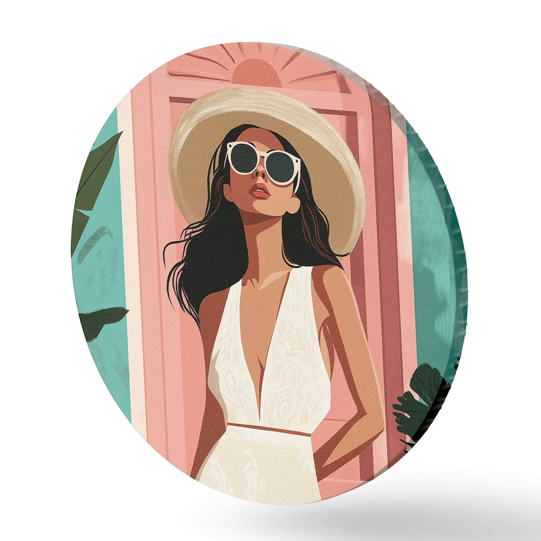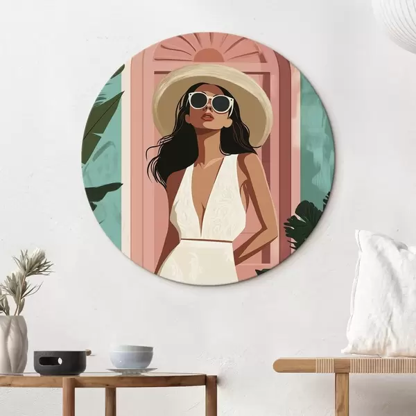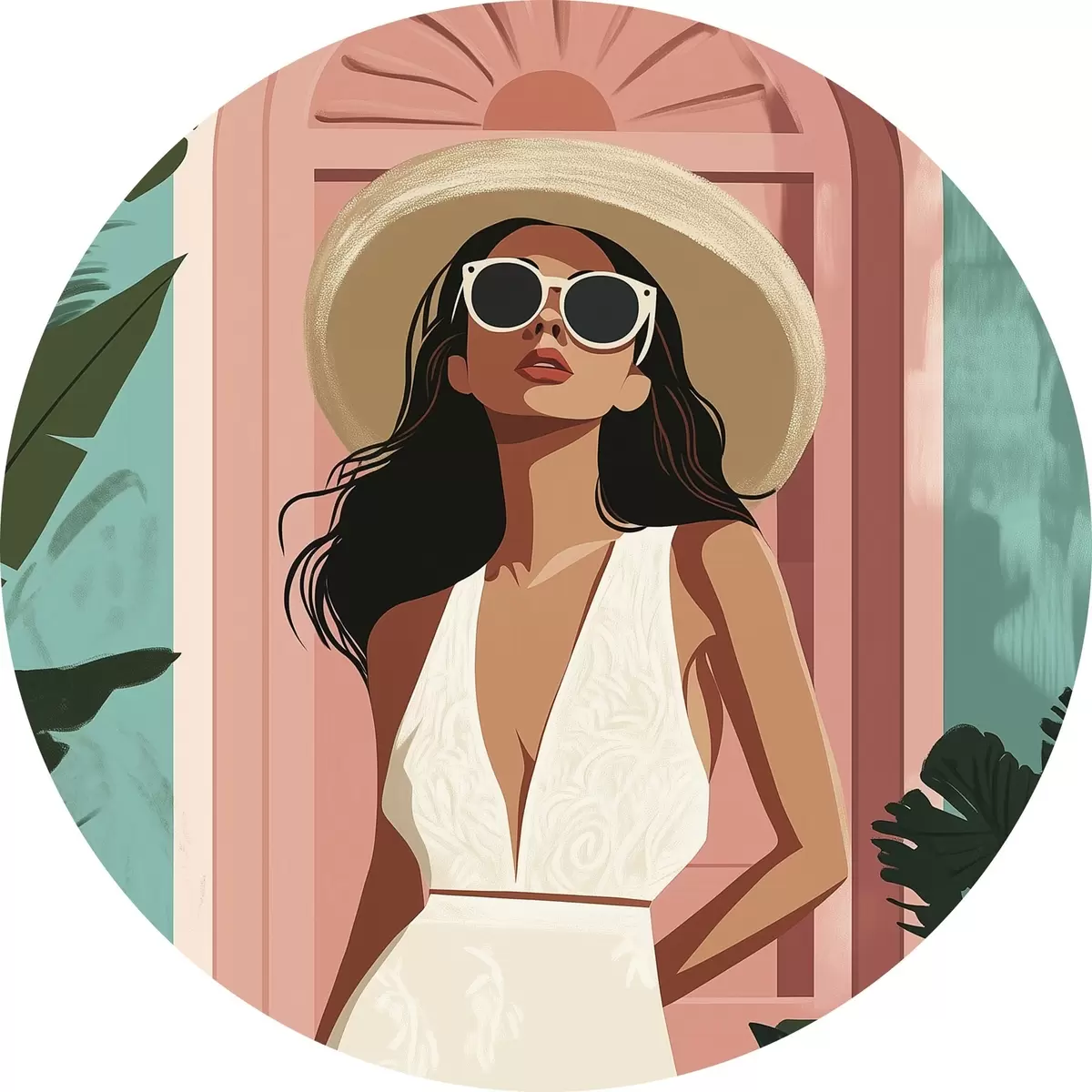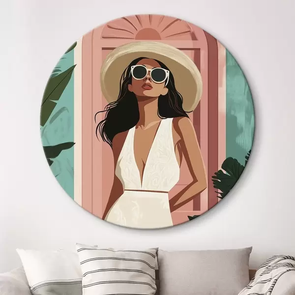 Obrázek Žena ve slunečních brýlích a klobouku, tropická příroda, architektura Nr r44152