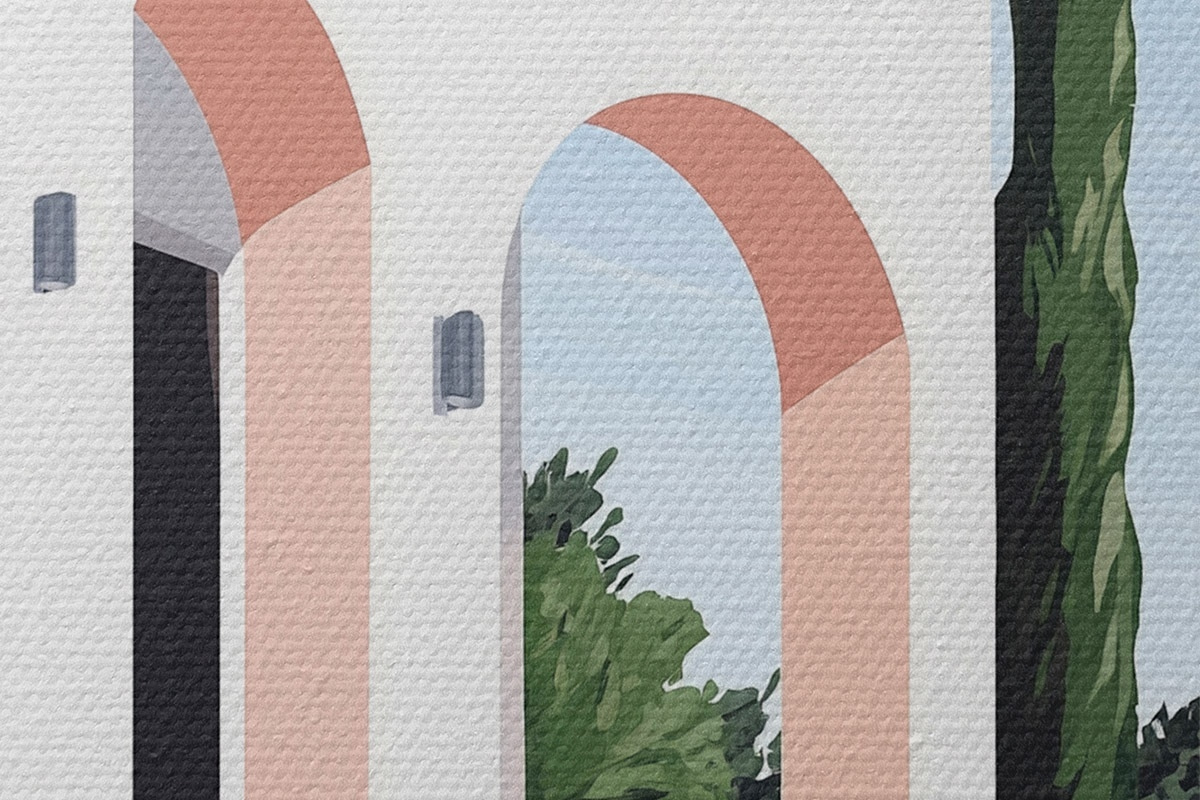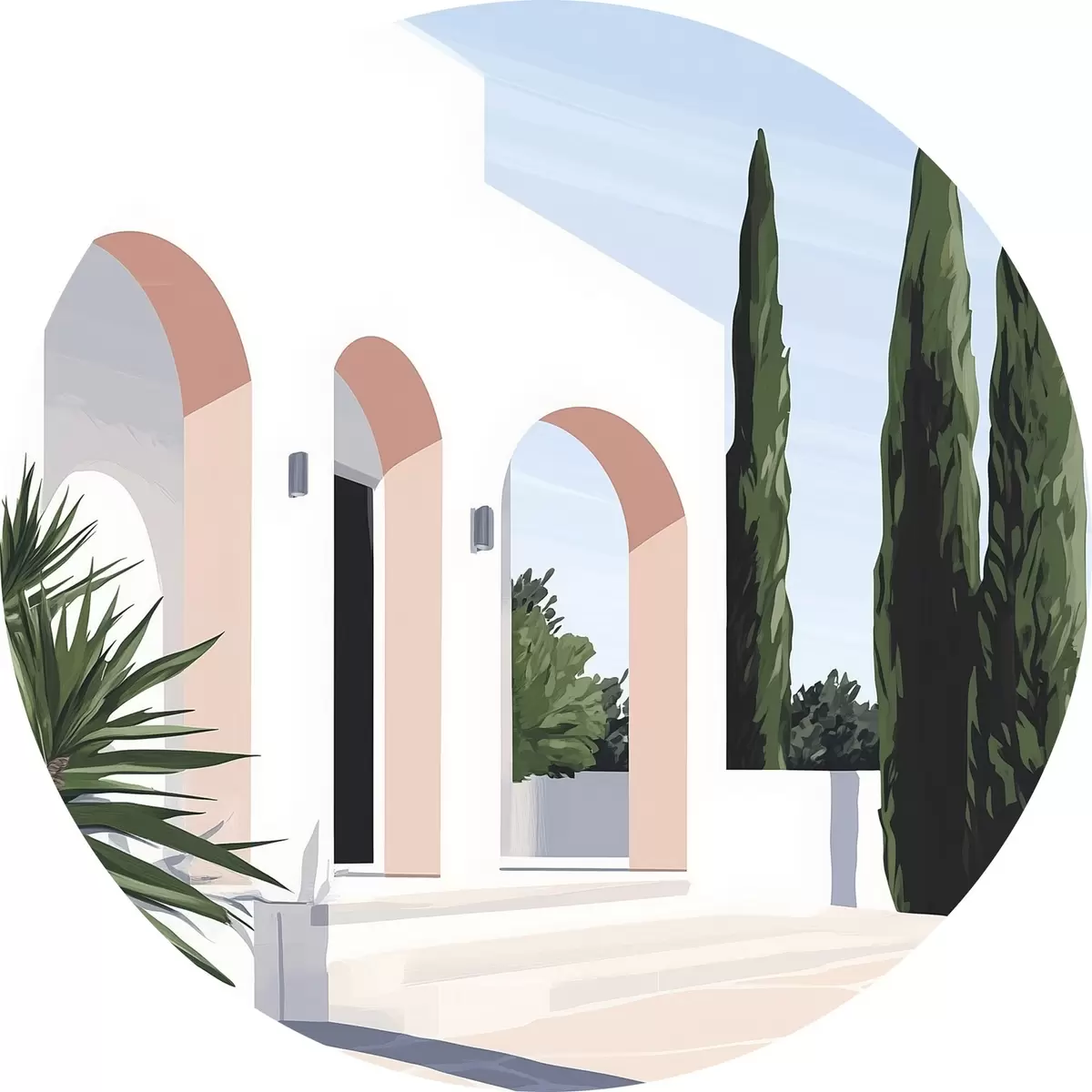 Obrázek Bílá vila s oblouky a tropickou zahradou, středomořský, bytový styl Nr r44153