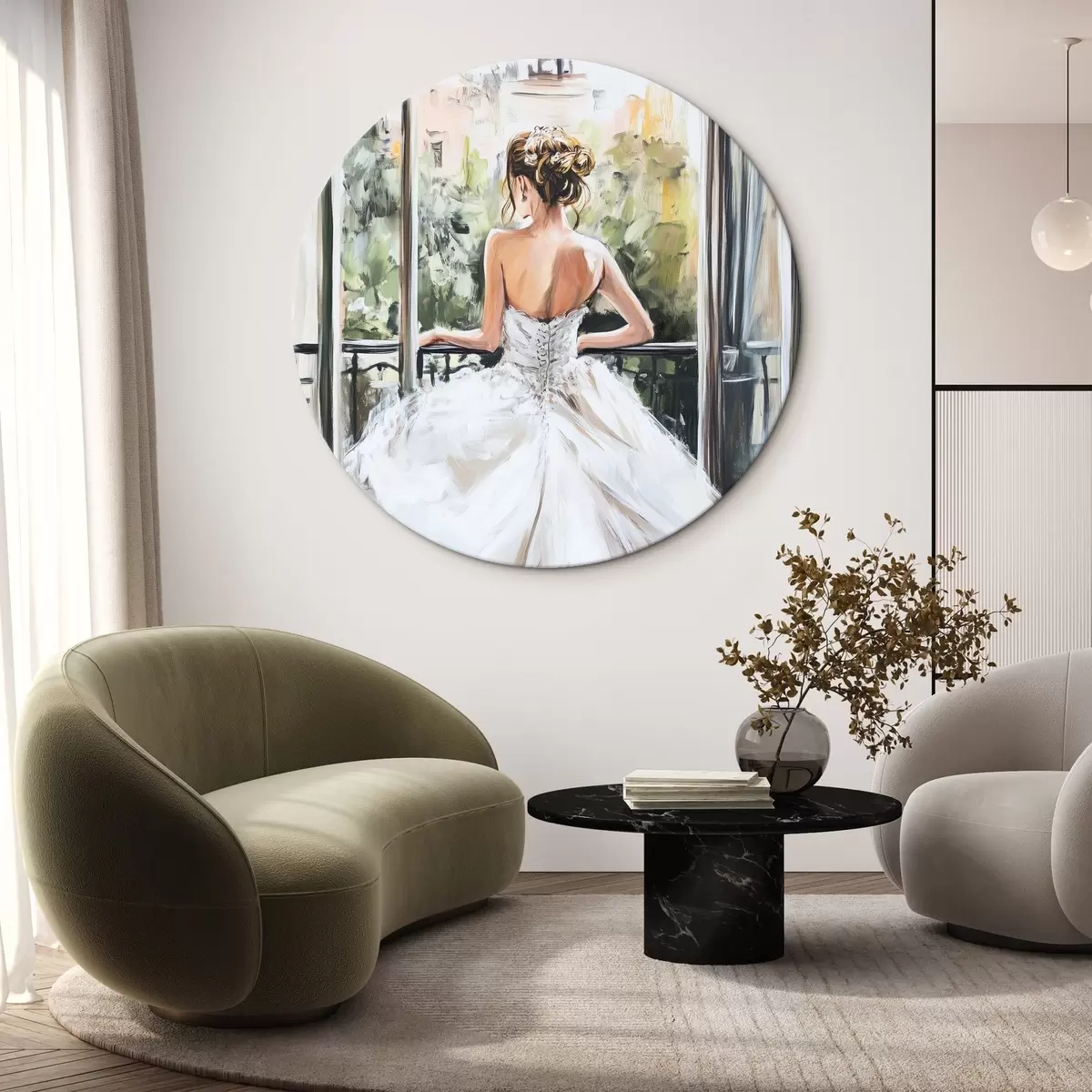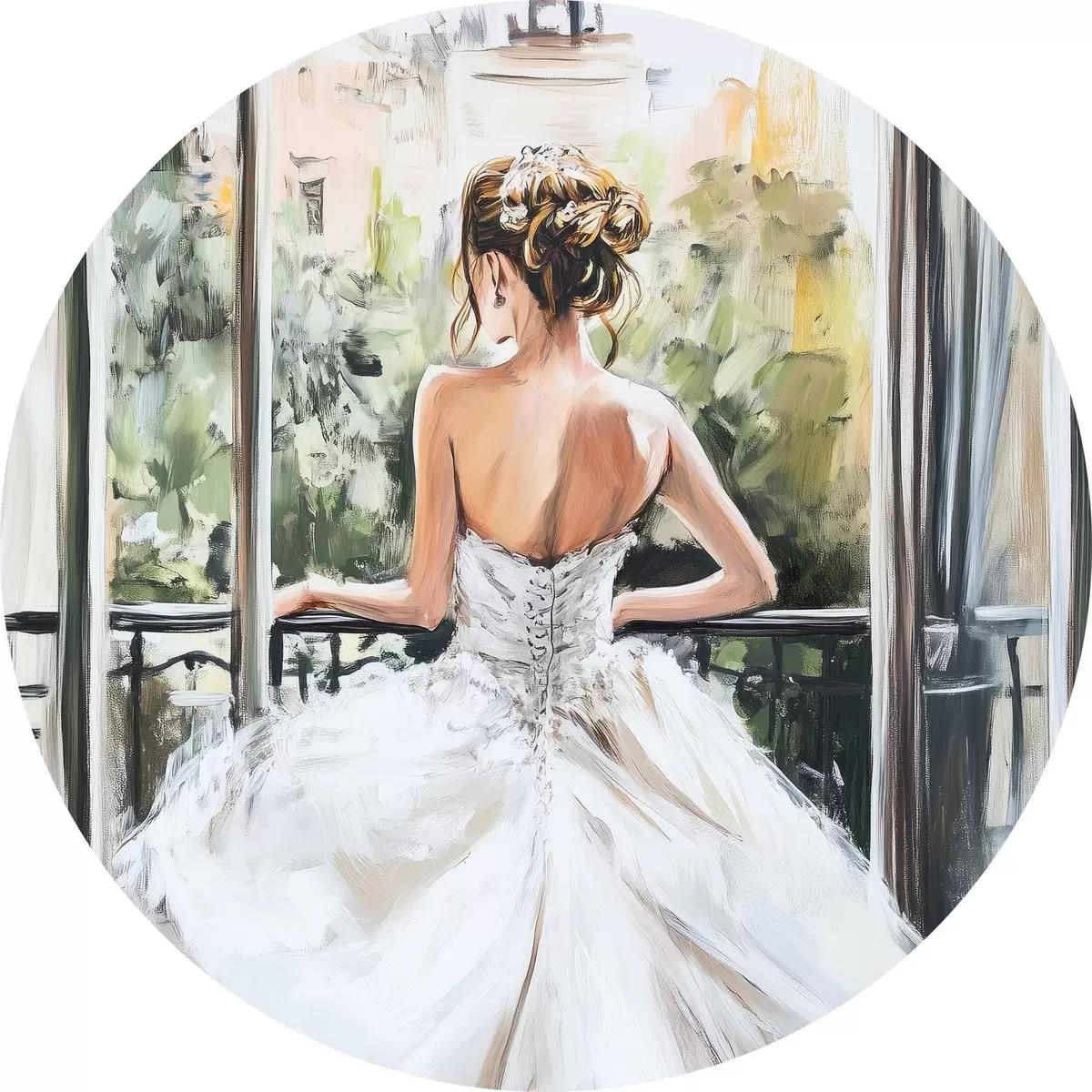 Obrázek Dívka v bílých šatech na balkoně Nr r44226