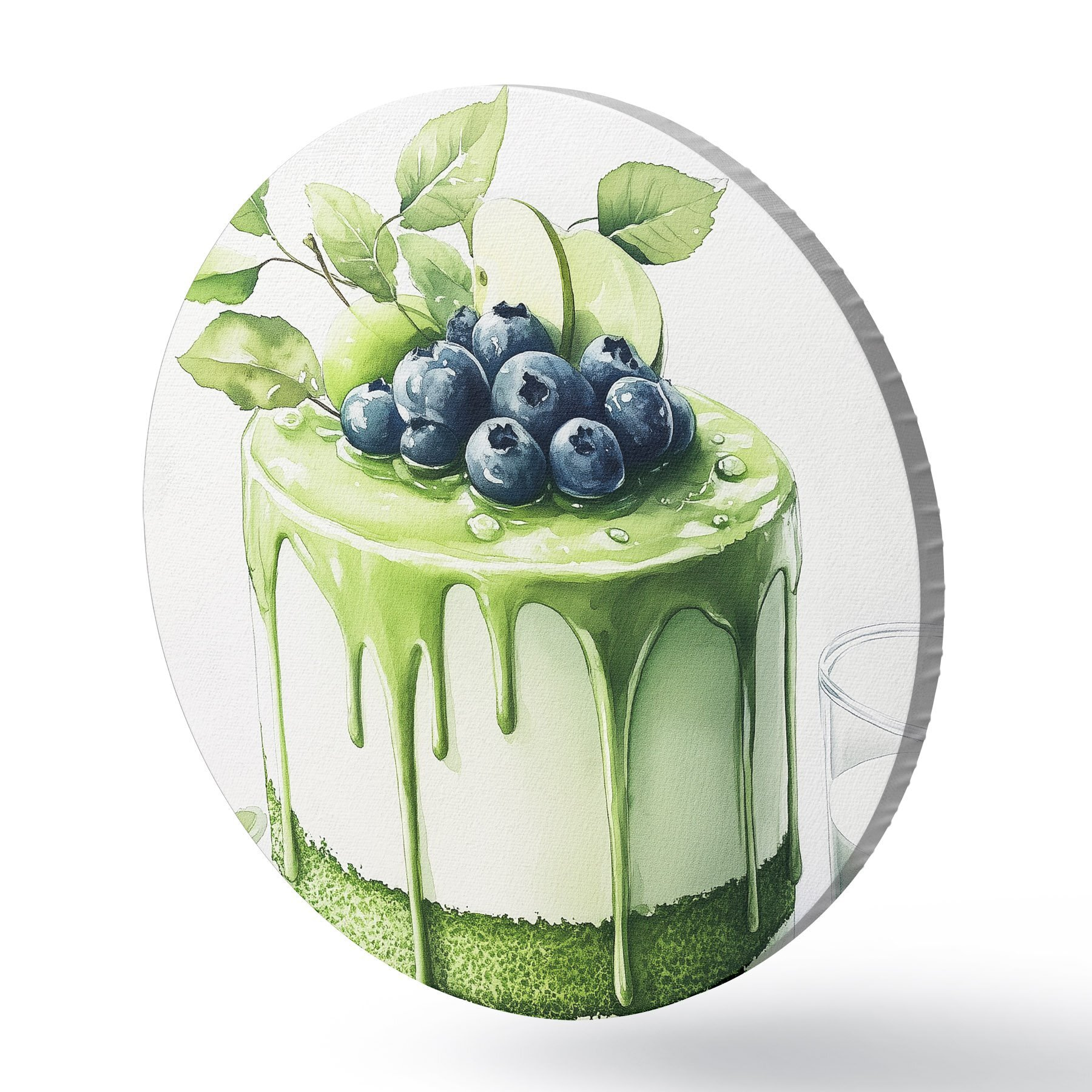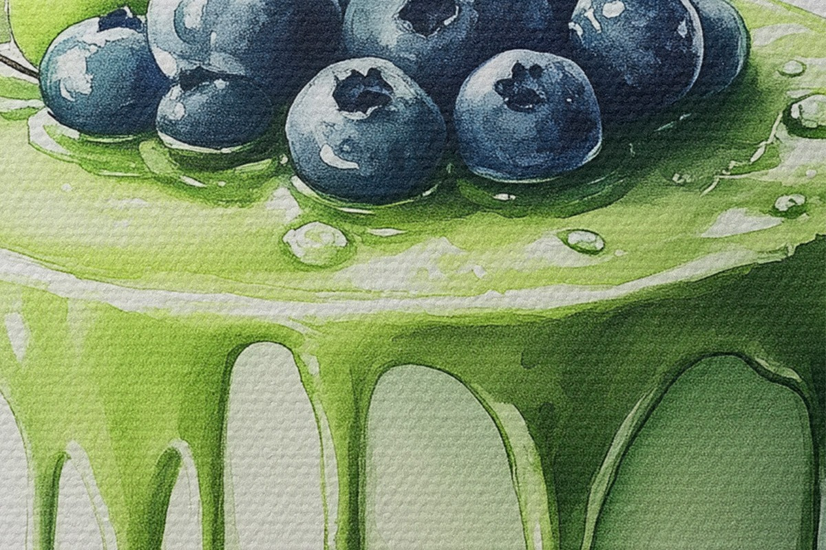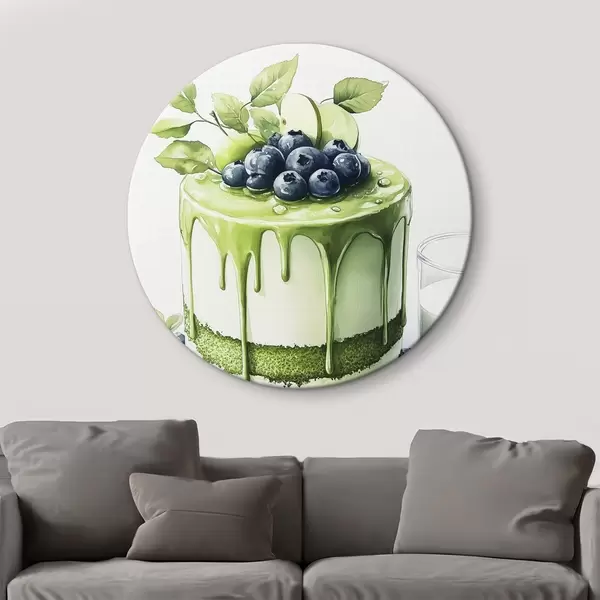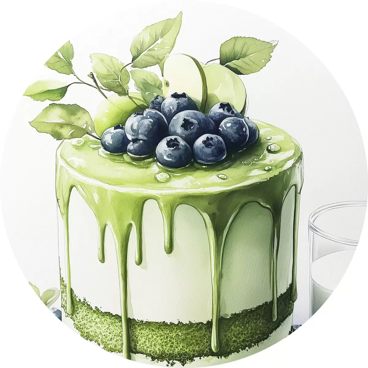 Obrázek Matcha dort s borůvkami a jablky, akvarelový styl Nr r44304