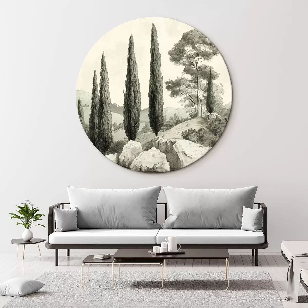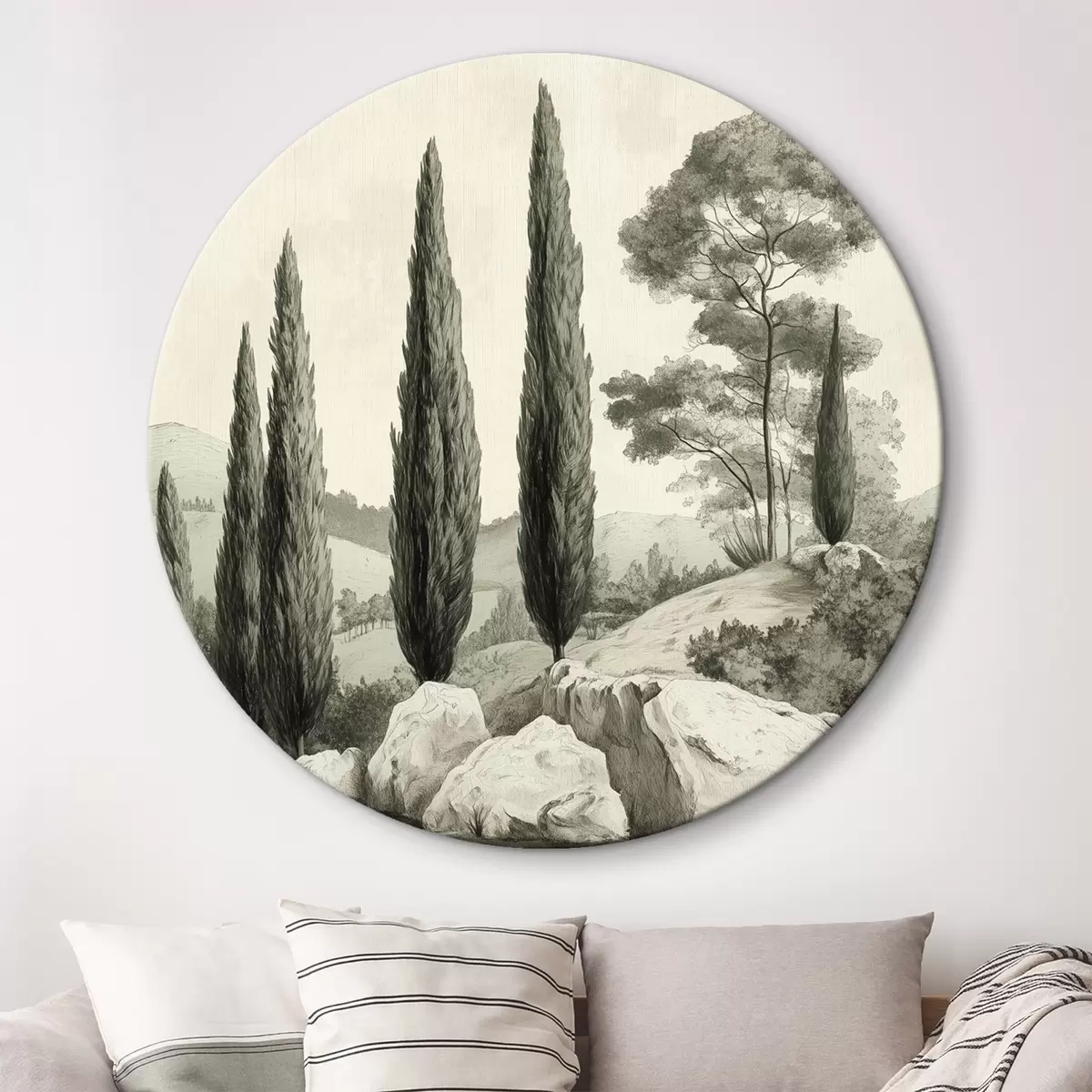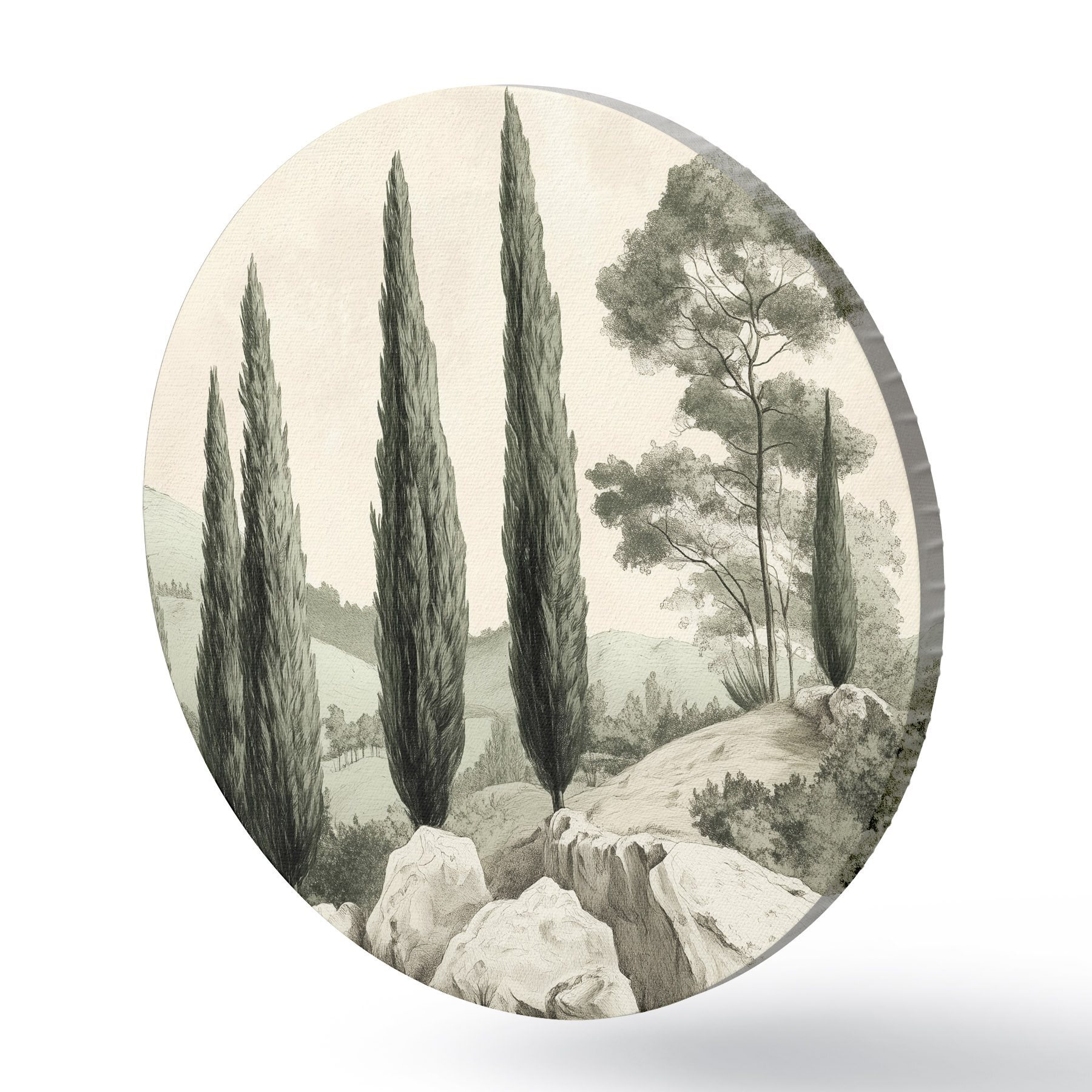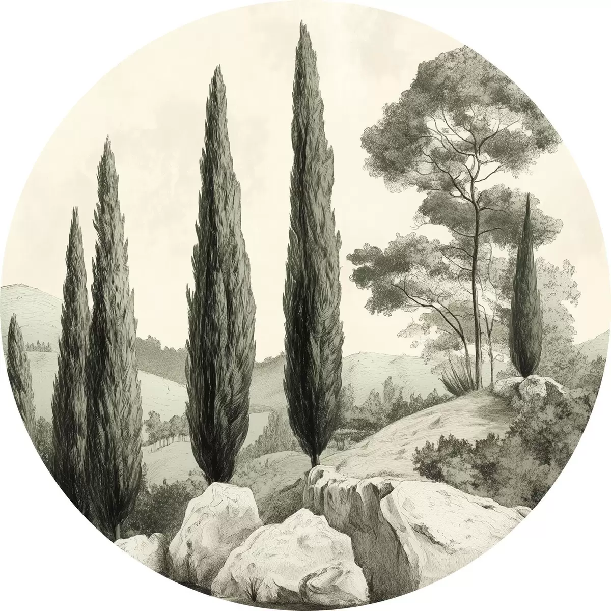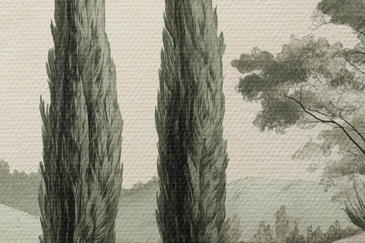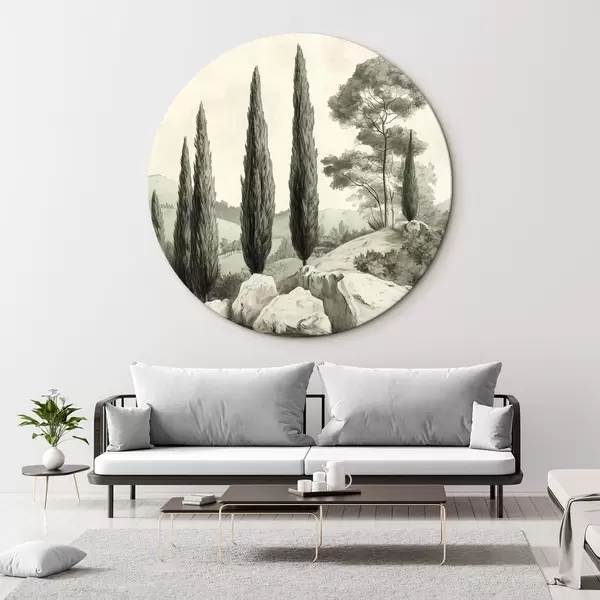 Obrázek Toskánská krajina, pastelové barvy, cypřiše, skály, rustikální styl Nr r44307