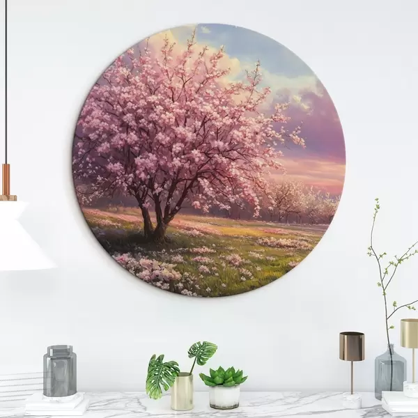 Kulaté obrazy Kvetoucí růžové stromy r44324