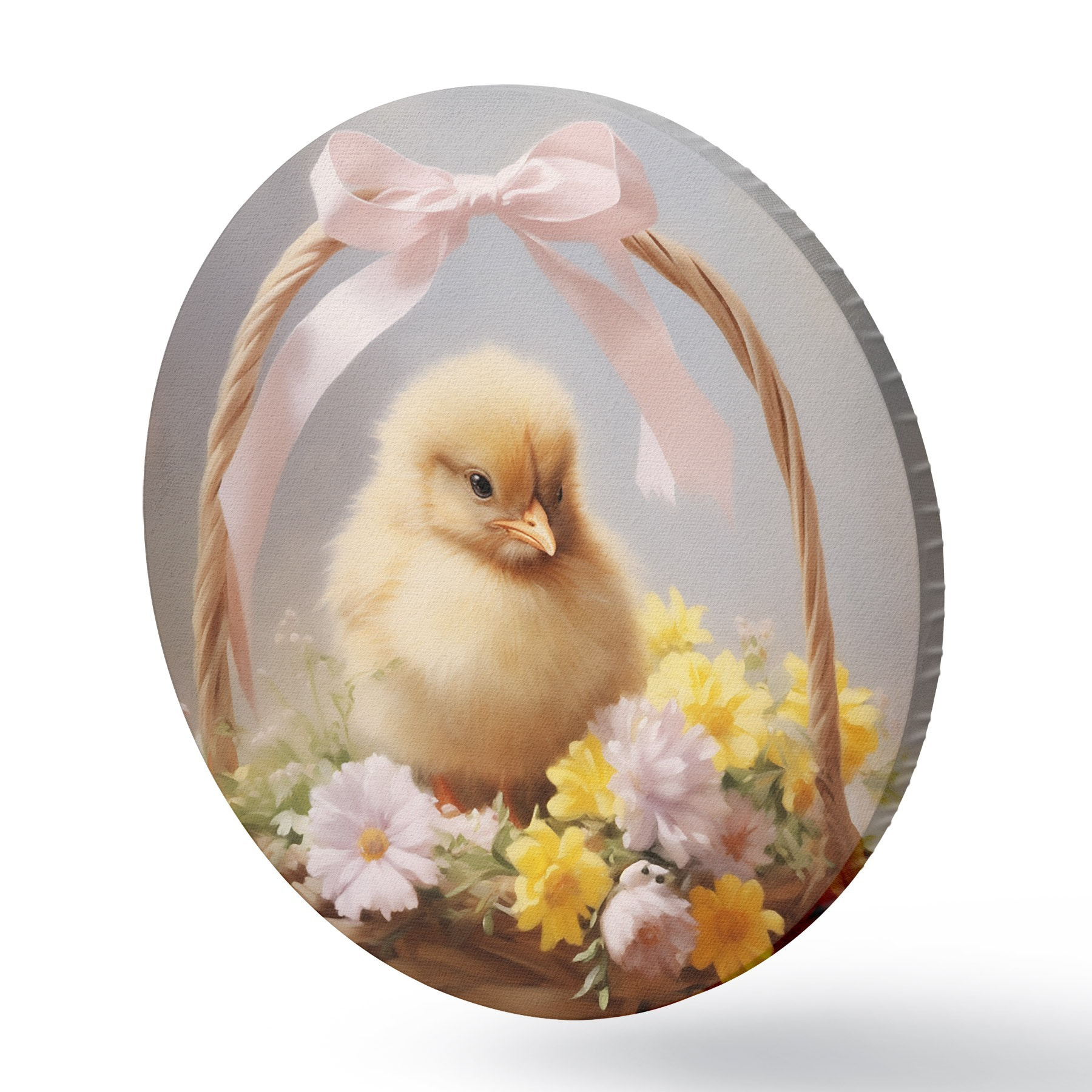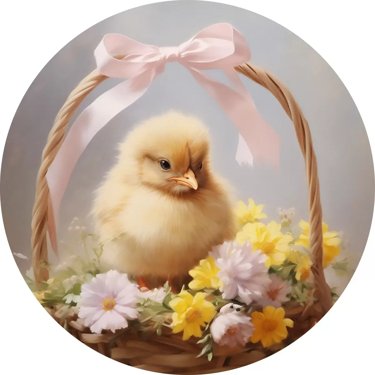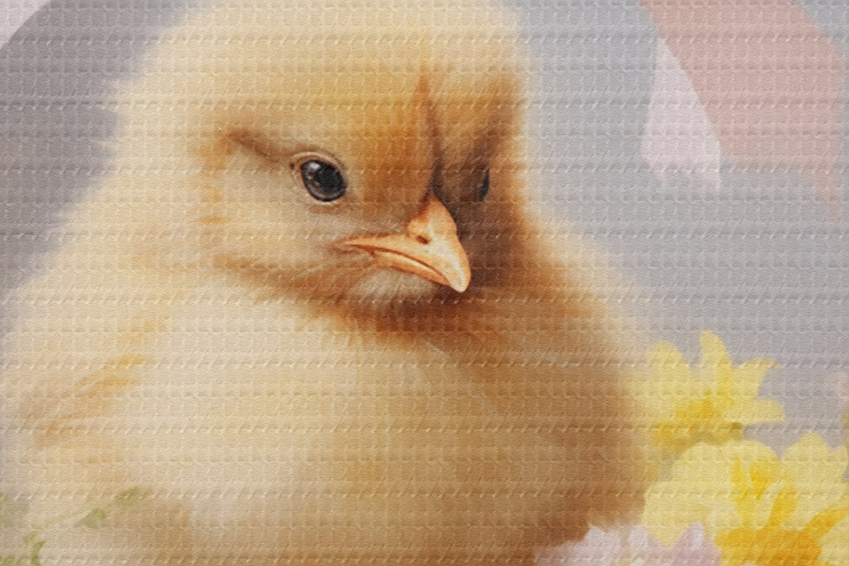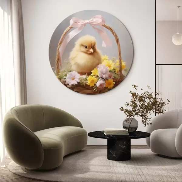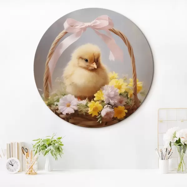 Obrázek Žluté kuřátko v košíku s divokými květinami Nr r44384