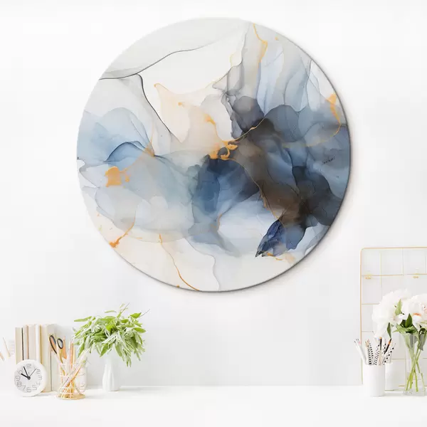 Obrázek Abstraktní malba modrou tuší, tekuté a organické tvary, jemné textury na bílém pozadí Nr r44397
