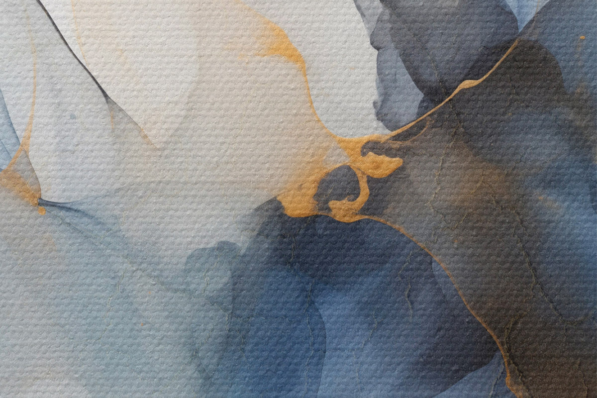 Obrázek Abstraktní malba modrou tuší, tekuté a organické tvary, jemné textury na bílém pozadí Nr r44397