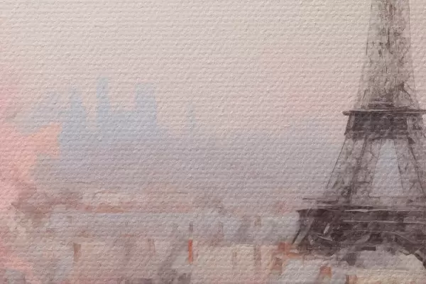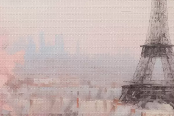 Obrázek Eiffelova věž v Paříži s rozkvetlými jarními třešněmi, jemné pastelové barvy Nr r44398