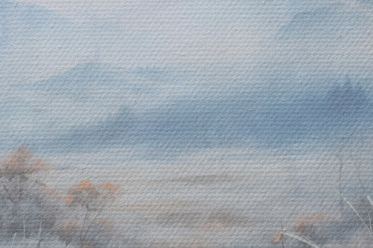 Obrázek Texturovaná krajina s horami, suchou trávou a lesem, tlumené barvy Nr r44402