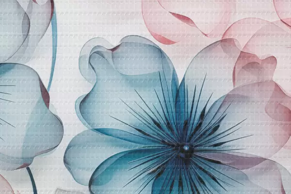 Obrázek Průsvitné tlumené růžové a modré květy s viditelnými tyčinkami a stonky Nr r44405