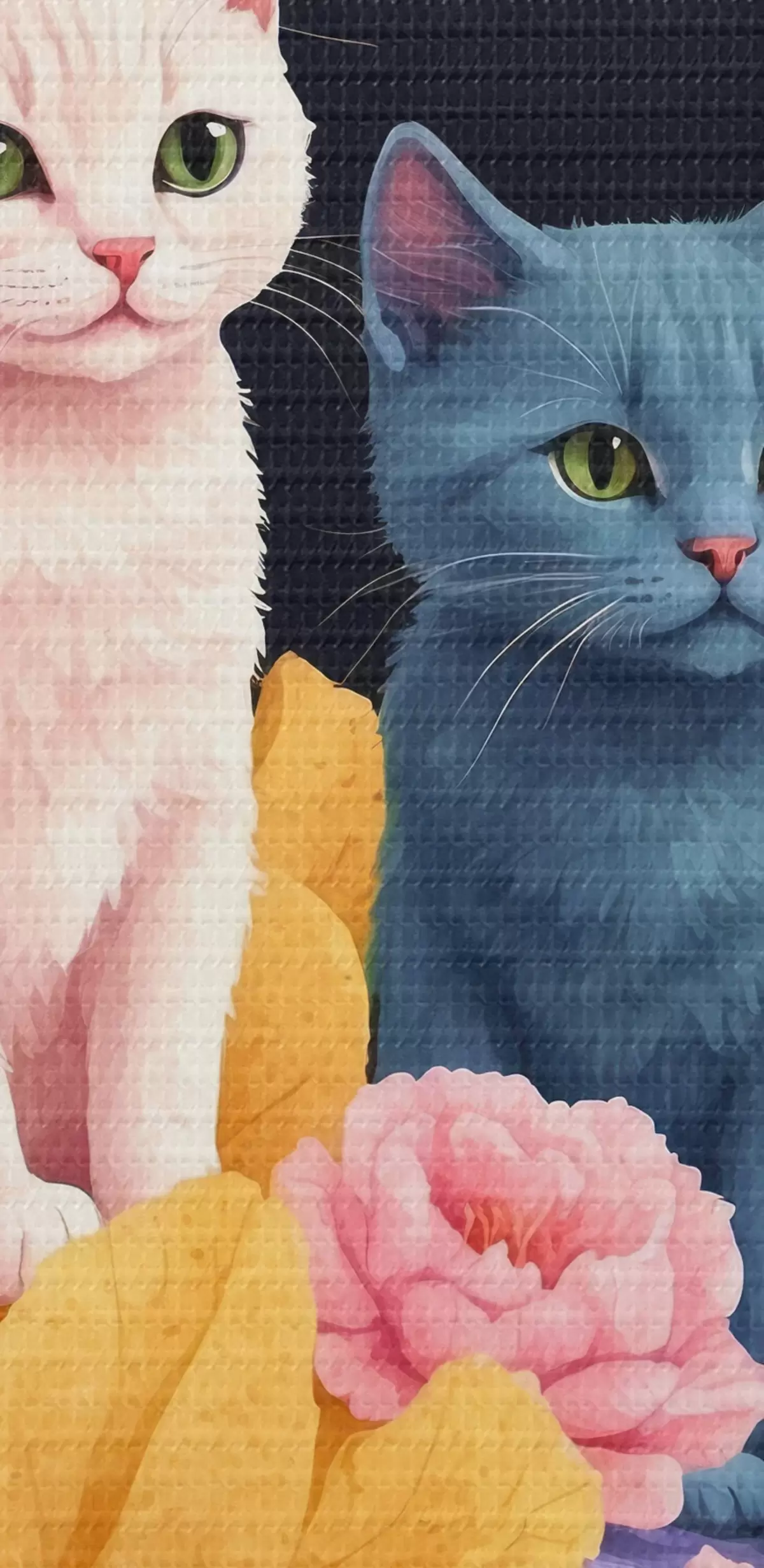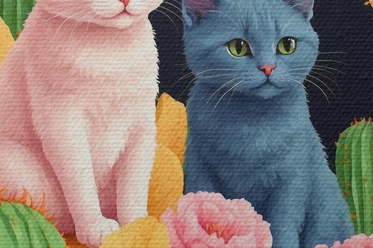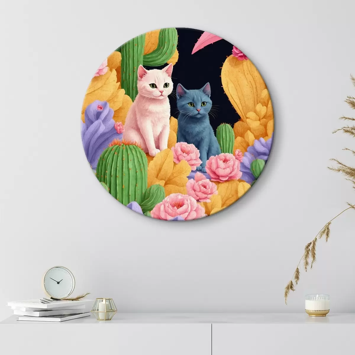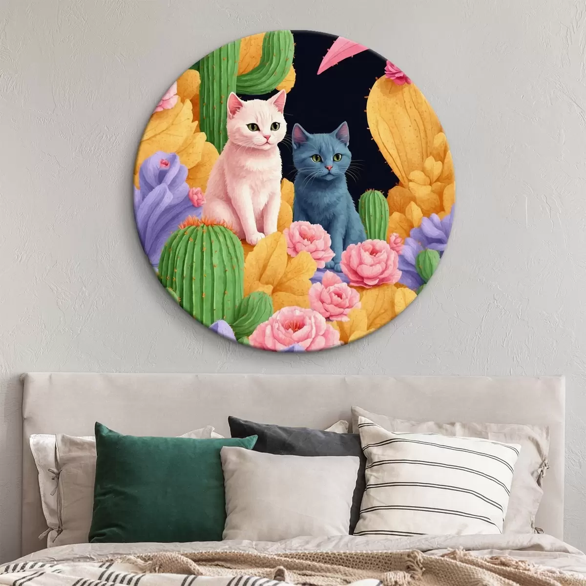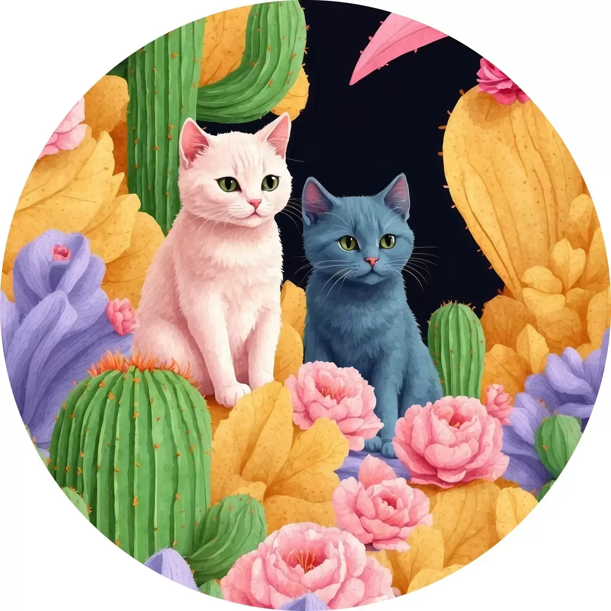 Obrázek Umělé kočky mezi květinami a kaktusy Nr r44452
