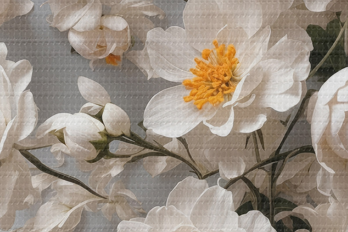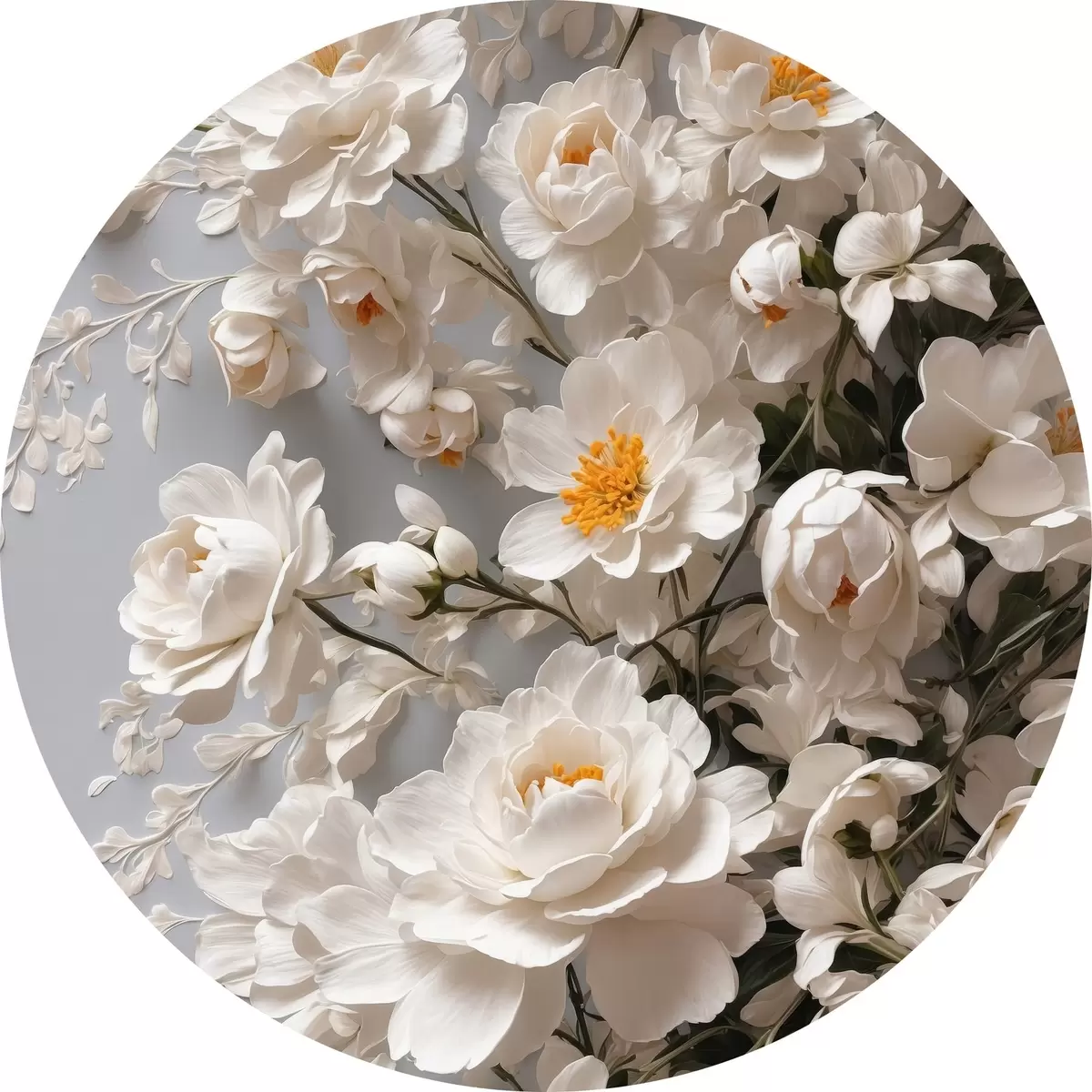 Obrázek Bílé květy a listy na bílém pozadí Nr r44465