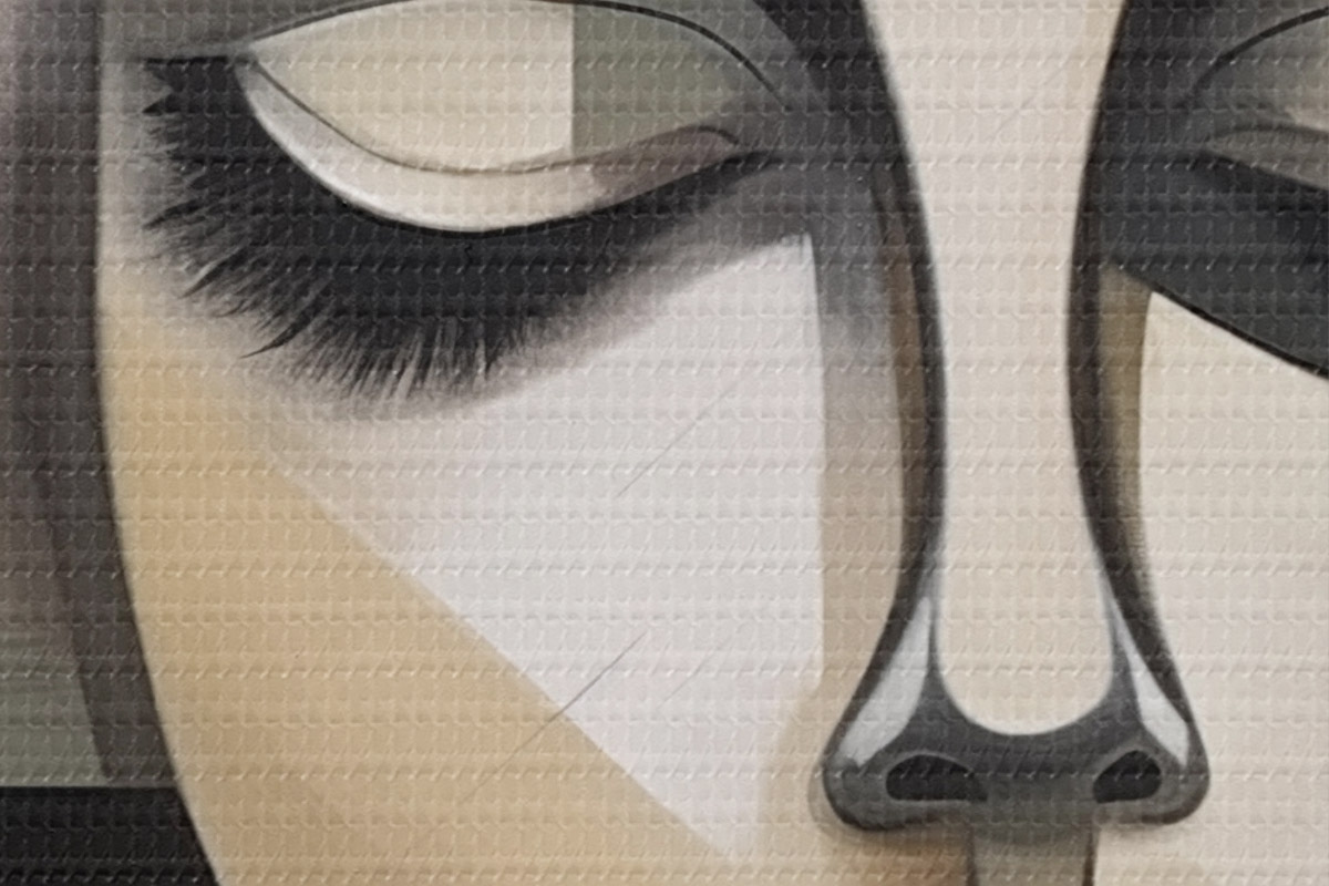 K napnutí plátna na nosítka bez poškození obrazu používáme zrcadlový obraz.