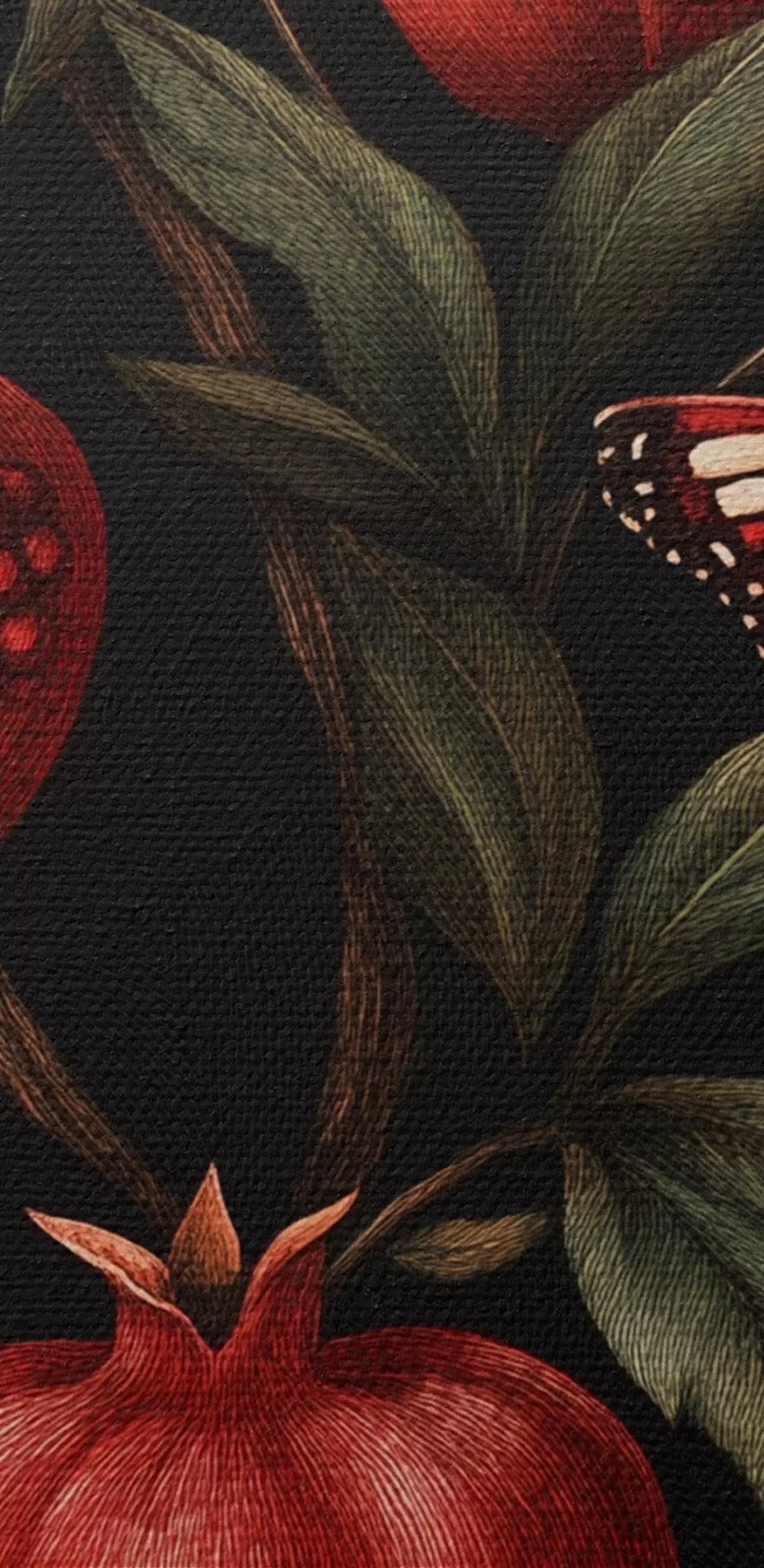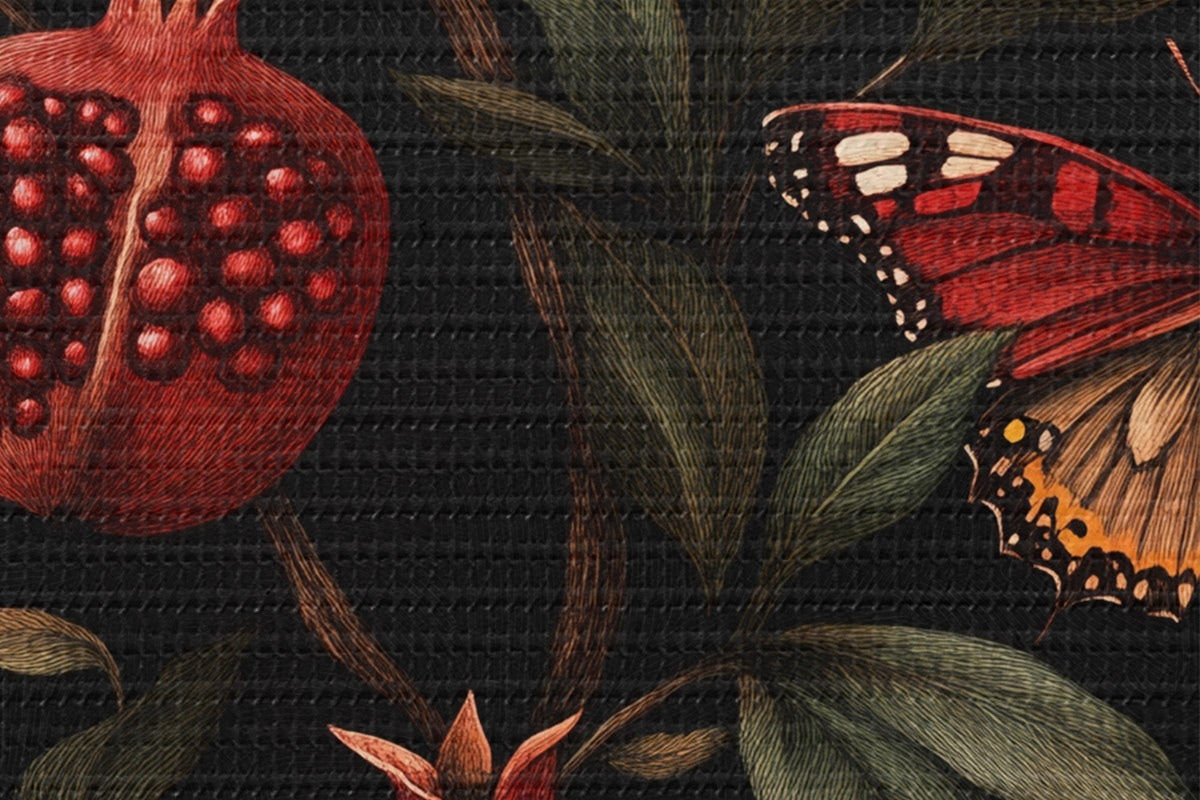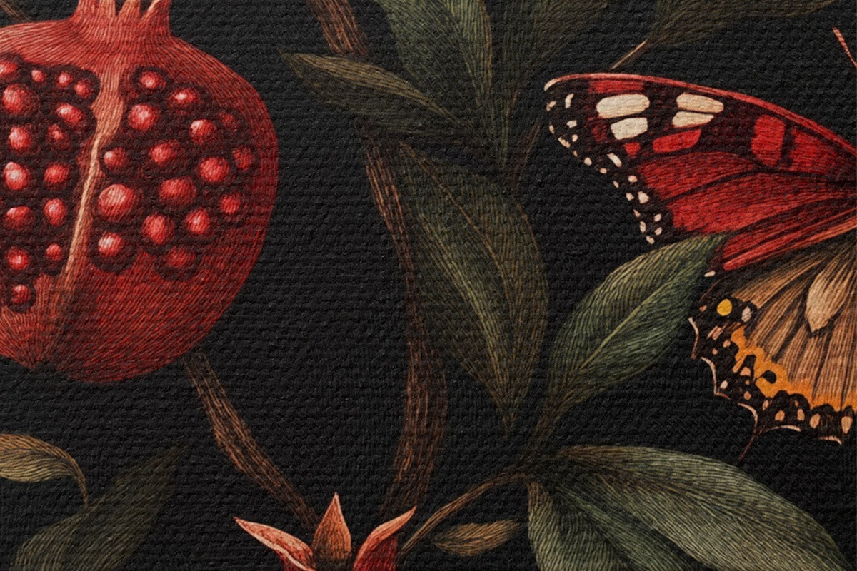 Obrázek Botanické umění s granátovými jablky a motýly Nr r44511