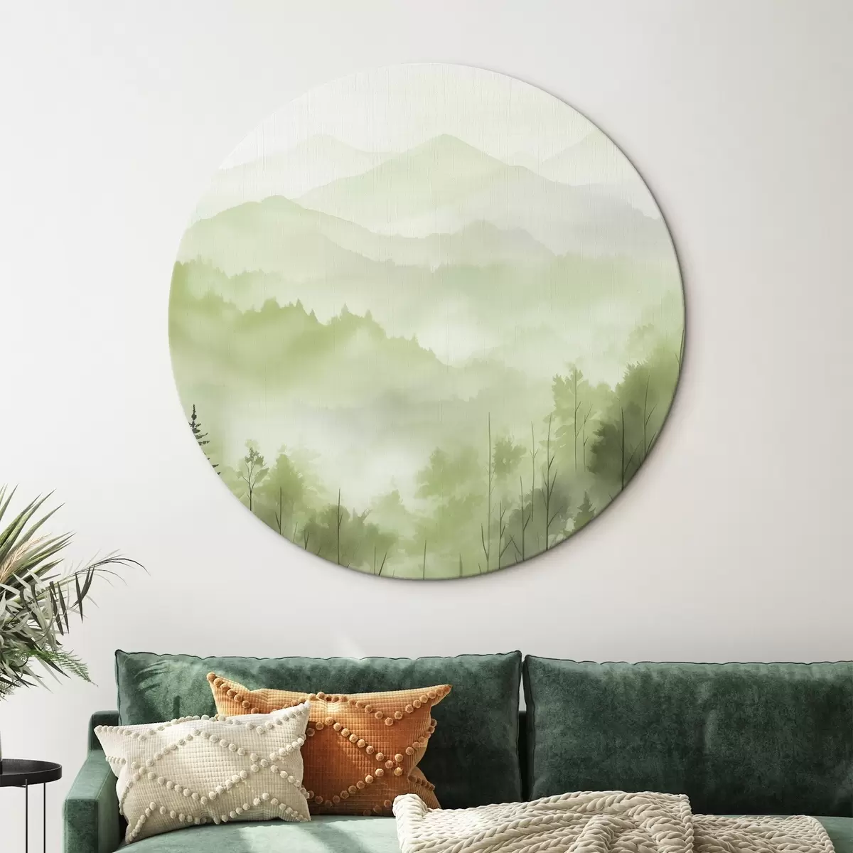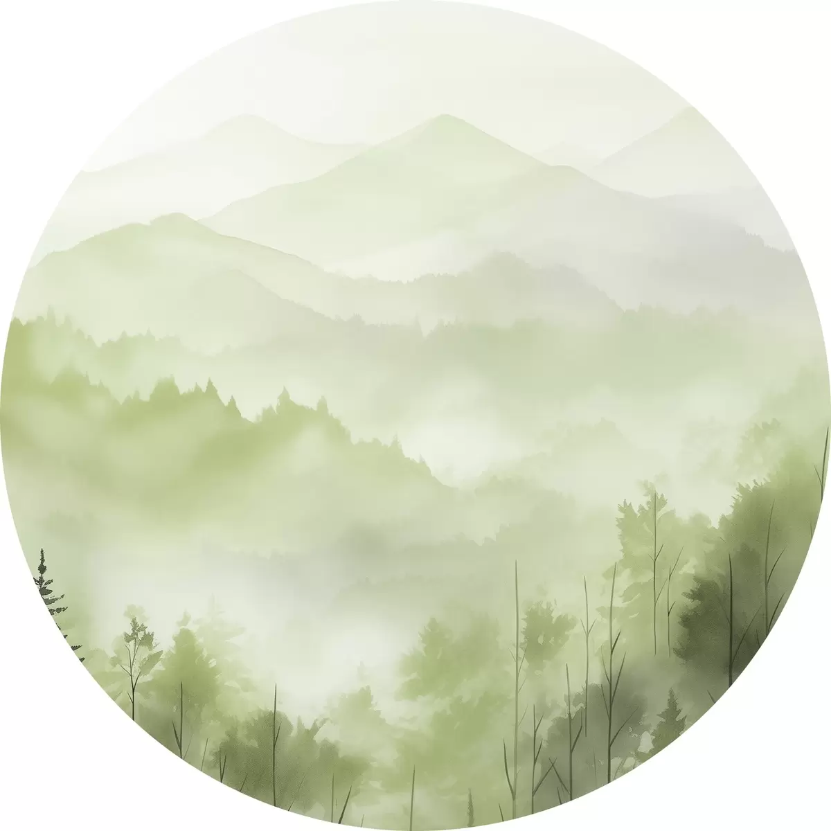 Obrázek Hory s lesní krajinou, zelené barvy, akvarelový styl Nr r44606