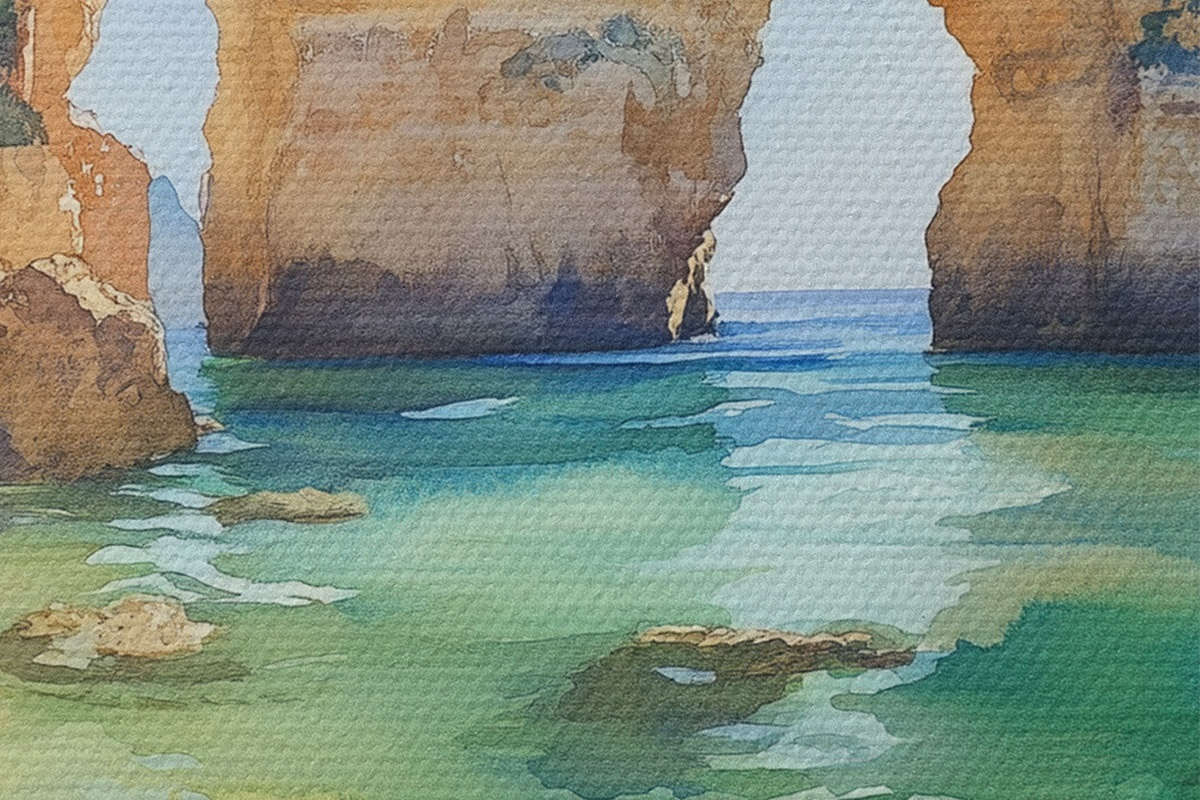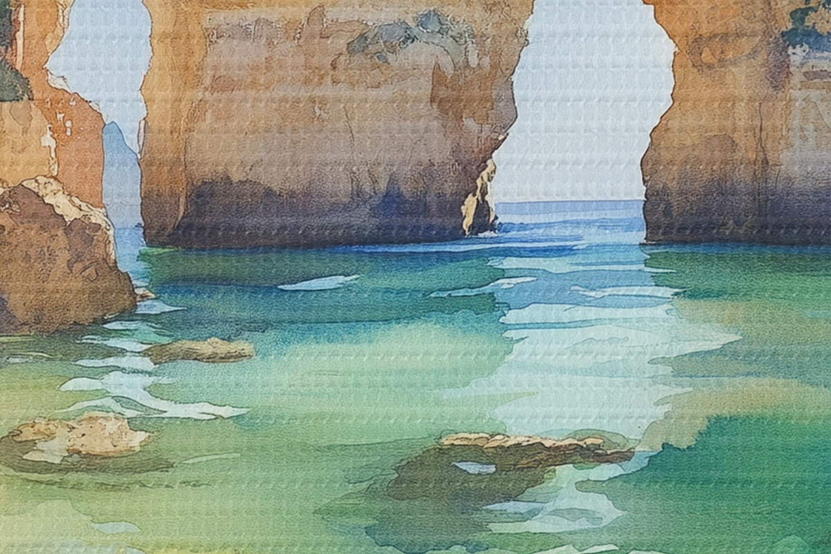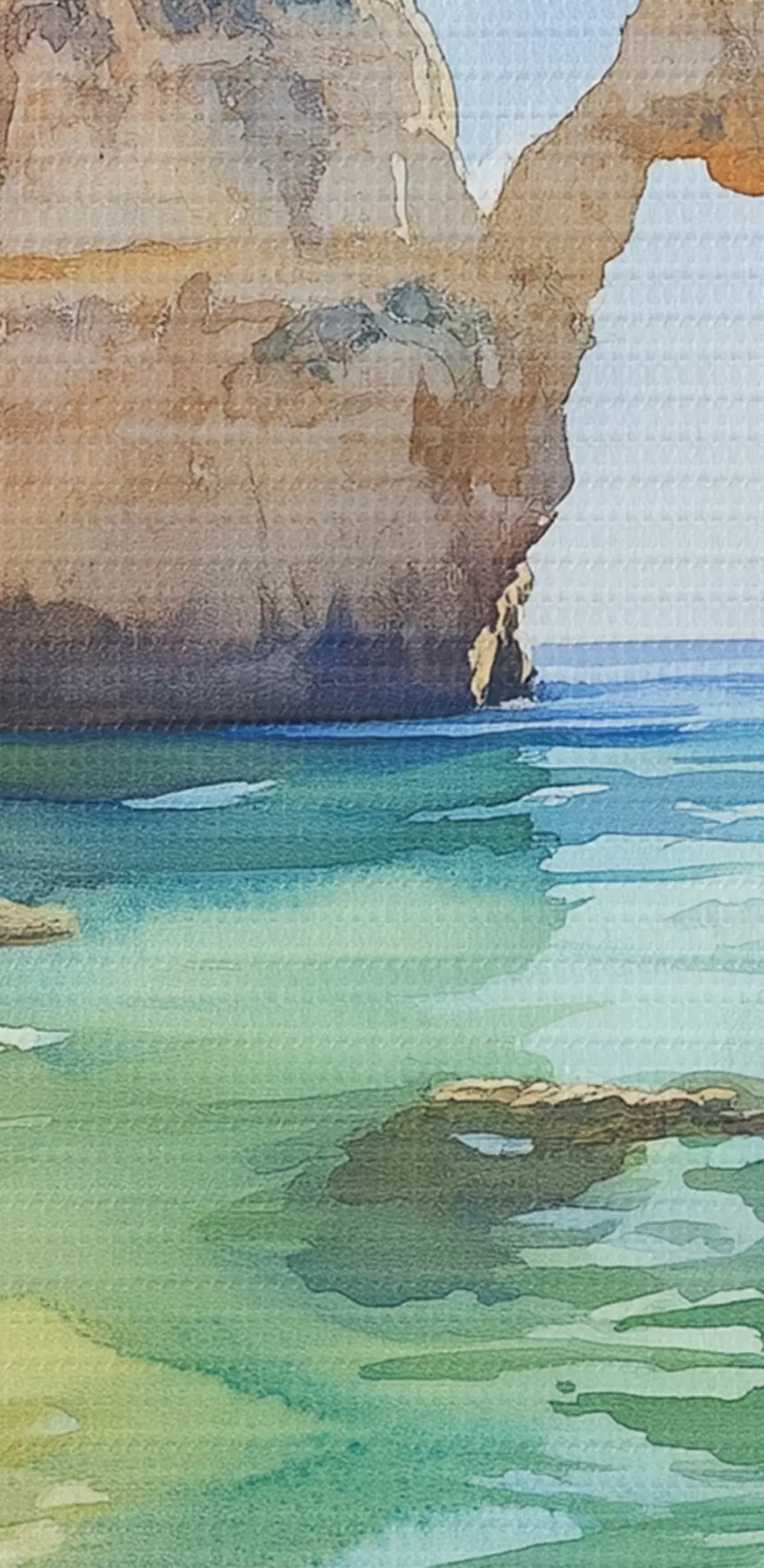Obrázek Pláž u oceánu se skalnatými útesy, Portugalsko, léto, akvamarínová barva Nr r44608