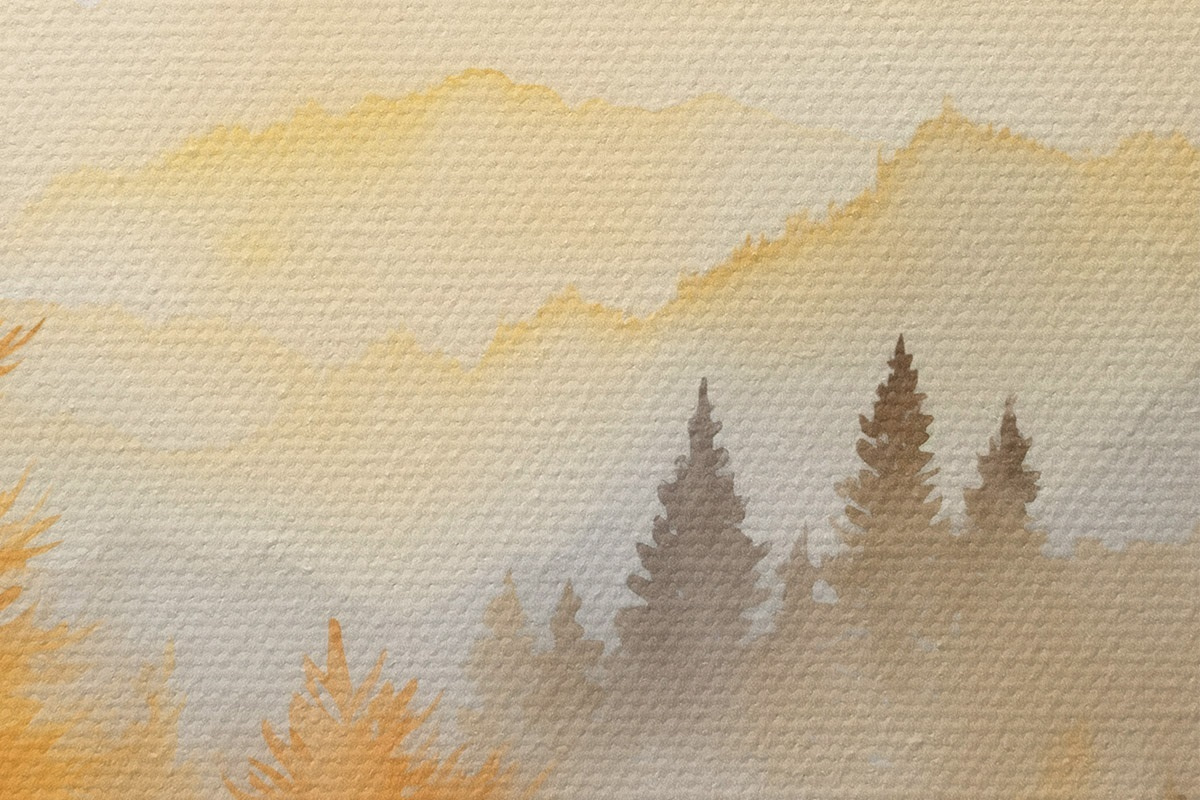 Obrázek Krásný podzimní les s horami v pozadí Nr r44614