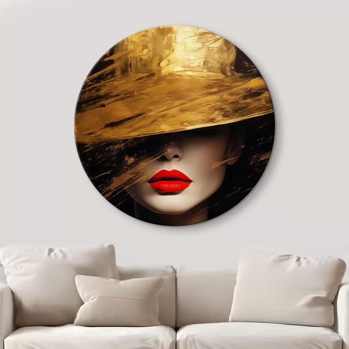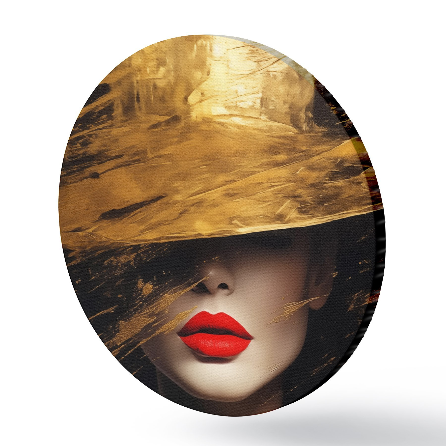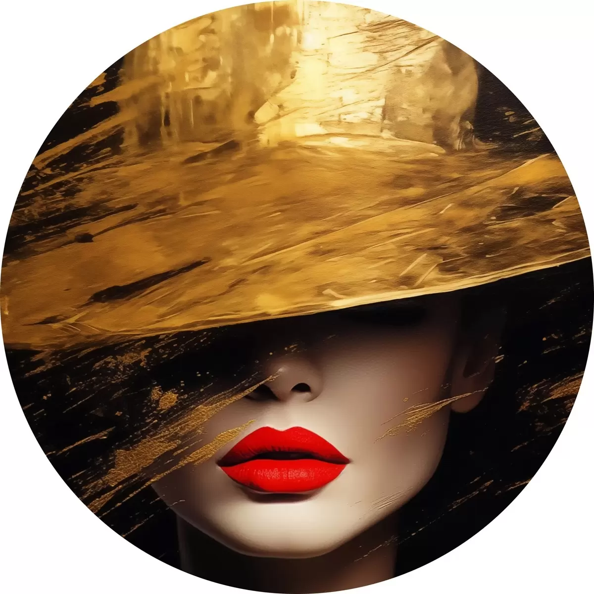 Obrázek Ženský obličej s červenou rtěnkou pod širokým kloboukem Nr r44691