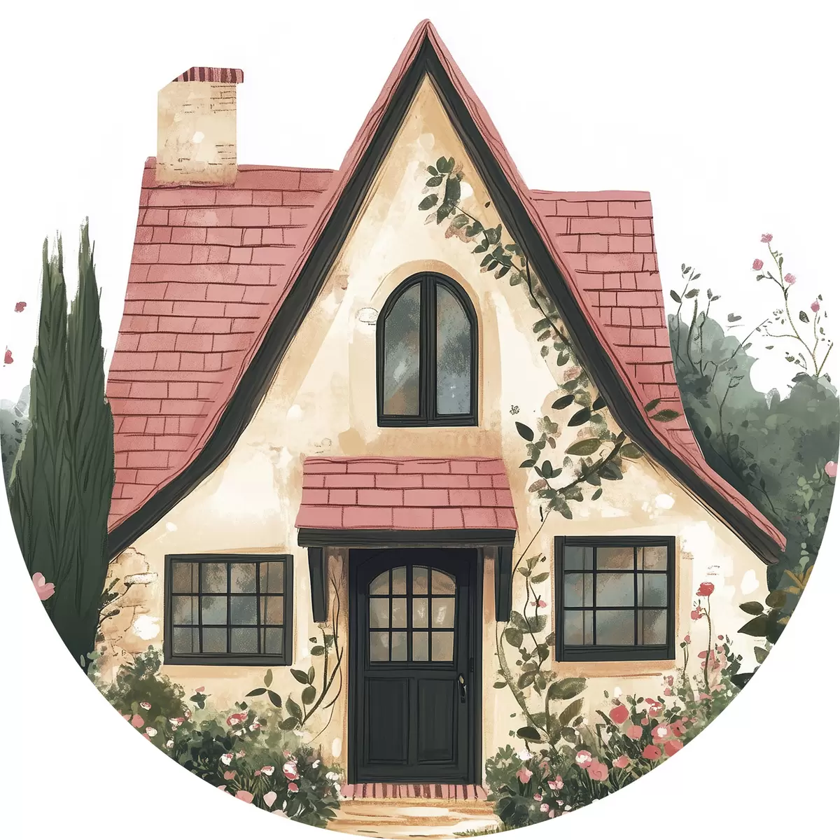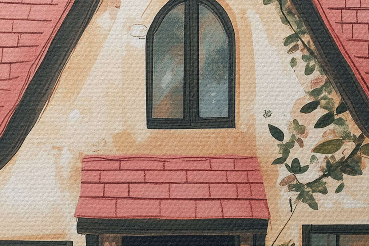 Obrázek Pohádkový dům v lese, růže, pastelový styl Nr r44718