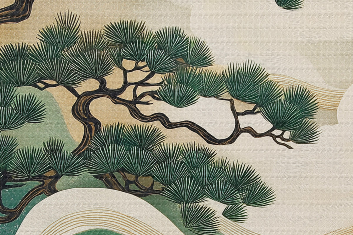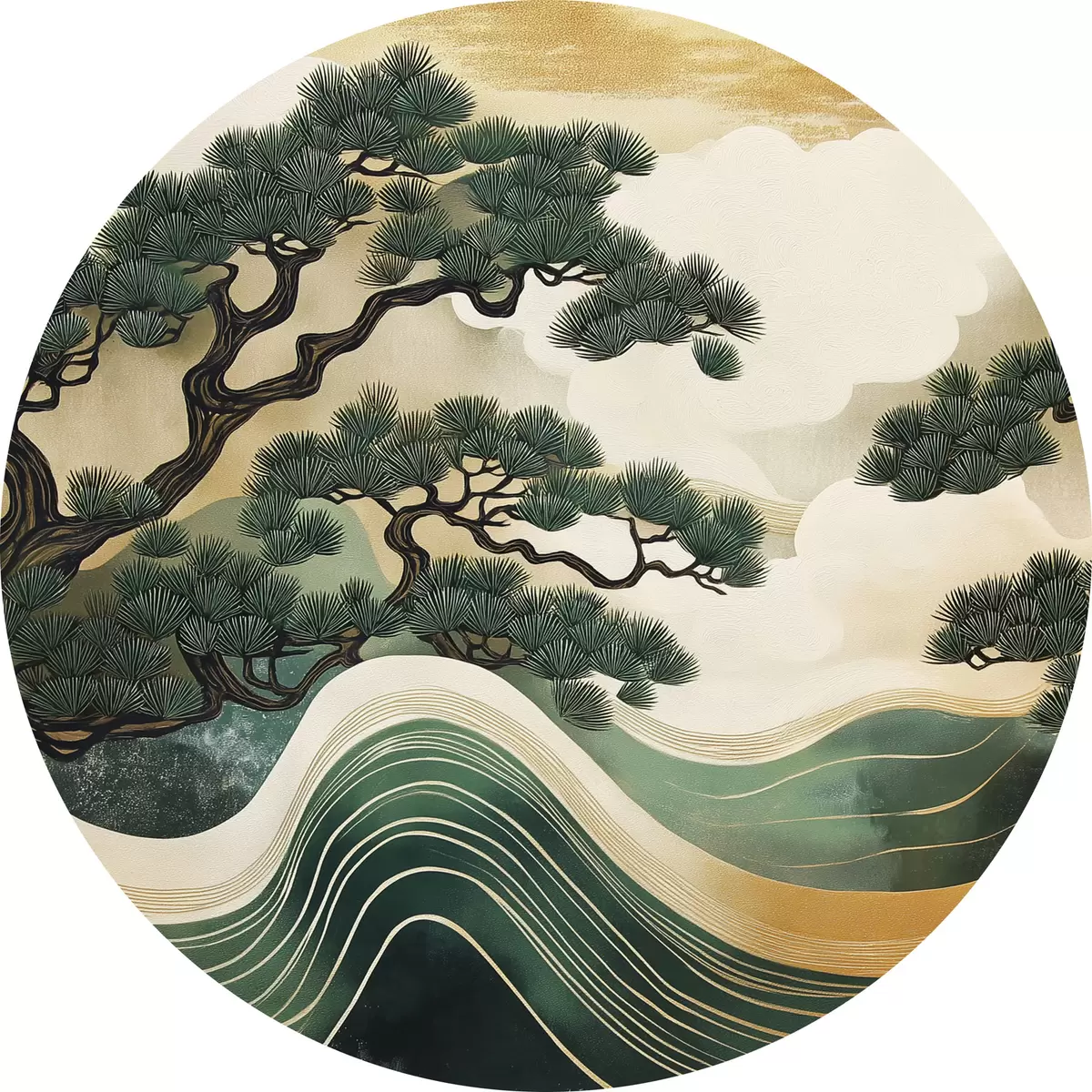 Obrázek Abstraktní krajiny s borovicemi, čínský styl Nr r44720