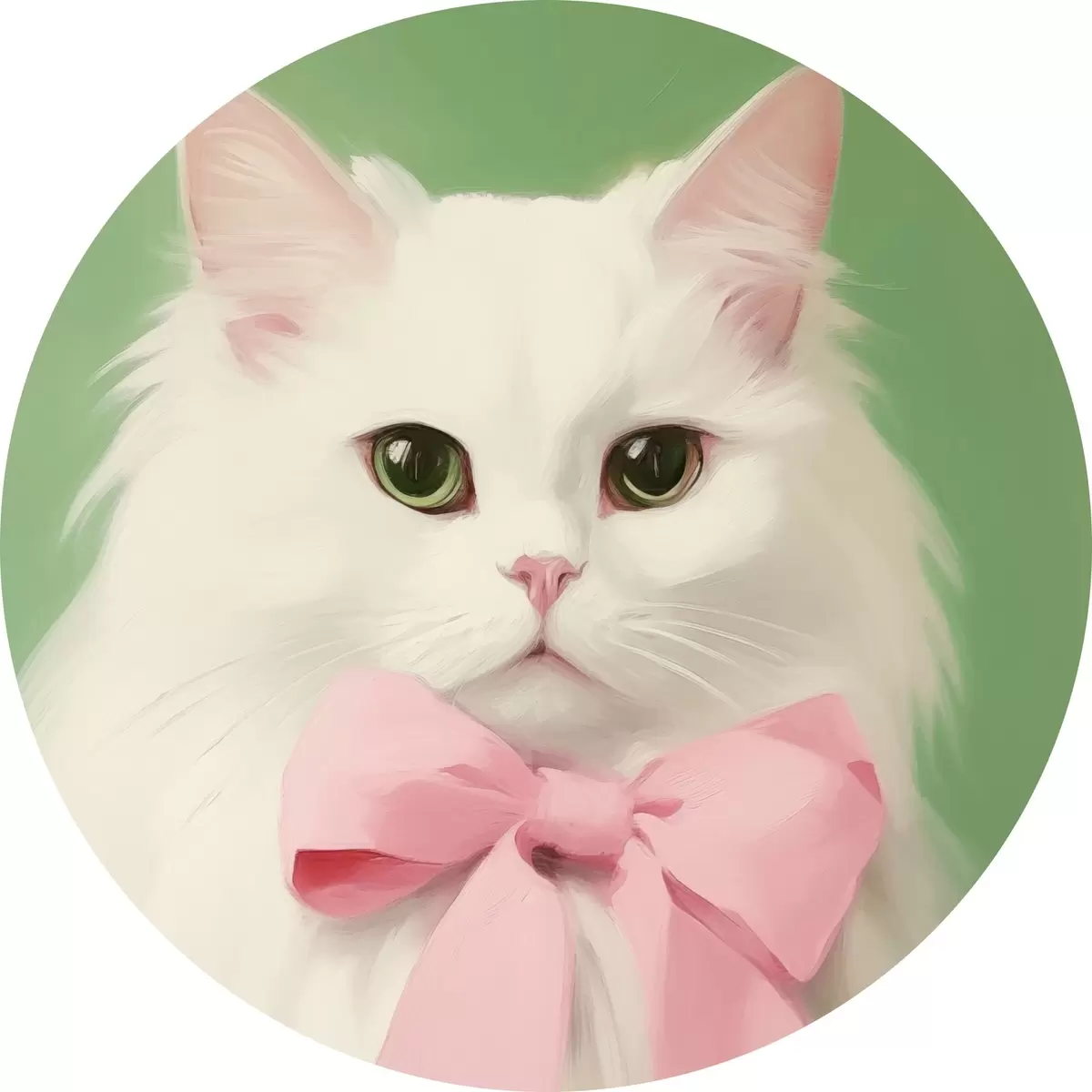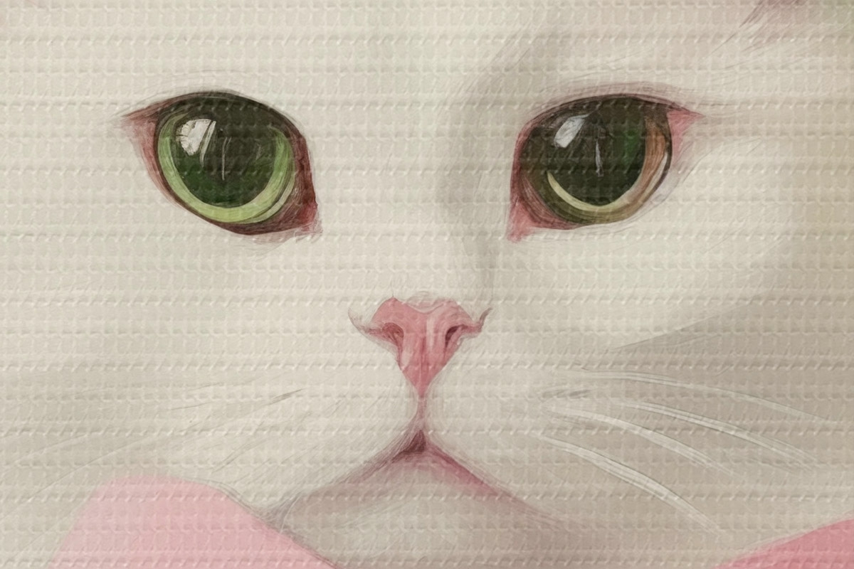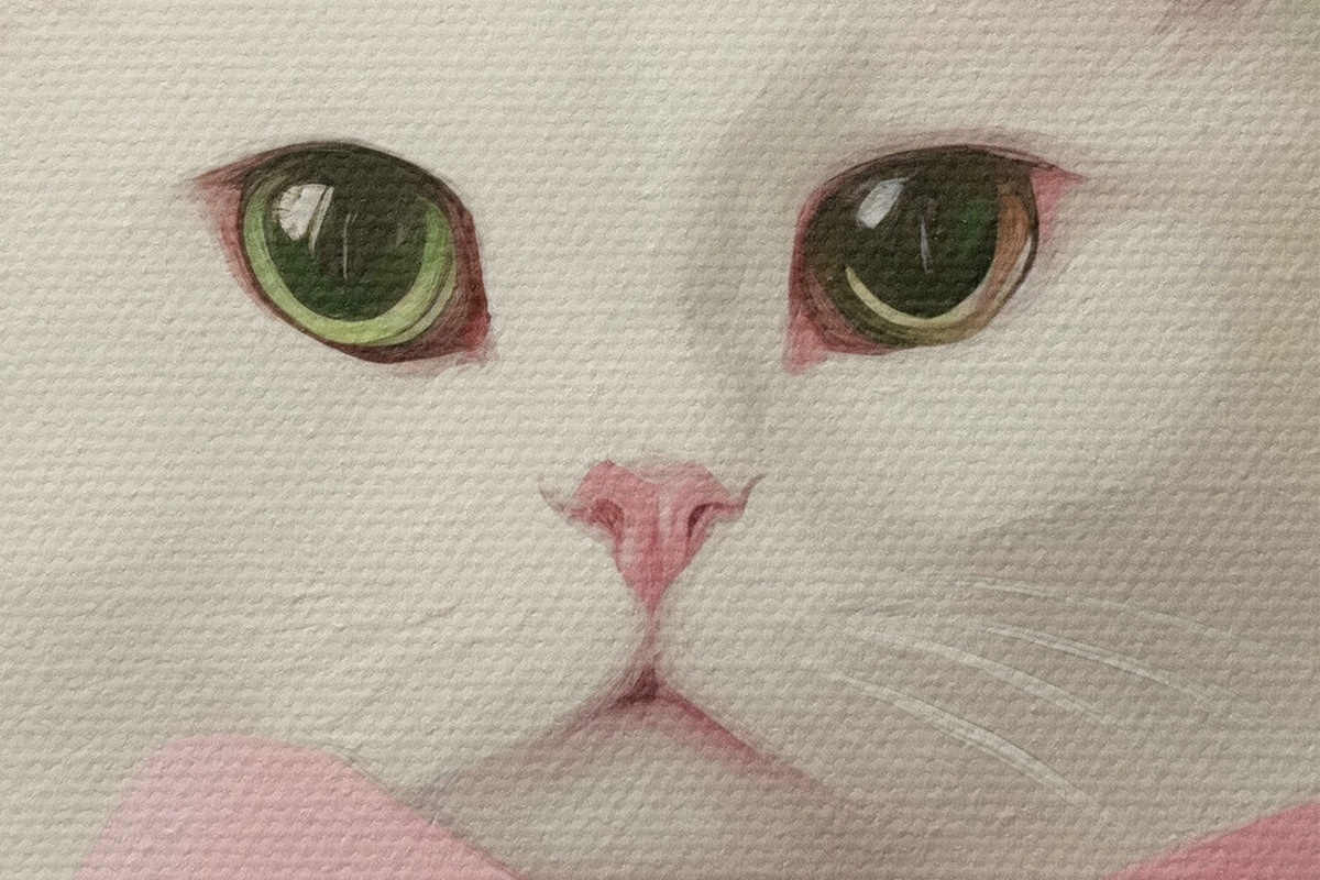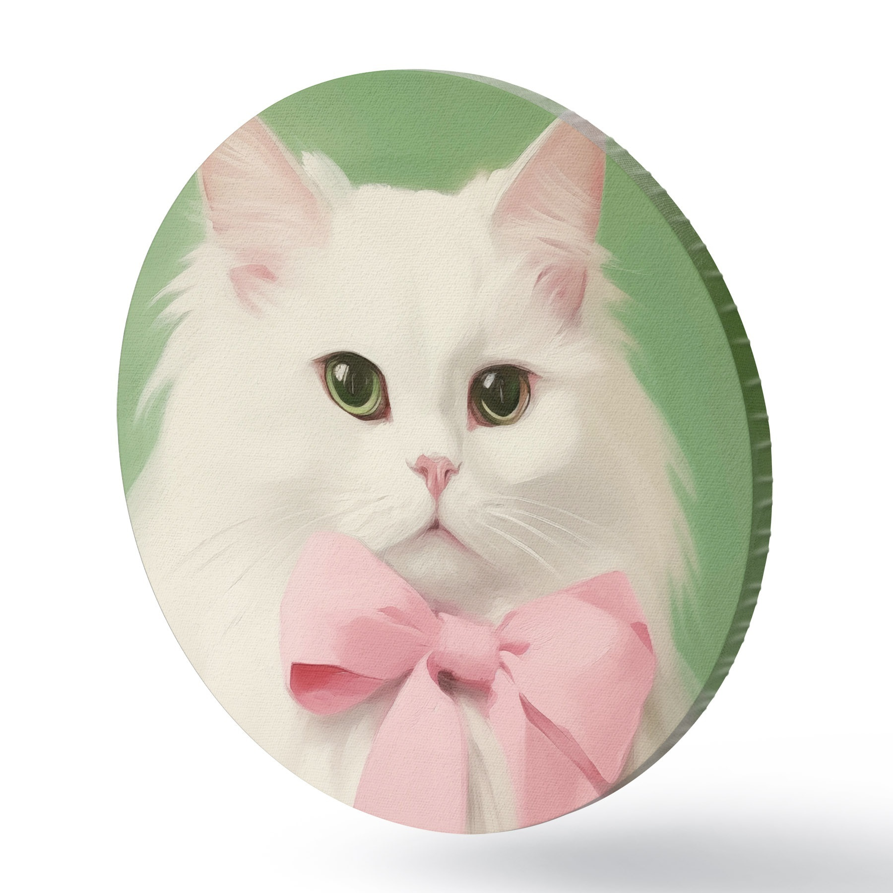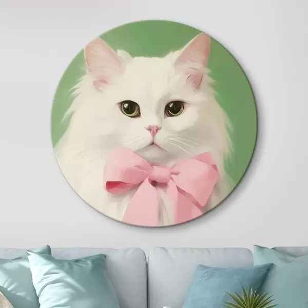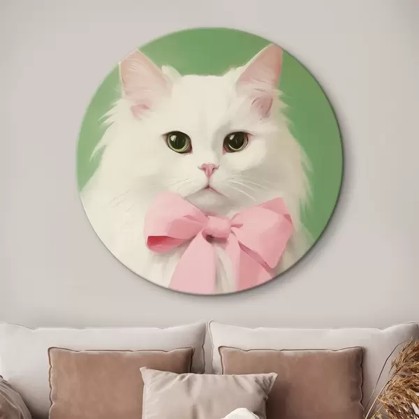 Obrázek Bílá kočka s růžovou mašlí Nr r44739