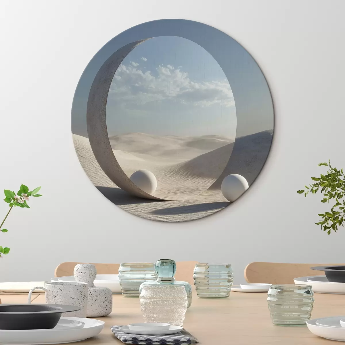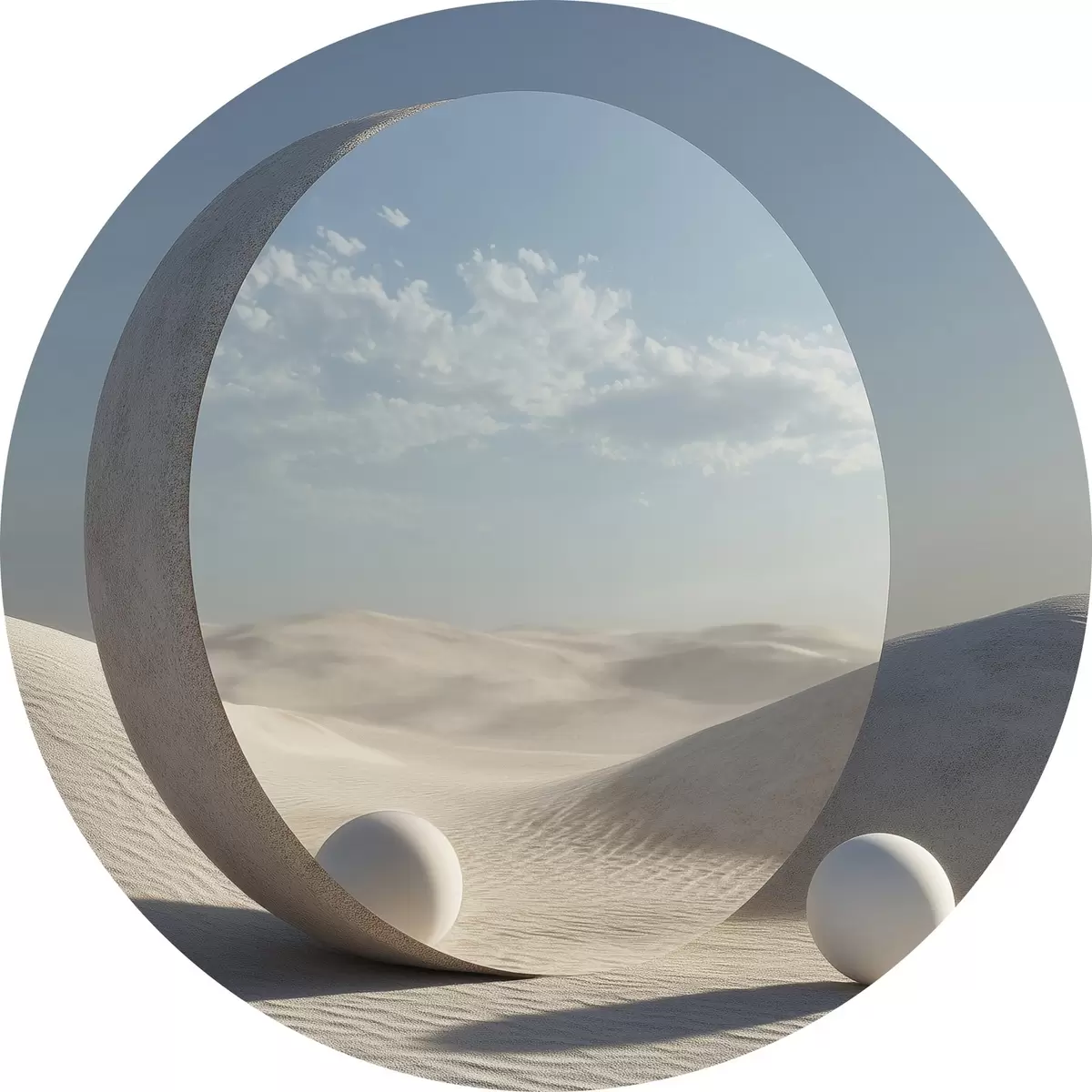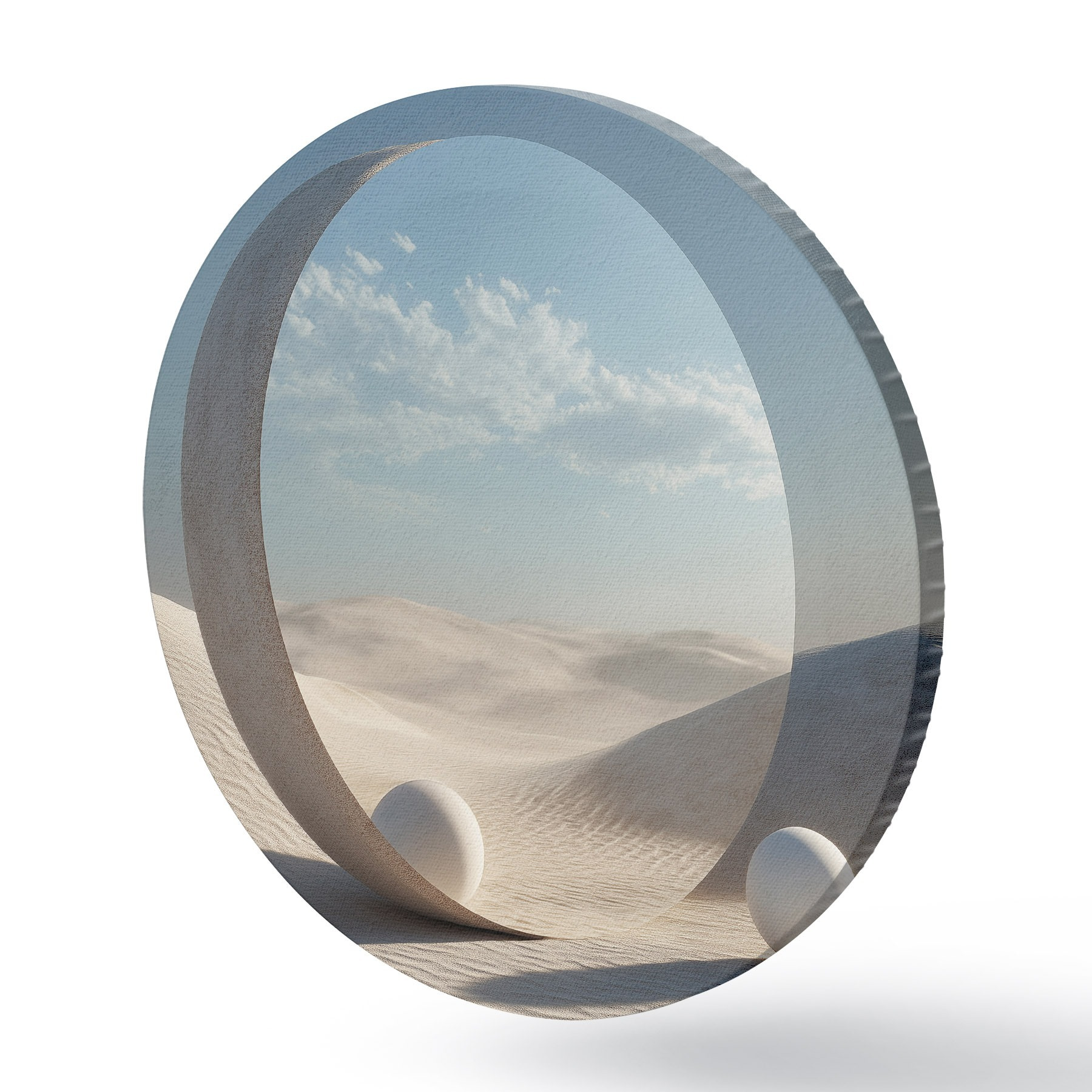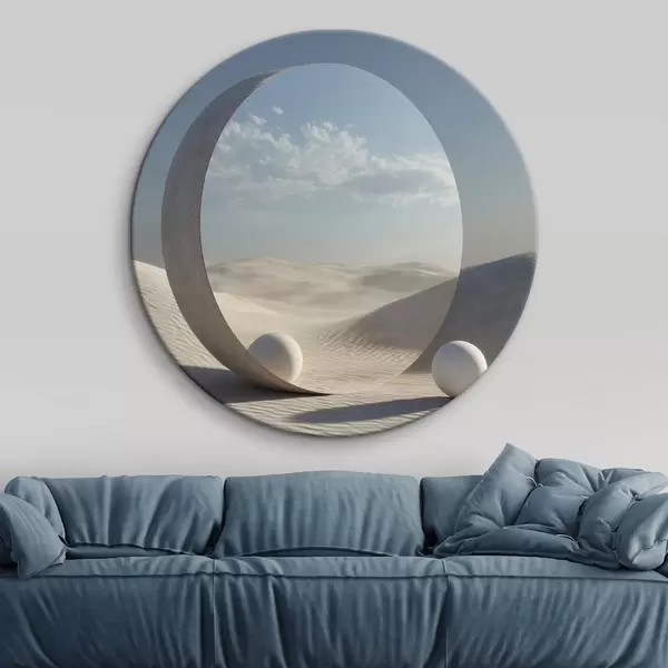 Obrázek Surrealistická pouštní krajina s kulatým zrcadlem odrážejícím oblohu a měsíc Nr r44792
