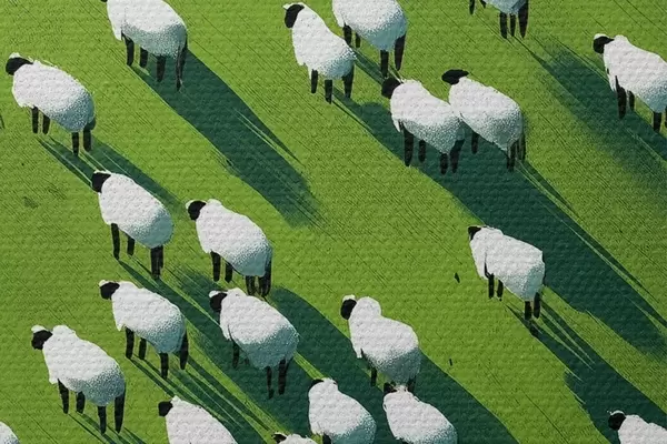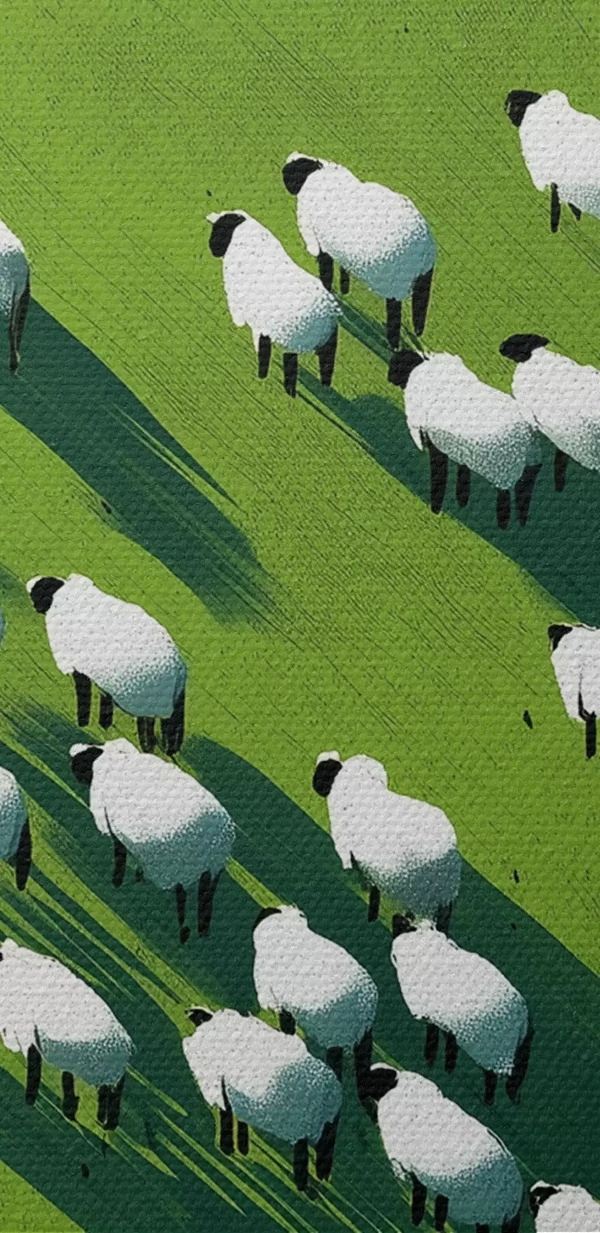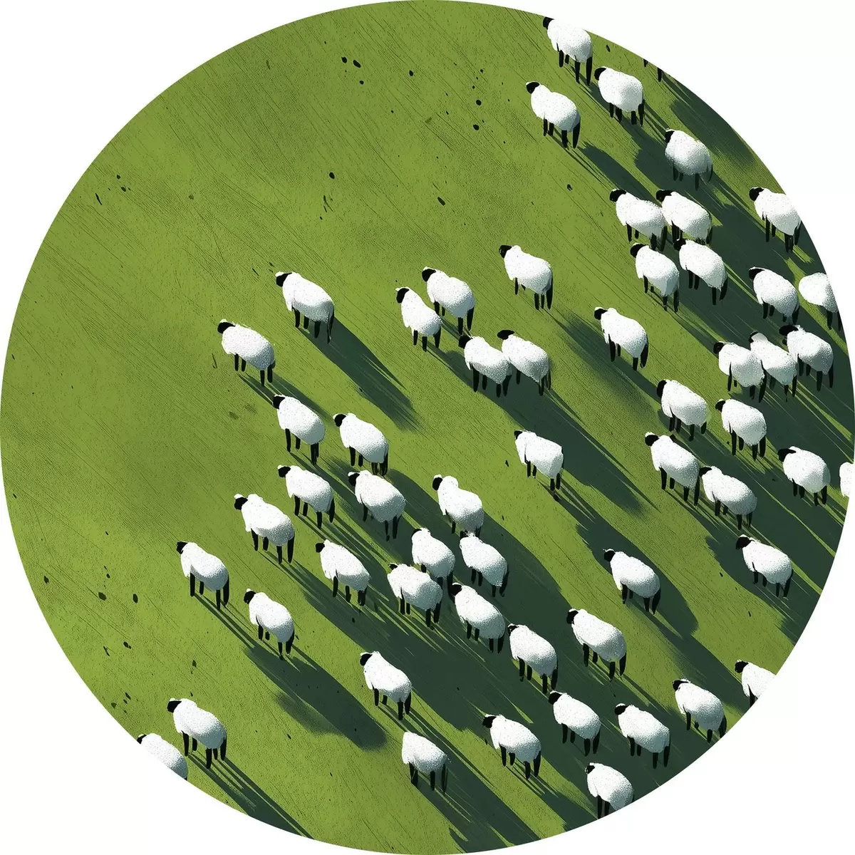 Obrázek Zelené pole se stádem ovcí, abstrakce, letecký pohled Nr r44793