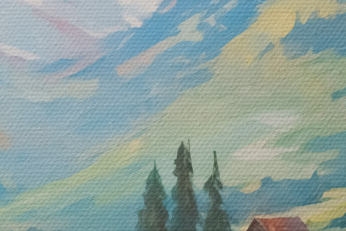 Lakování vytváří na plátně další ochrannou vrstvu. Obraz bude odolnější vůči drobným poškozením a k osvěžení nalakovaného obrazu jej můžete otřít měkkým, mírně navlhčeným hadříkem.