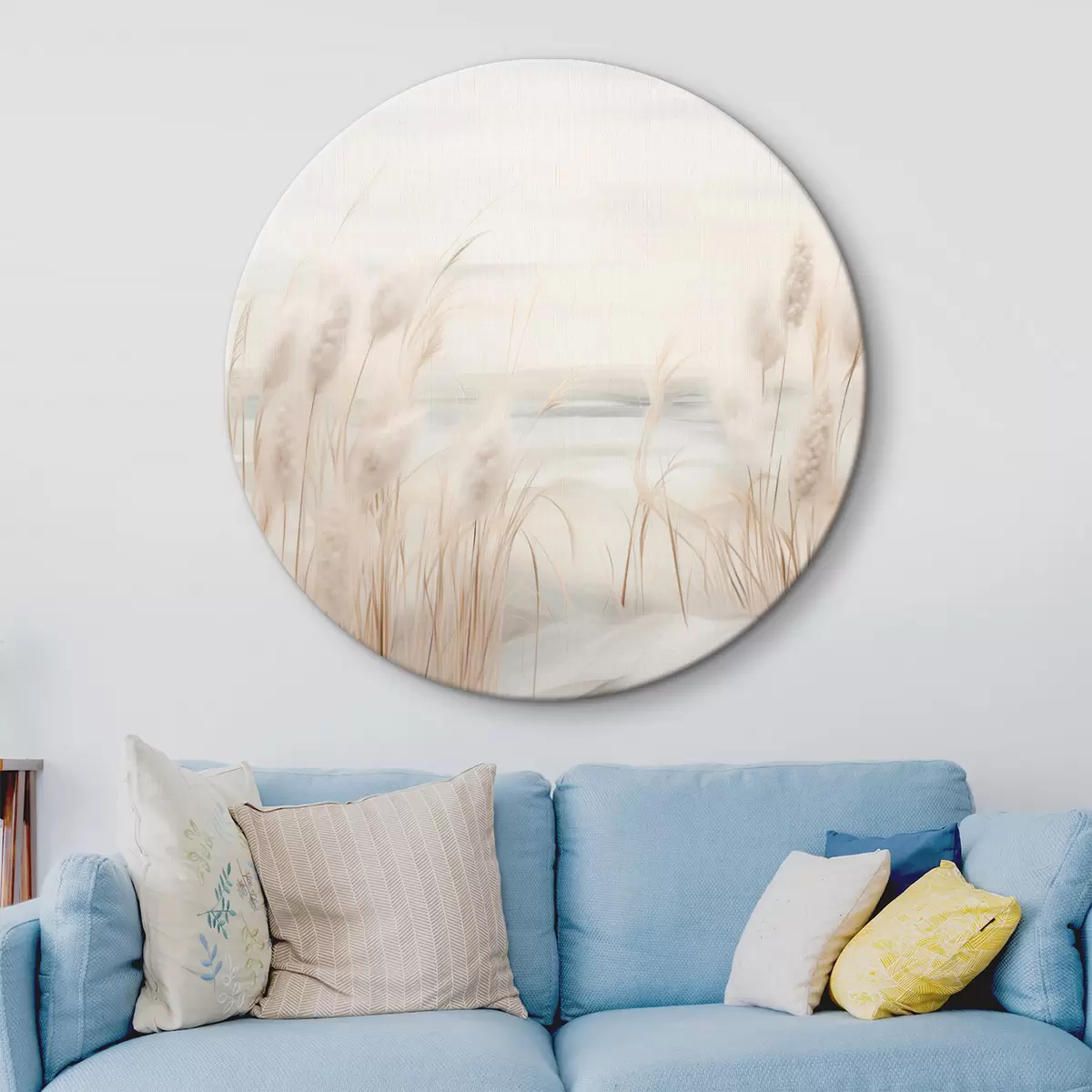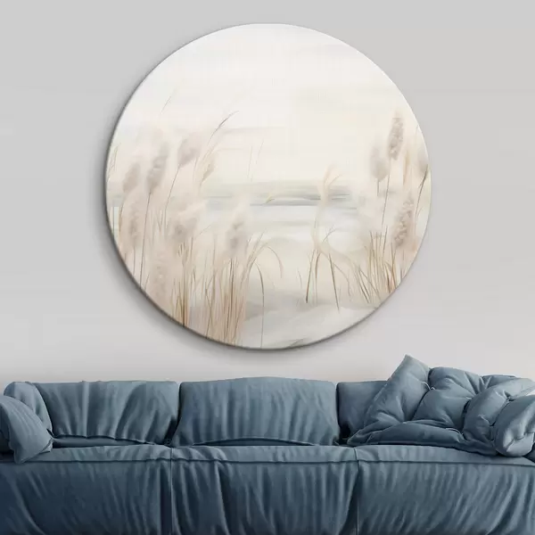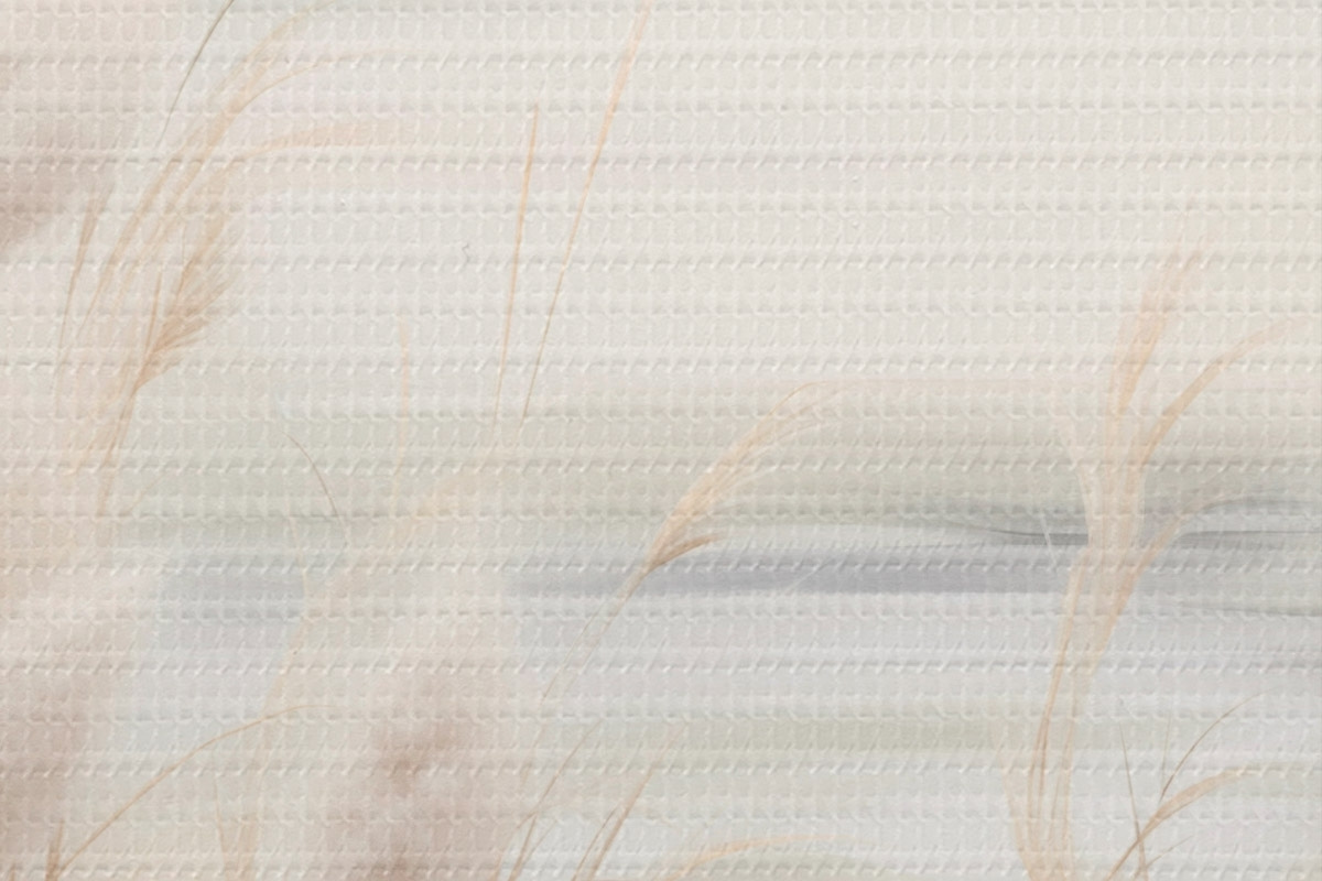 Obrázek Béžové rákosí v popředí s hlavičkami semen, měkké a jemné , rozmazané pozadí a světlá obloha Nr r44851