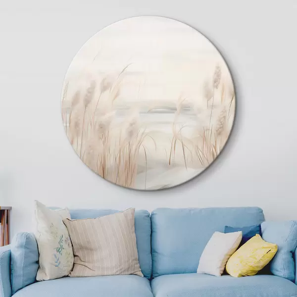 Obrázek Béžové rákosí v popředí s hlavičkami semen, měkké a jemné , rozmazané pozadí a světlá obloha Nr r44851