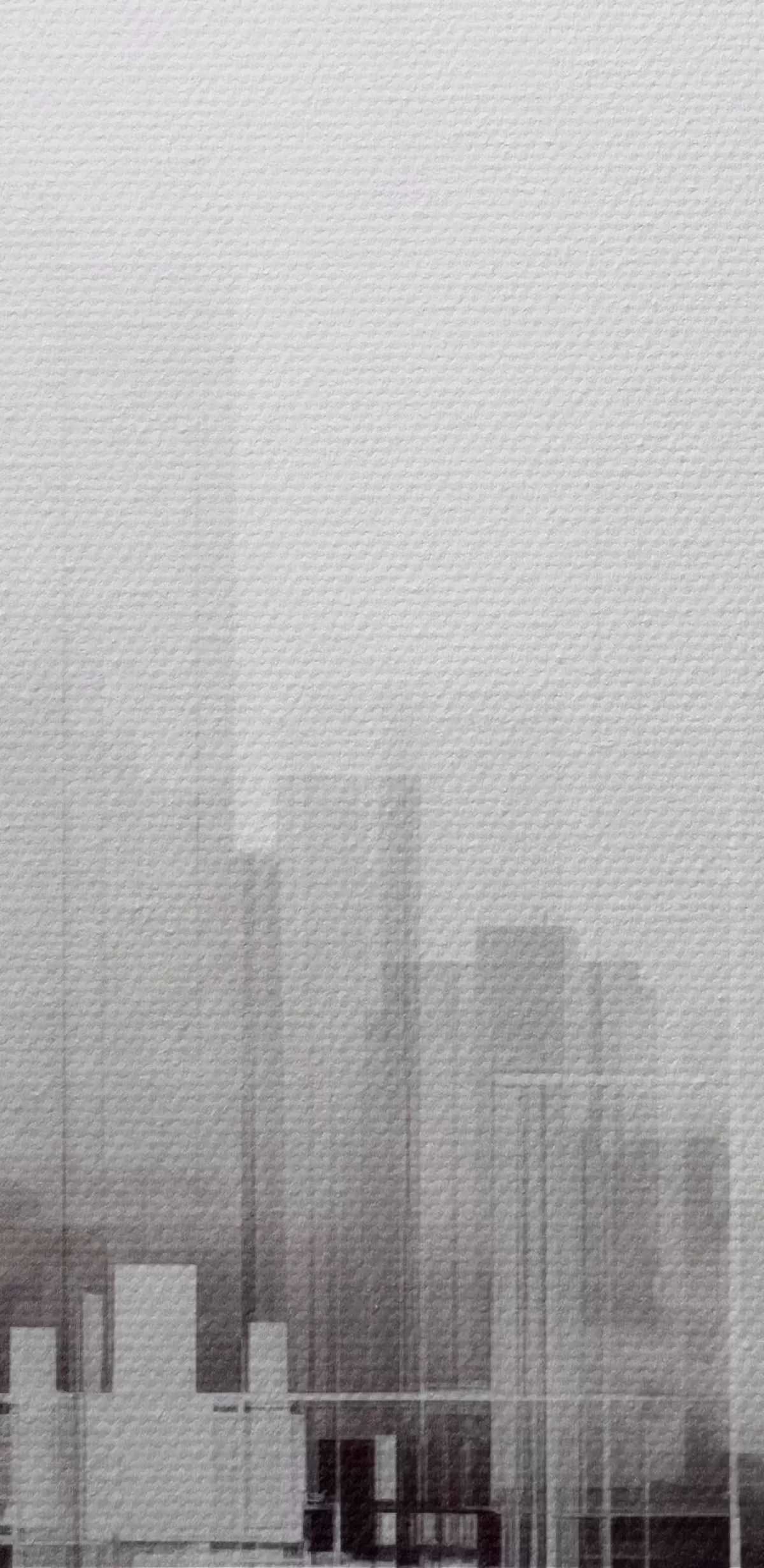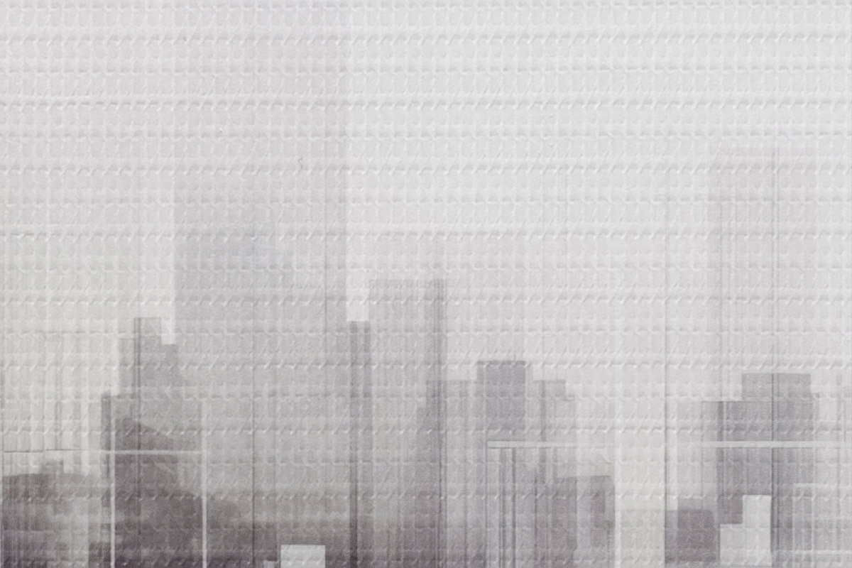 Obrázek Texturovaná minimalistická městská krajina s vysokými budovami a mrakodrapy v siluetě na bílé obloze Nr r44863