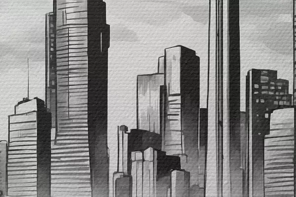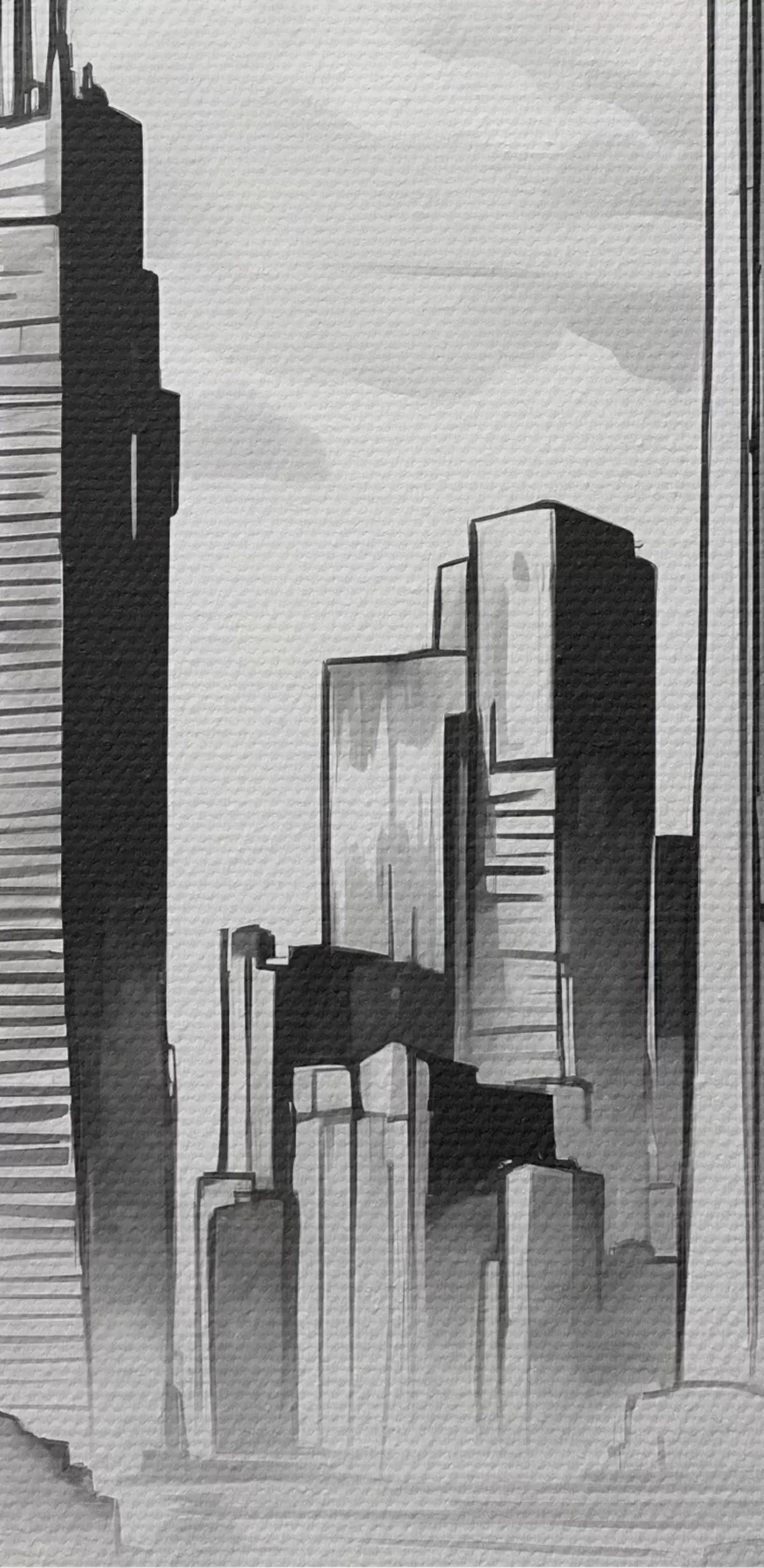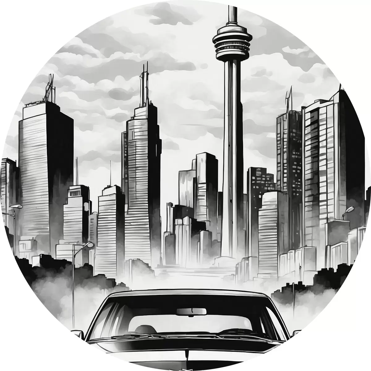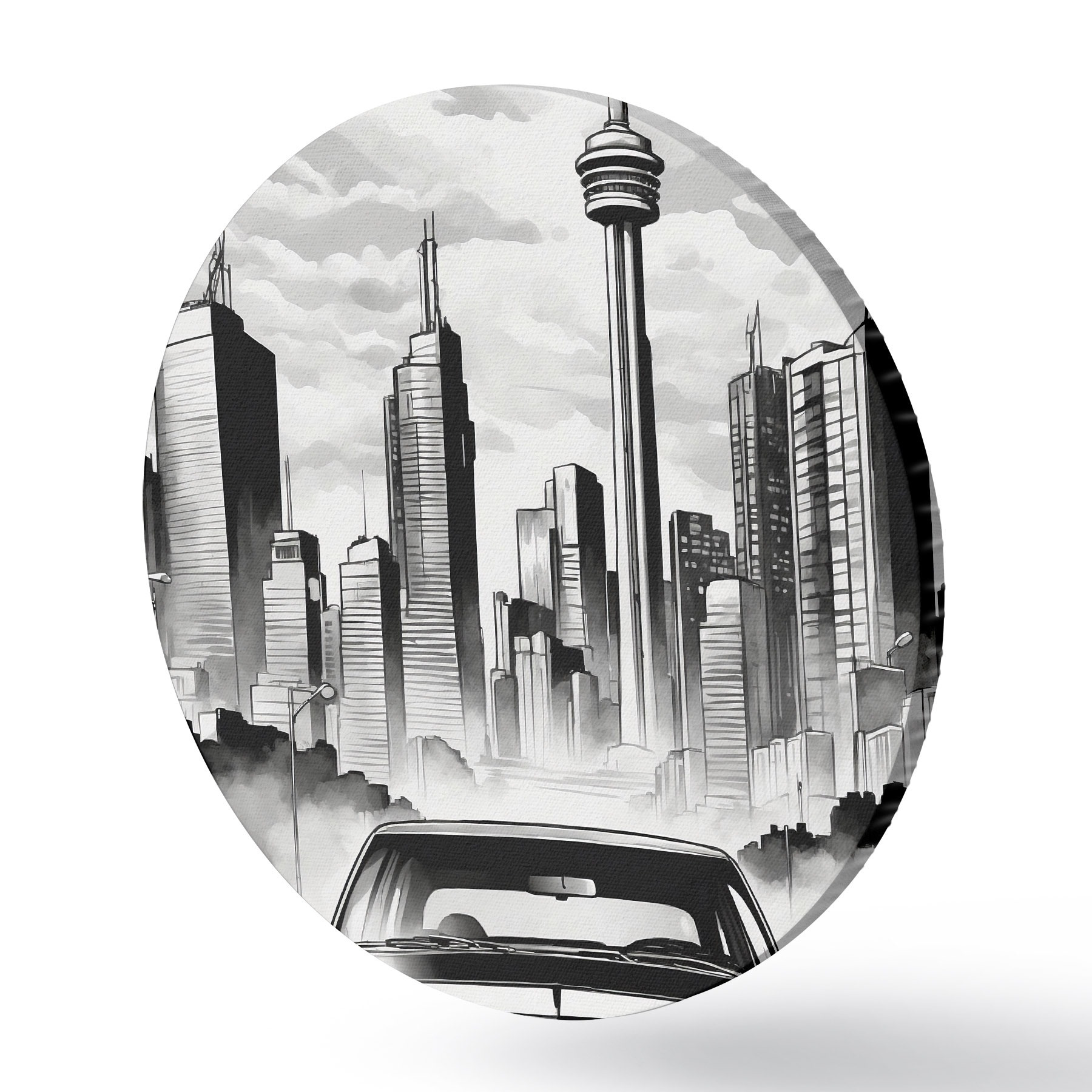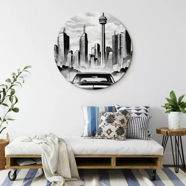Obrázek Retro auto na pozadí černobílého města s mrakodrapy Nr r44871