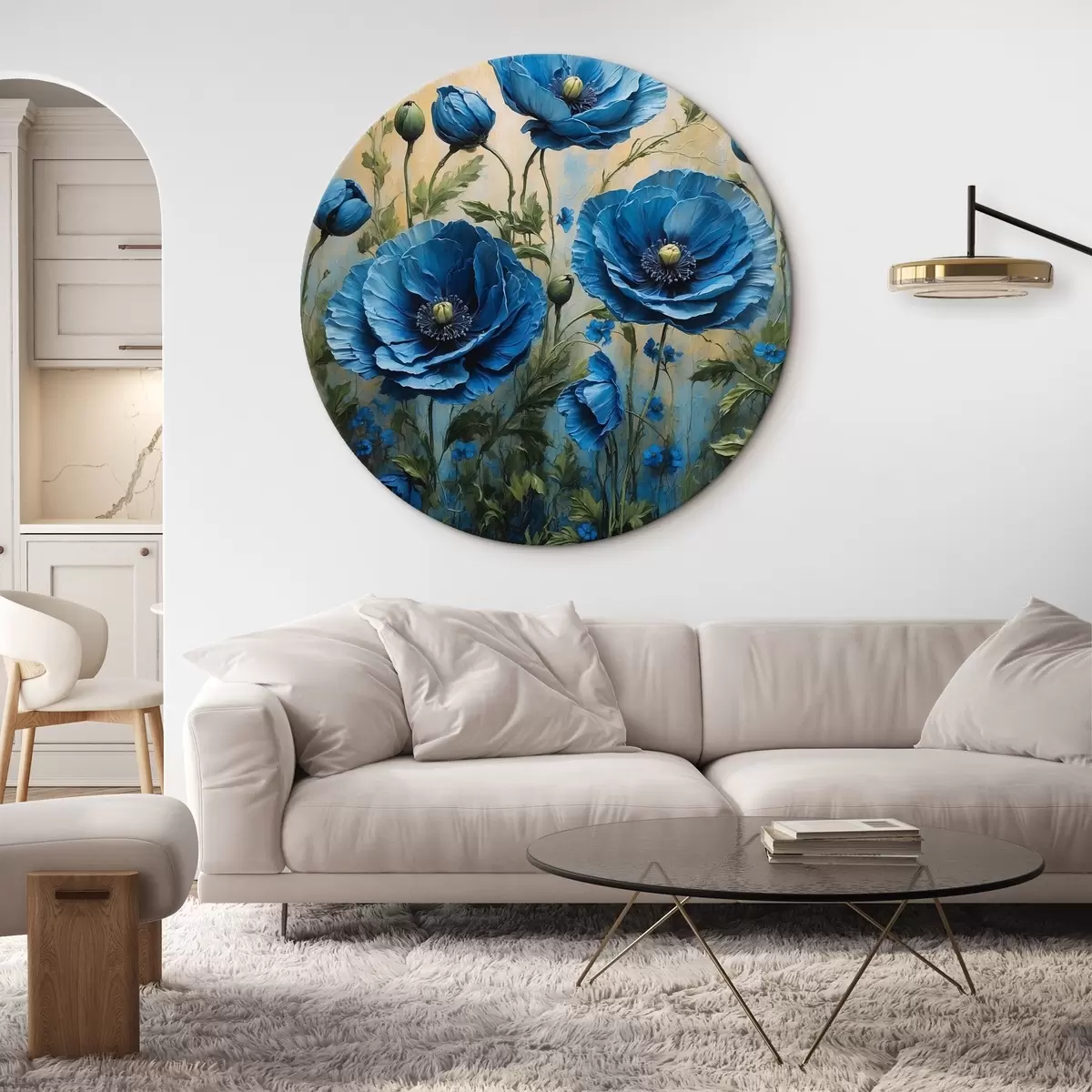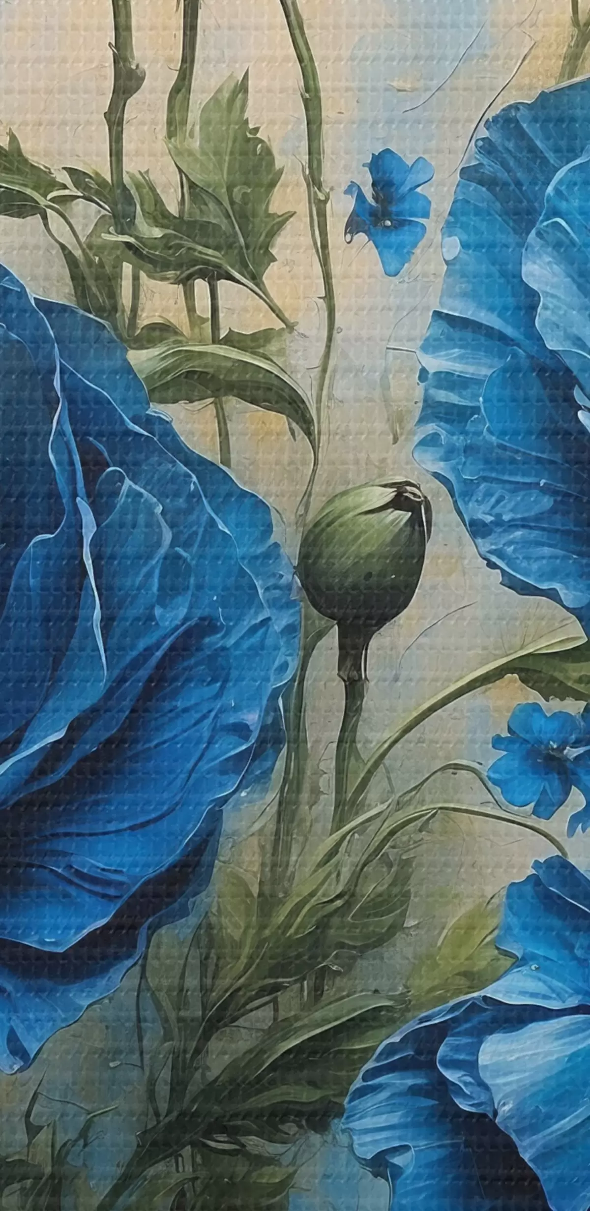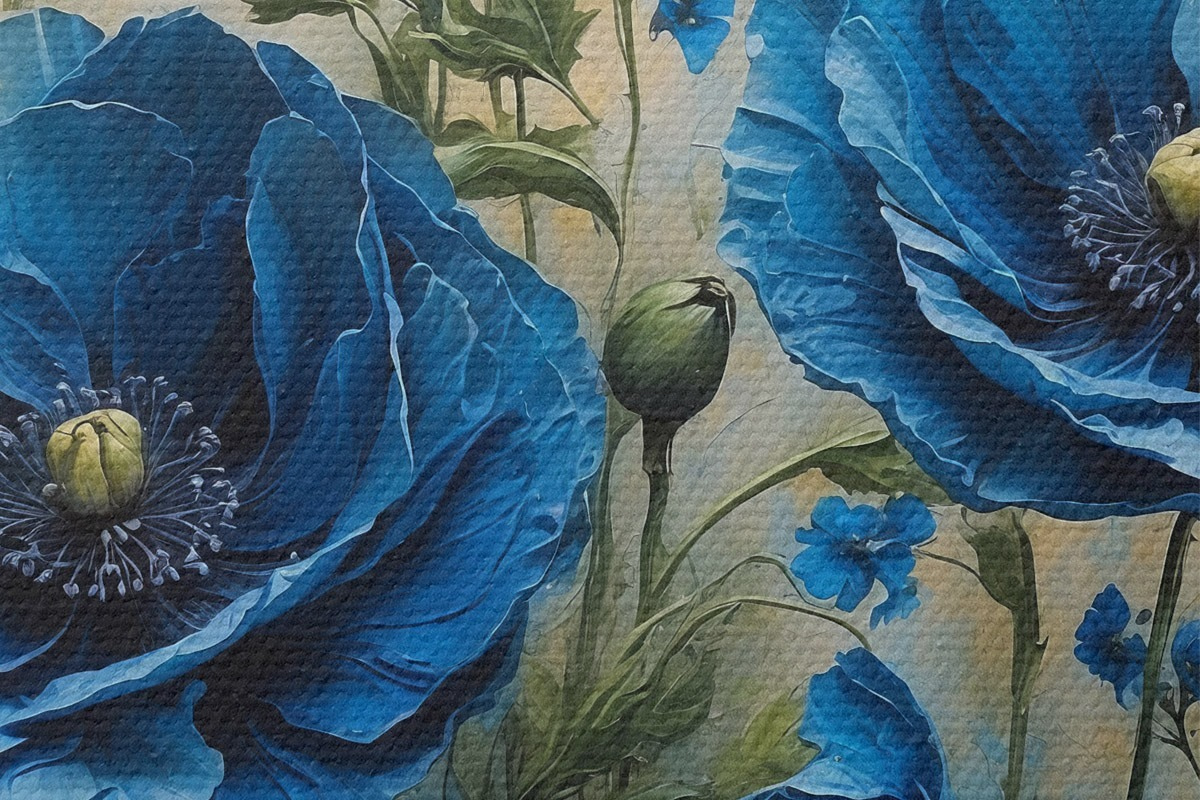 Obrázek Modré vlčí máky na pastelovém pozadí s listy Nr r44882