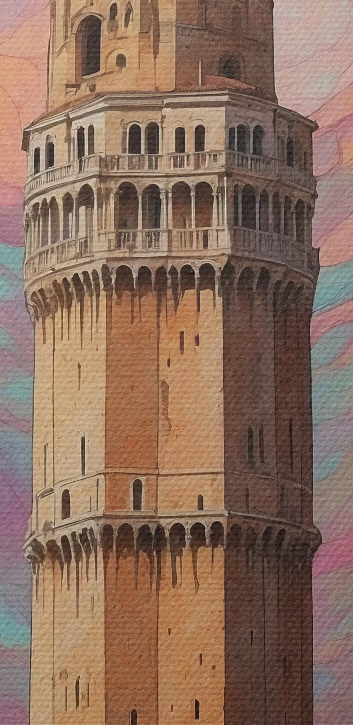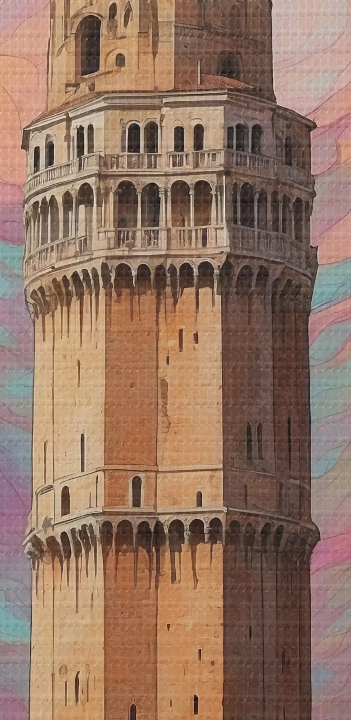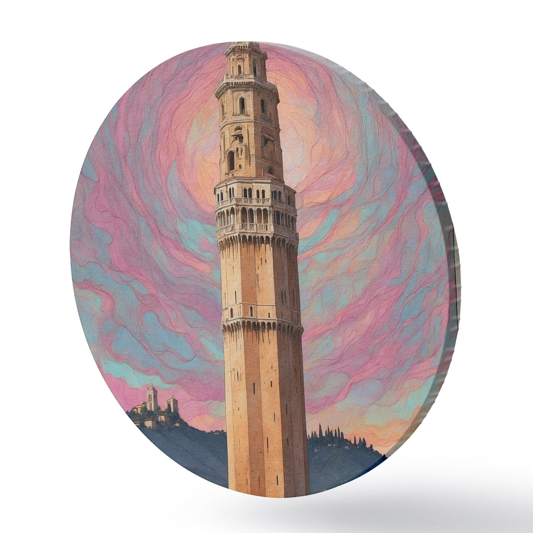 Obrázek Fantasy věž na pozadí oblohy s růžovými a modrými spirálami Nr r44885