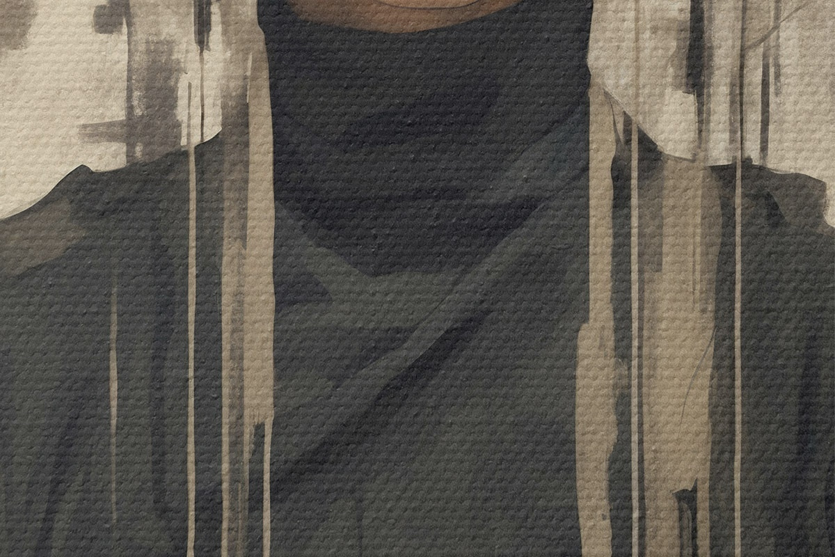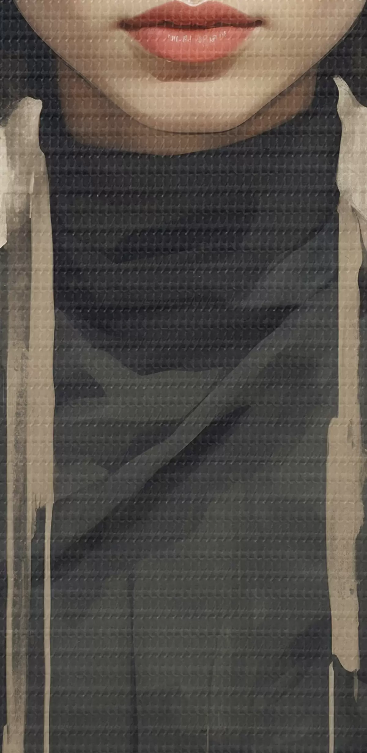 Obrázek Portrét ženy s krátkými tmavými vlasy na abstraktním pozadí Nr r44890