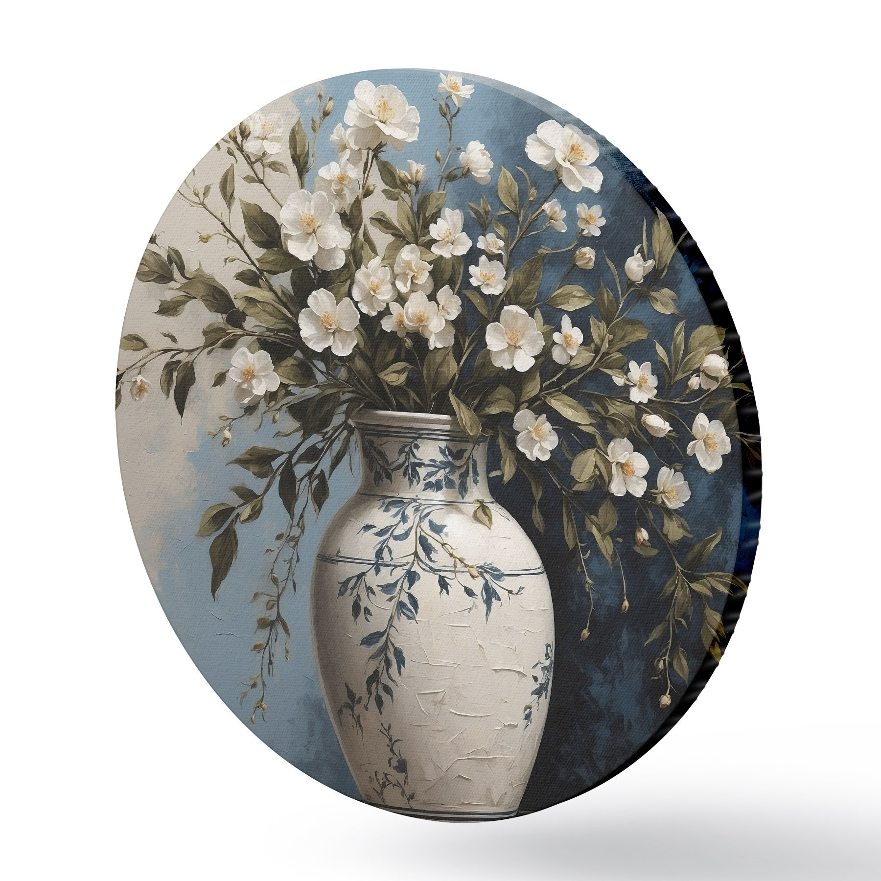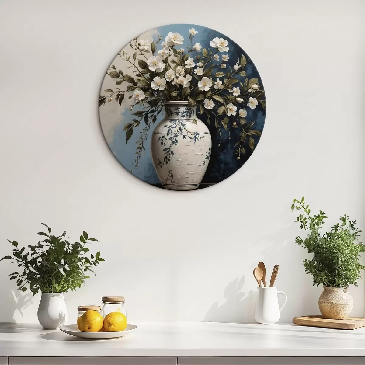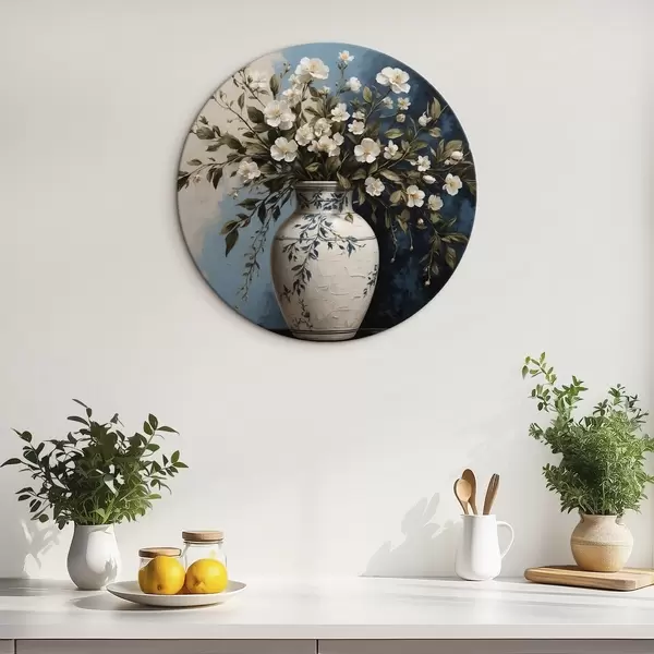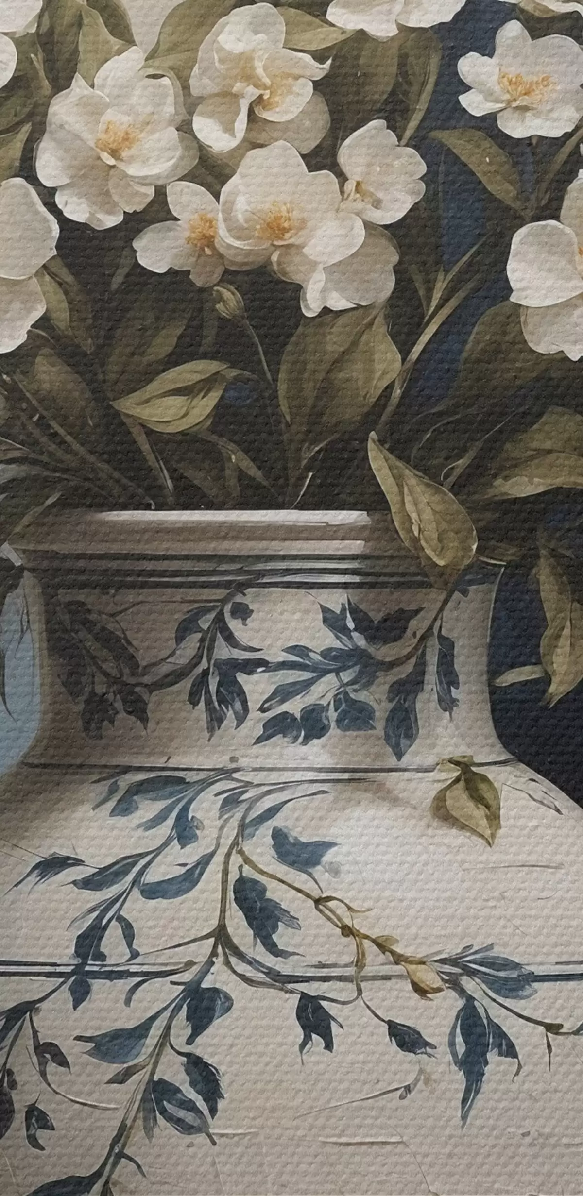 Obrázek Bílé a žluté květy ve velké váze na modrém pozadí Nr r44893