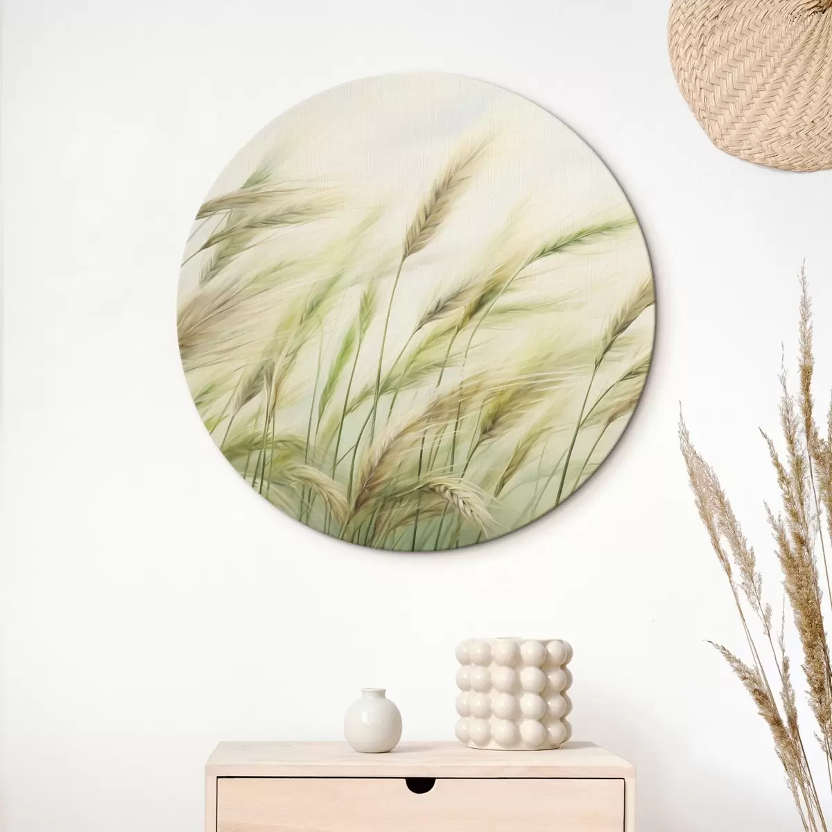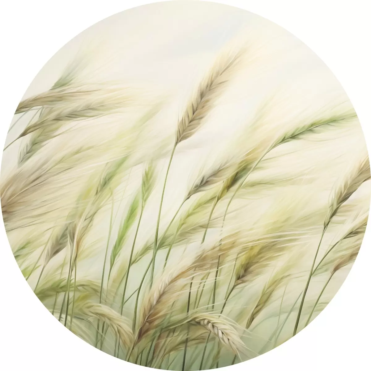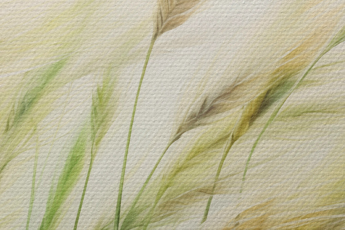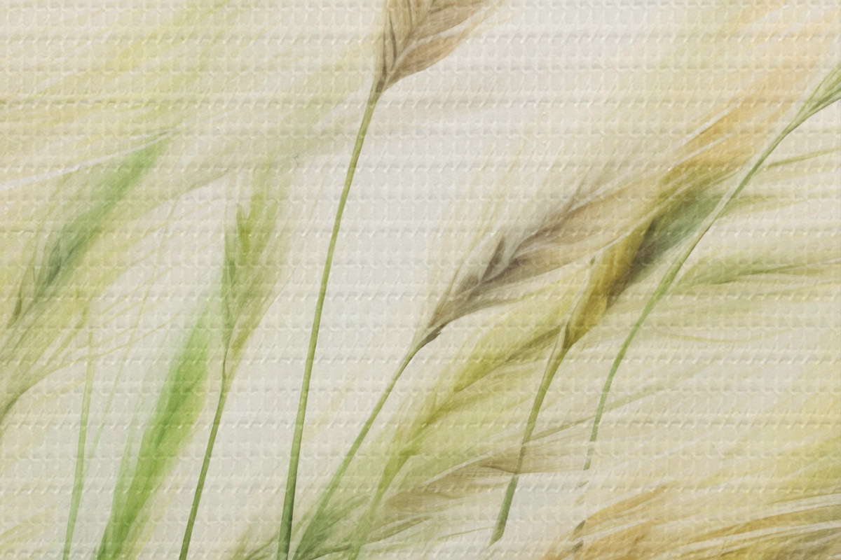 Obrázek Pšeničné pole se žlutými a zelenými klasy, jemné tahy štětcem a světlá paleta barev, přírodní atmosféra Nr r44923