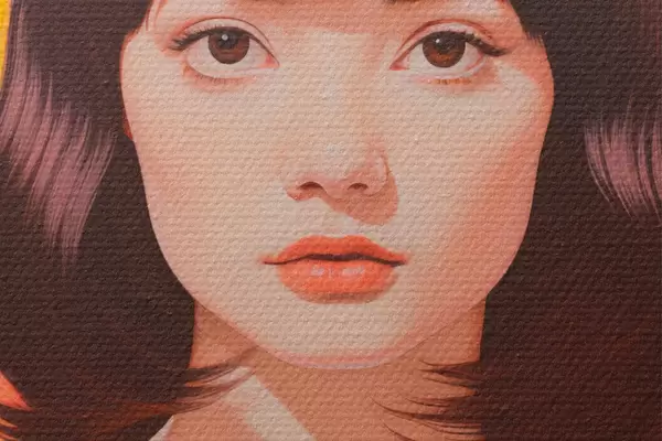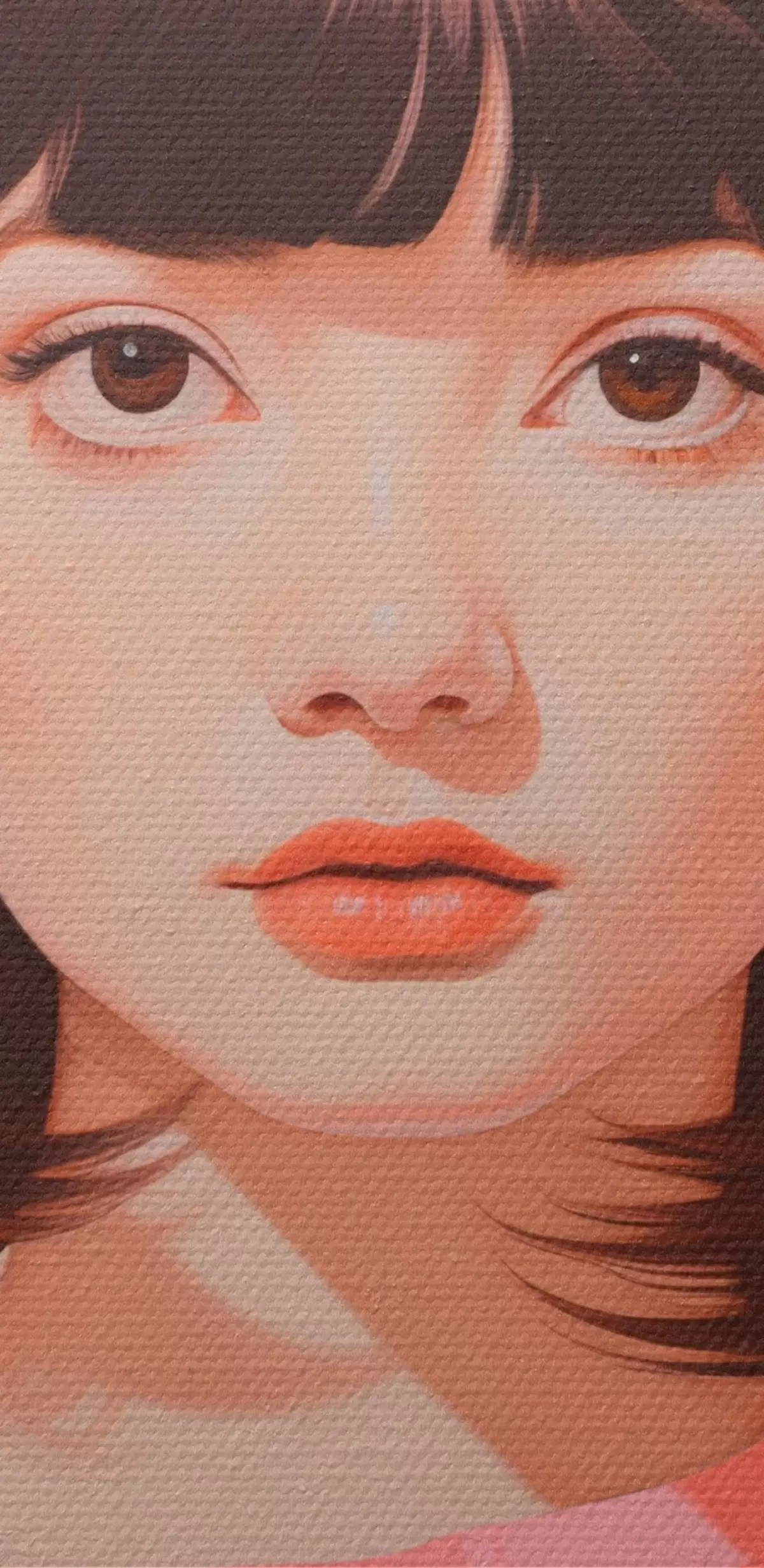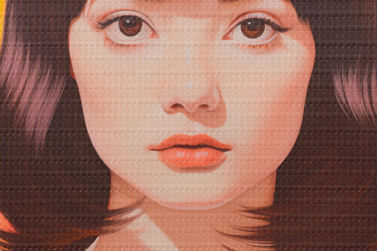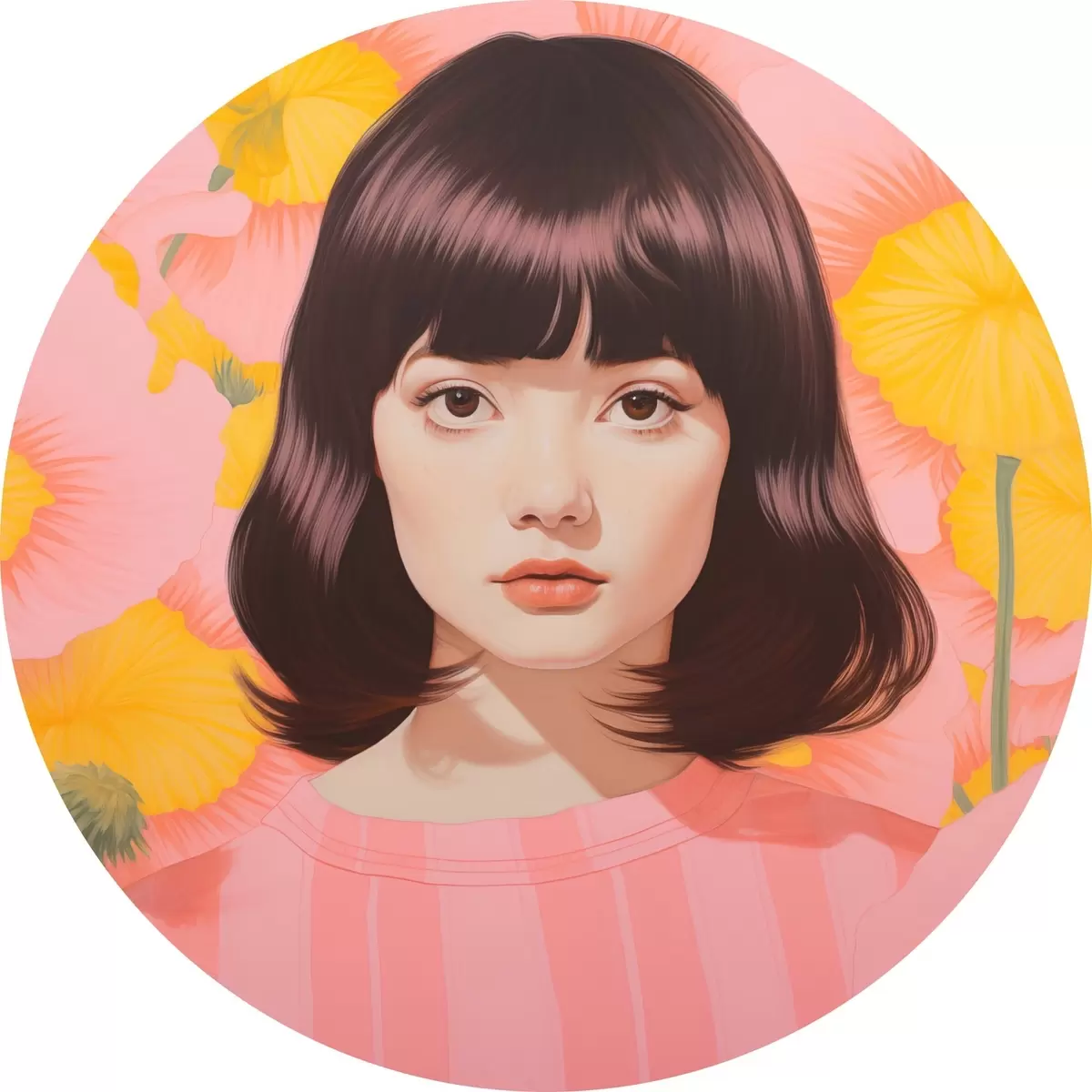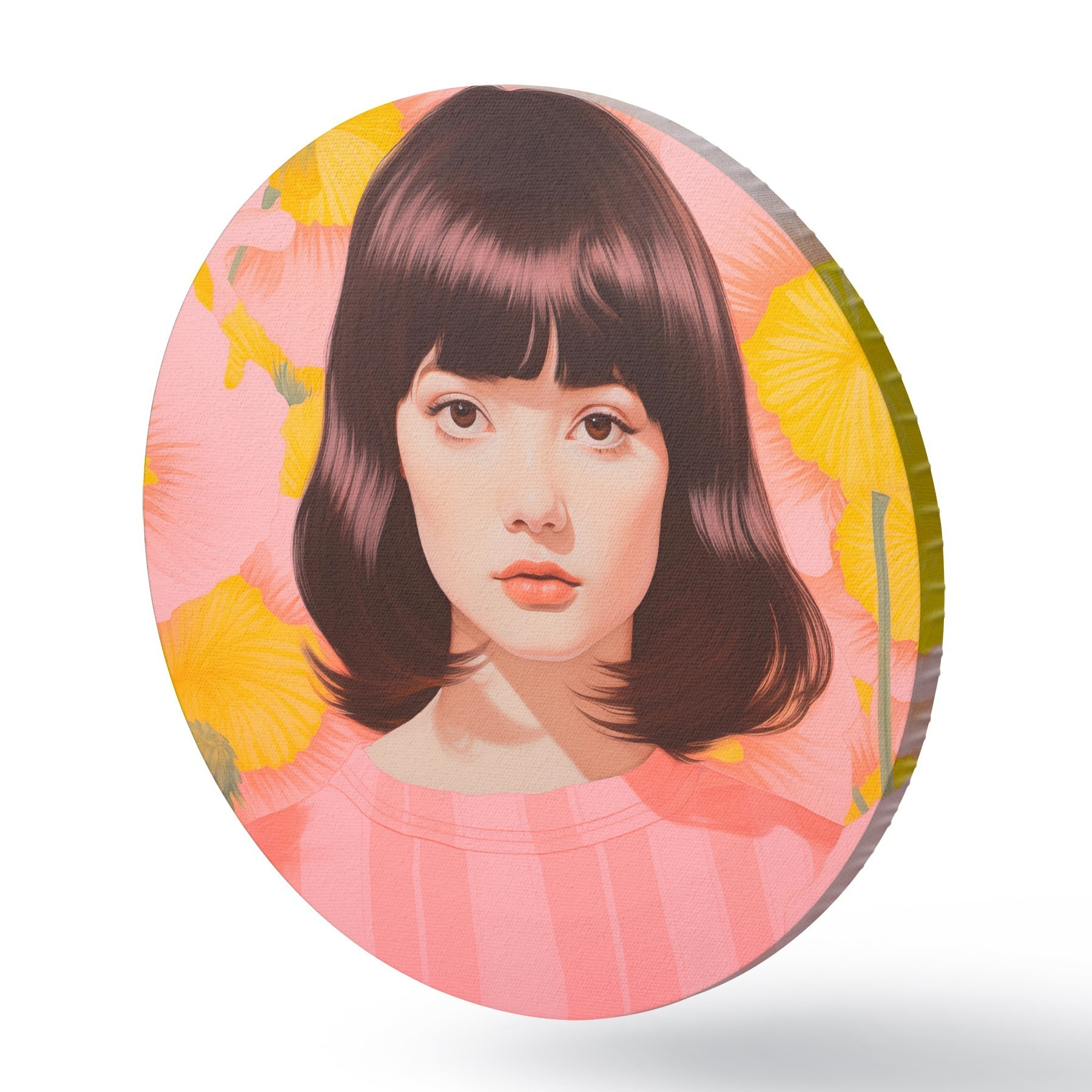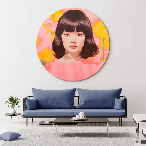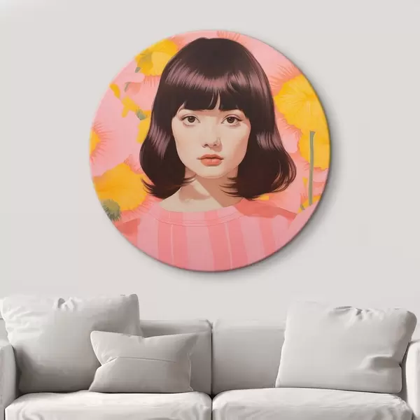 Obrázek Dekorativní minimalistický portrét asijské dívky v poli žlutých a růžových květů Nr r44924