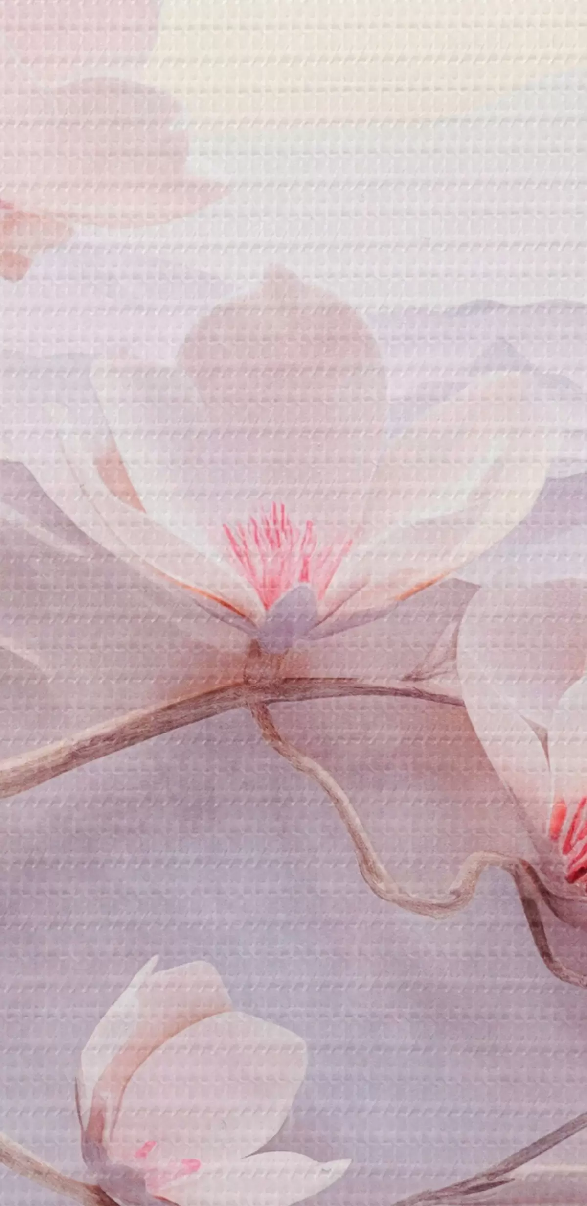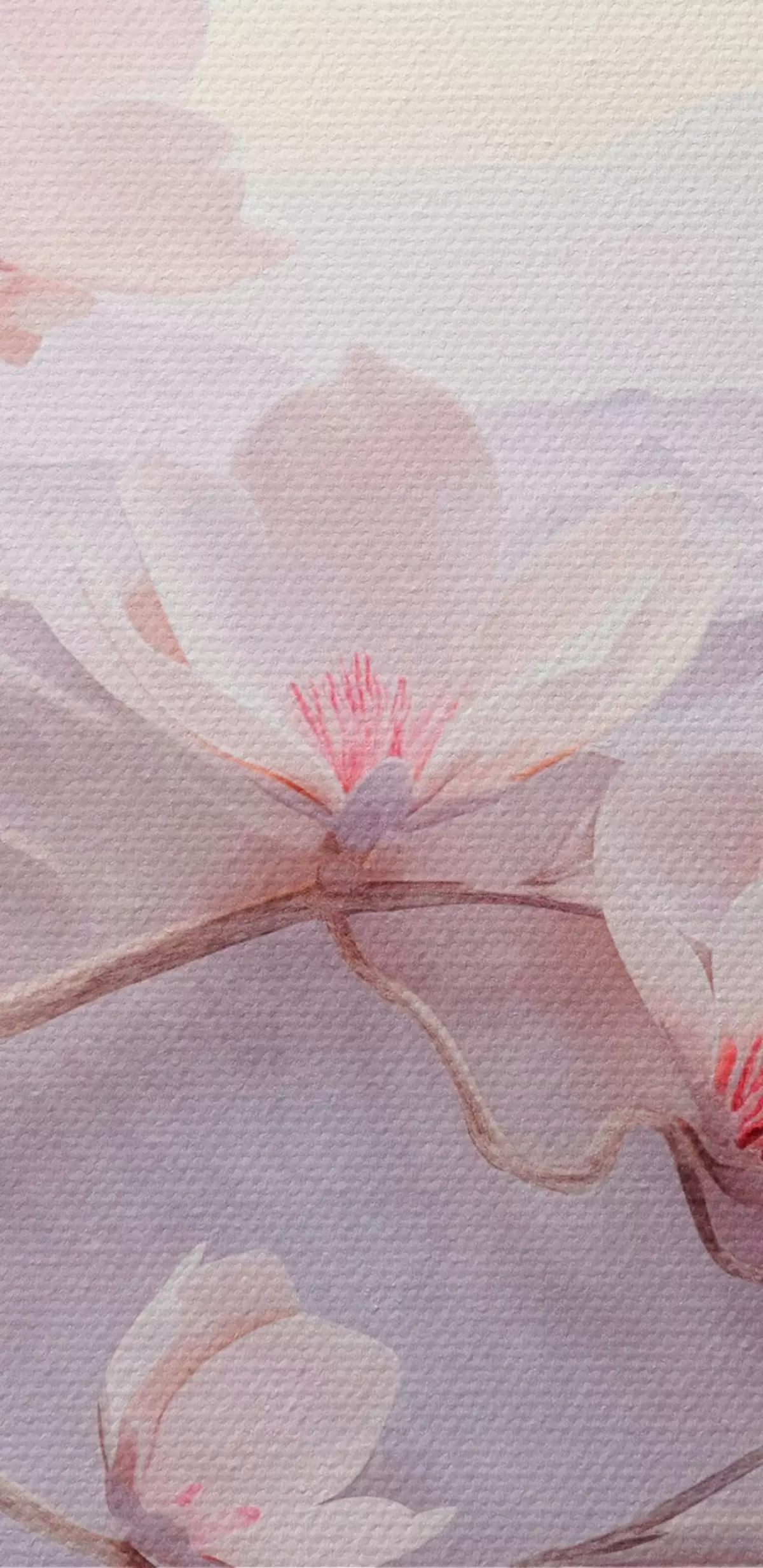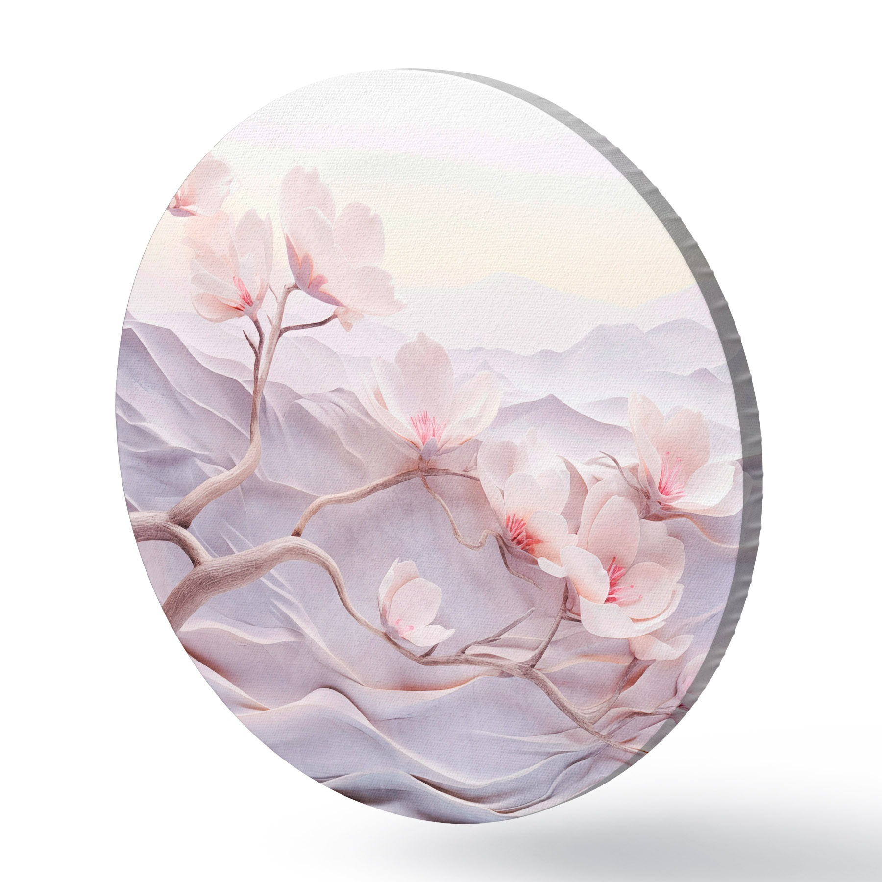 Obrázek Květinová větev s růžovými květy, hory v pozadí, jemné pastelové barvy, japonské umění s texturou Nr r44930