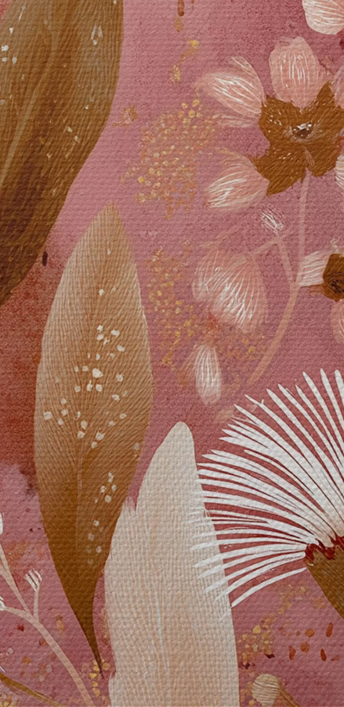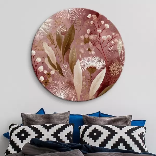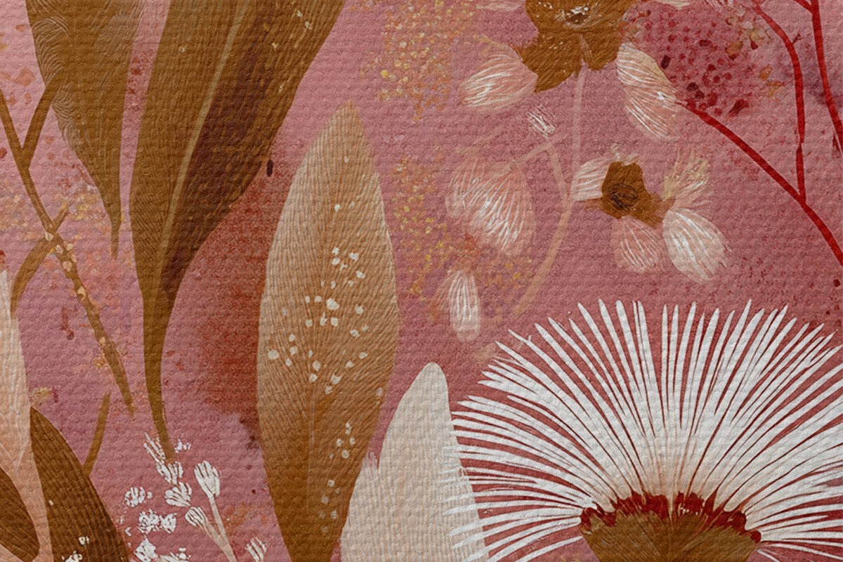 Obrázek Bílé květiny v boho stylu na červeném pozadí, detailní kresba Nr r44979