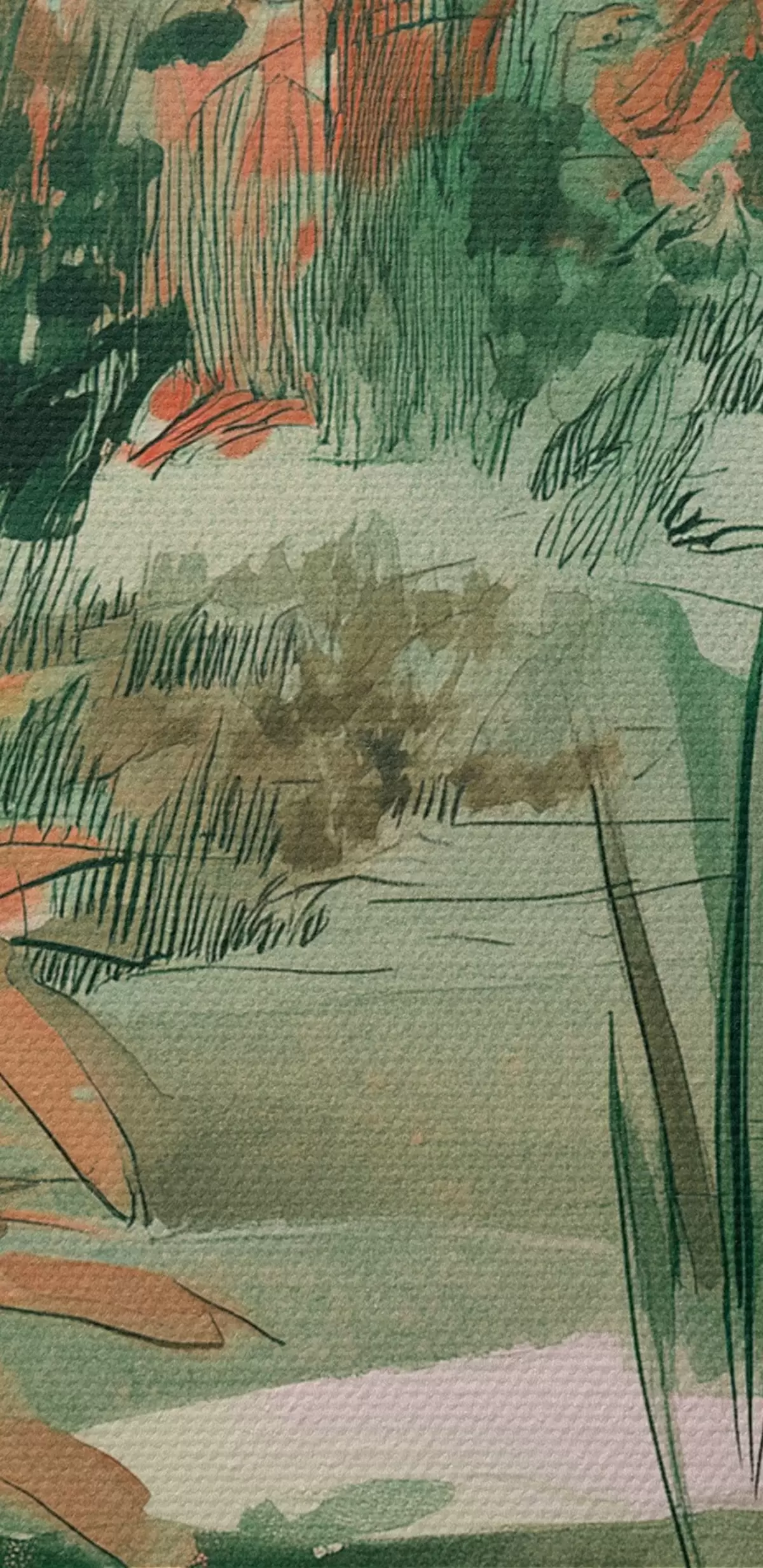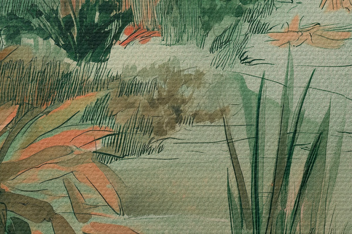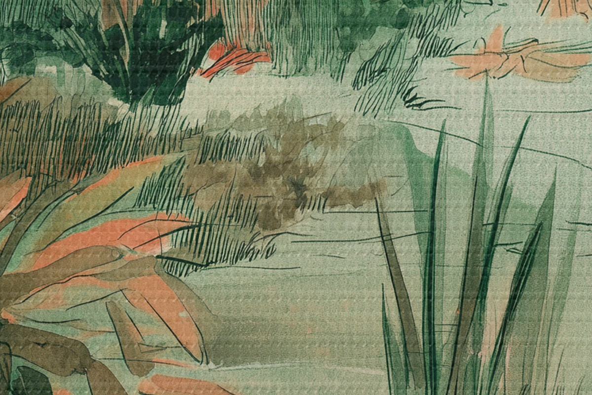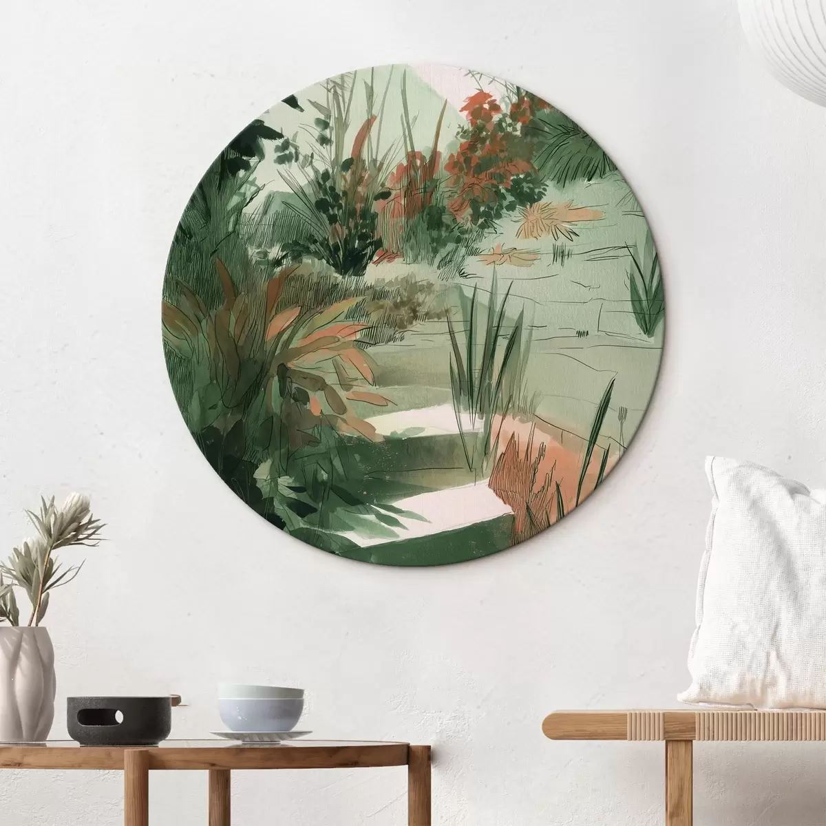 Obrázek Orientální zahrada s keři a stromy, zelené barvy Nr r44982