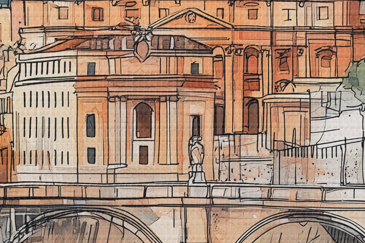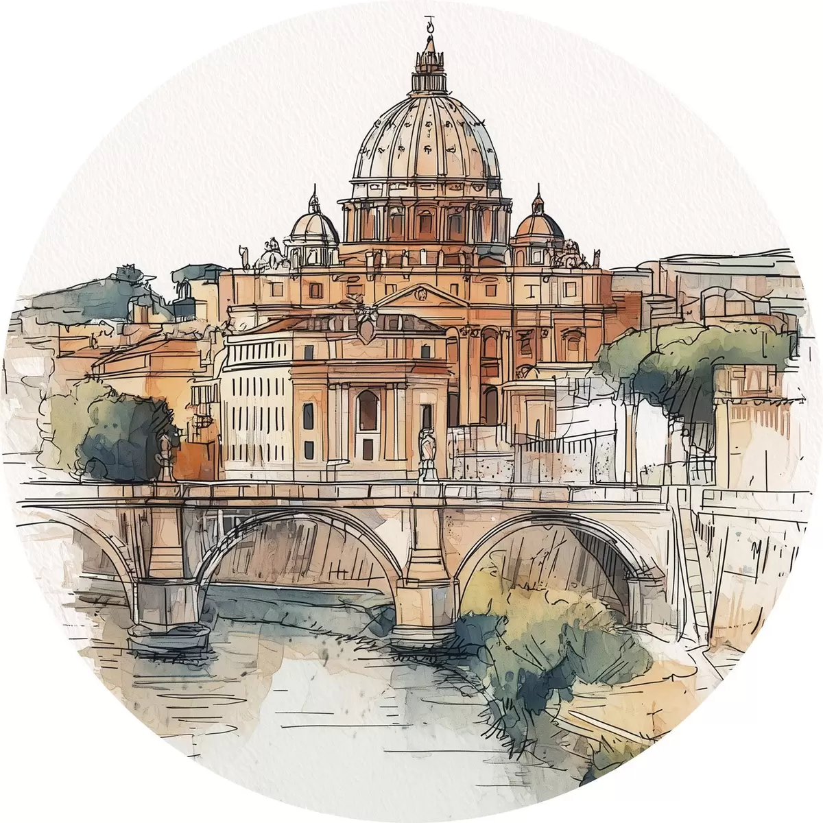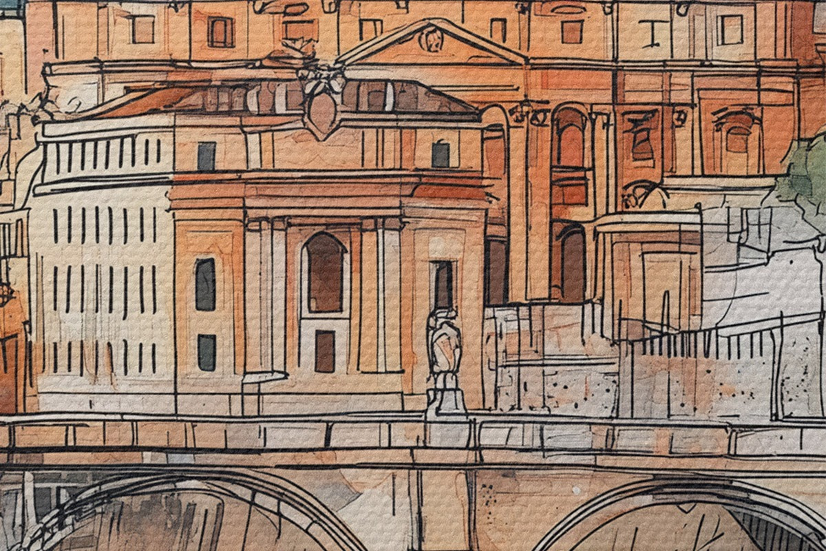 Obrázek Akvarel Řím město, skica kresba, architektura Nr r44983