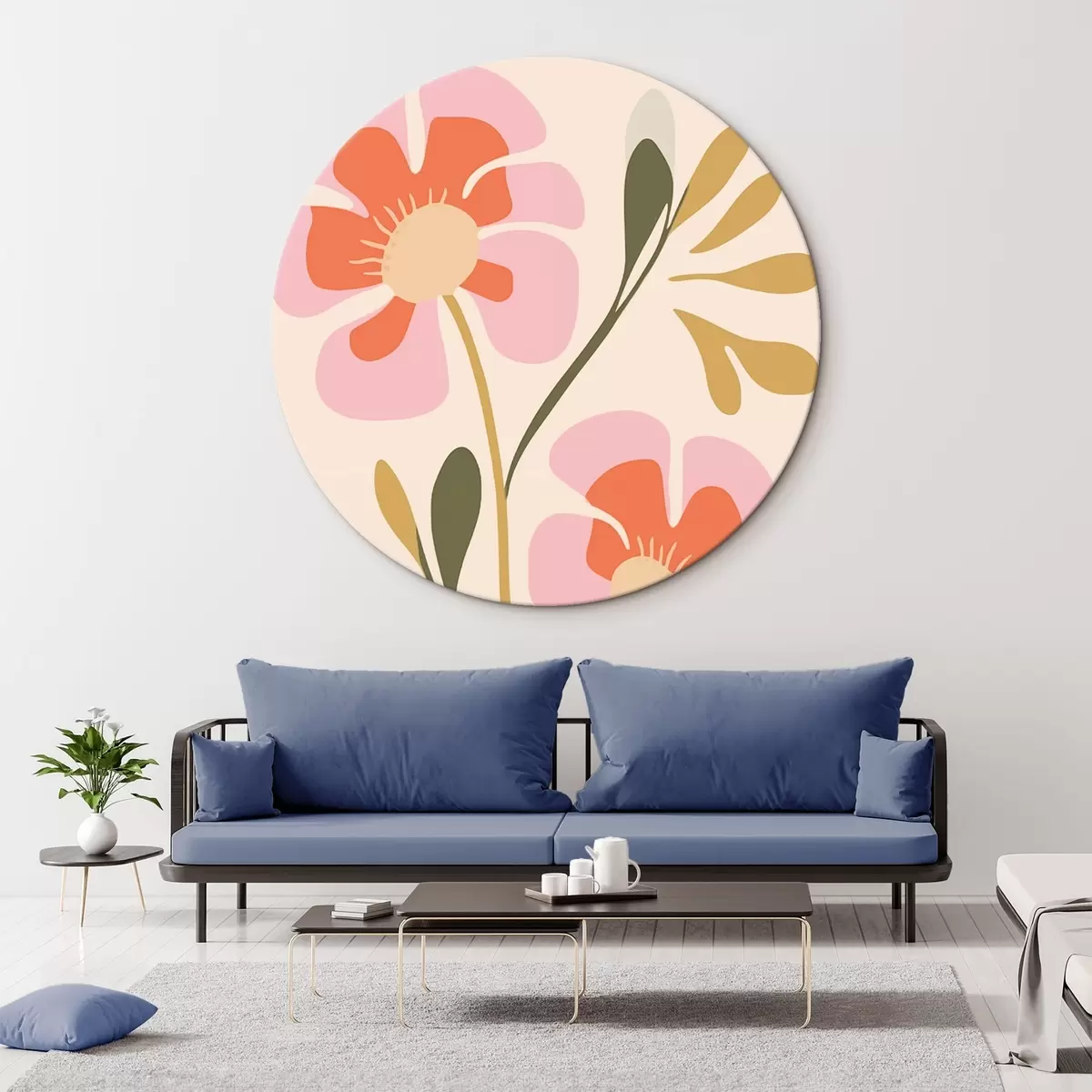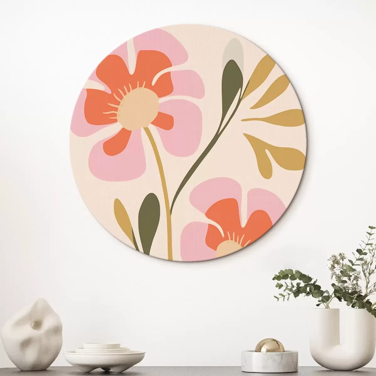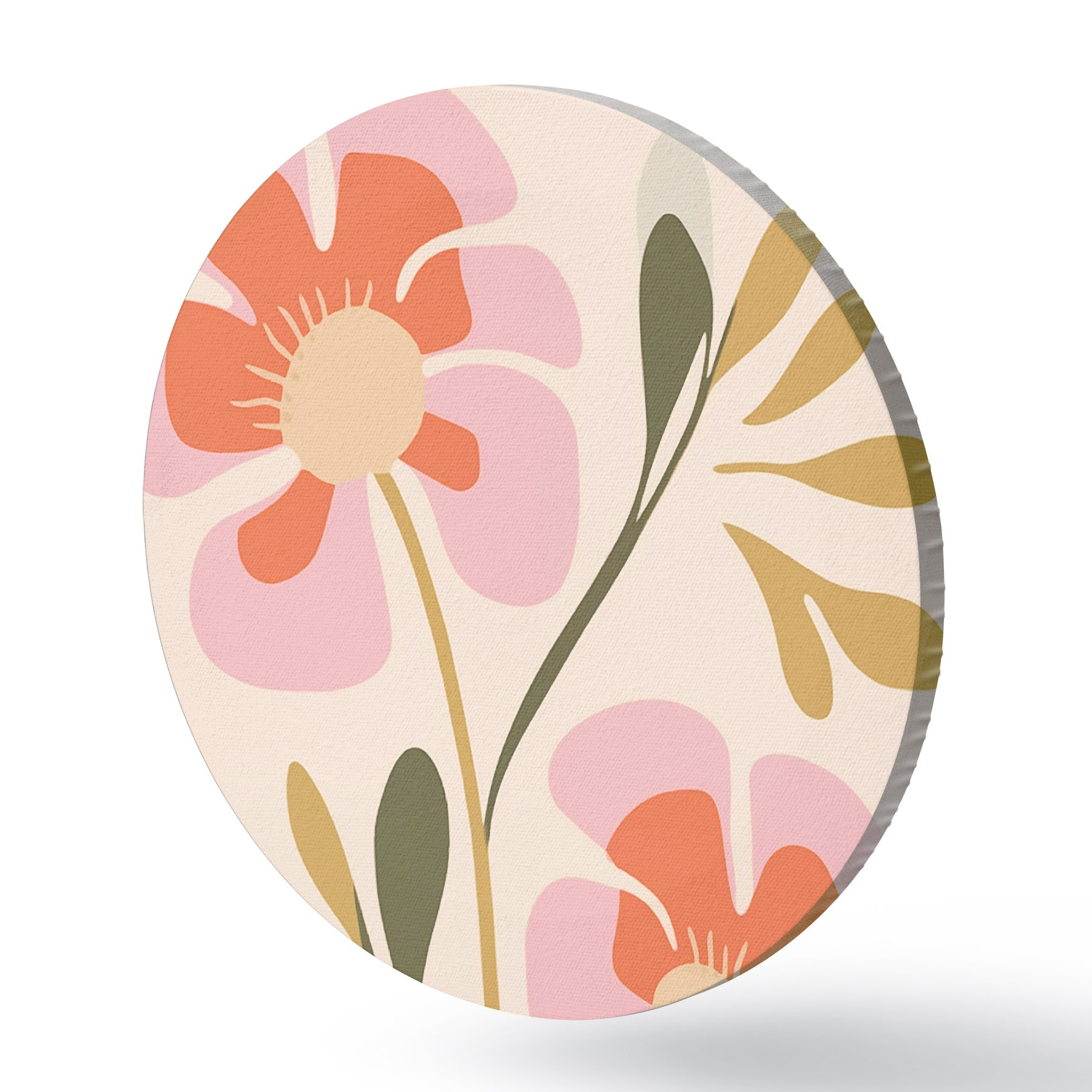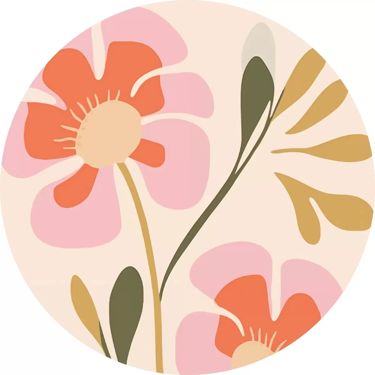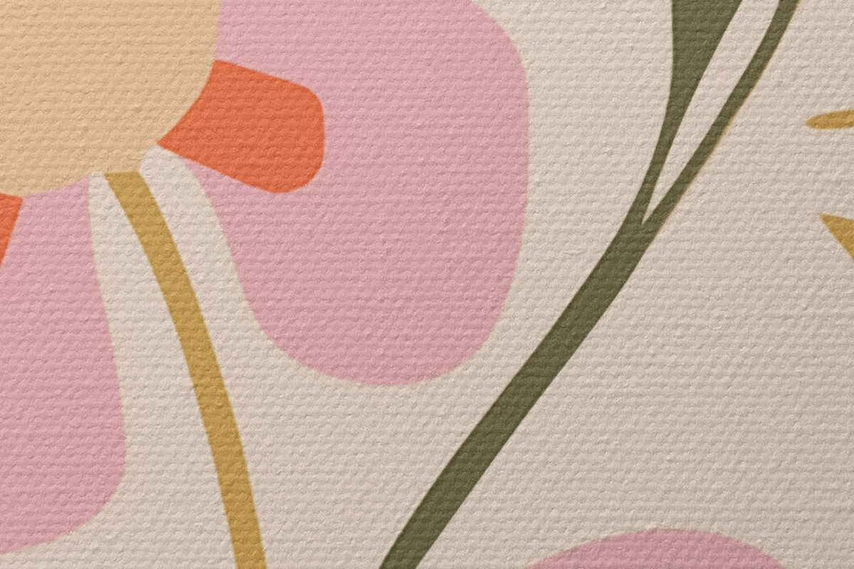 Obrázek Stylizované růžové a oranžové květy se zelenými listy Nr r45140