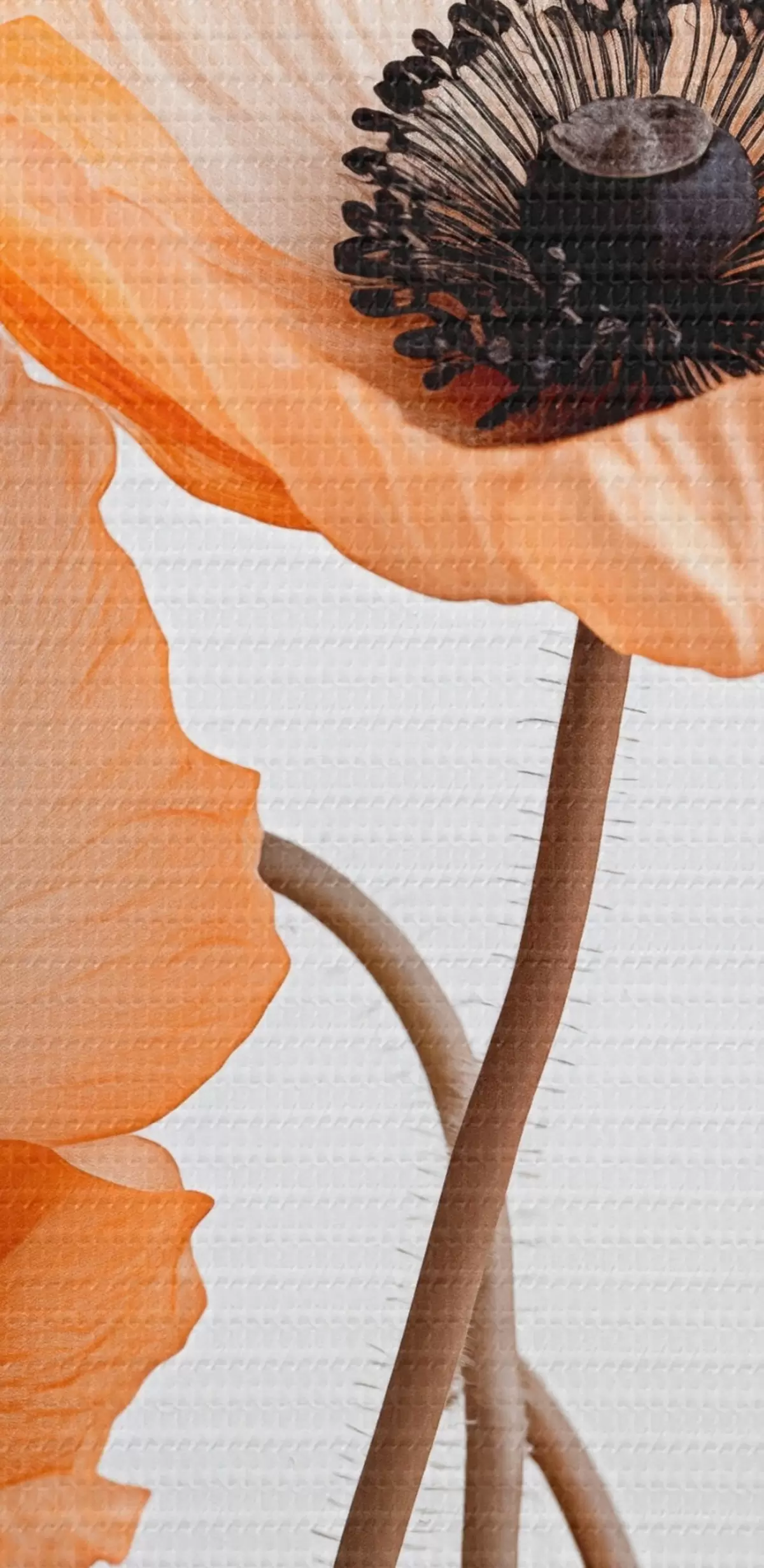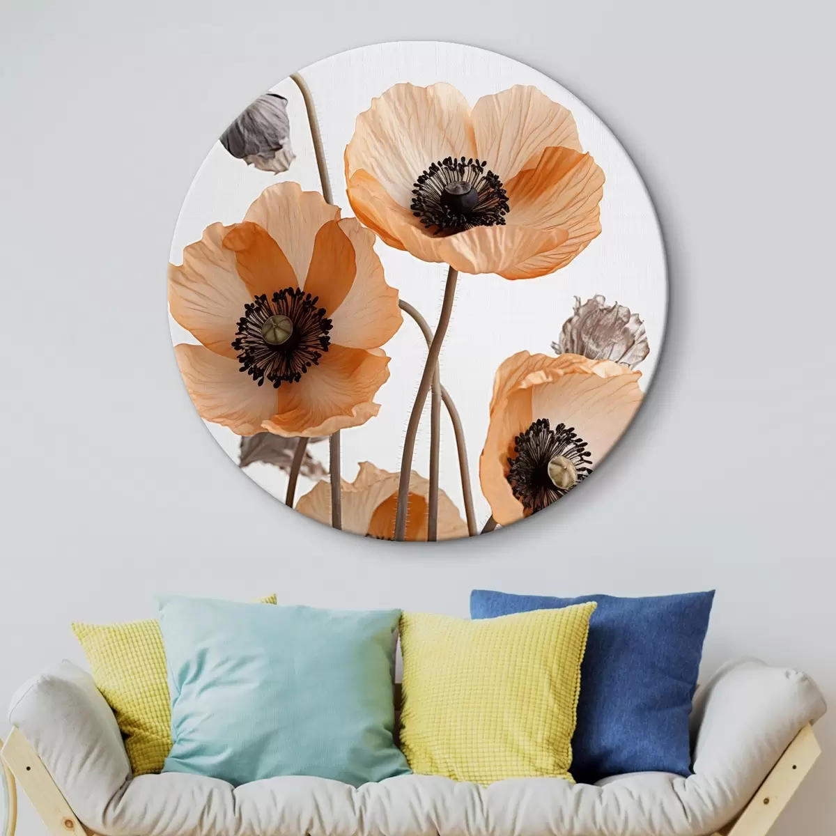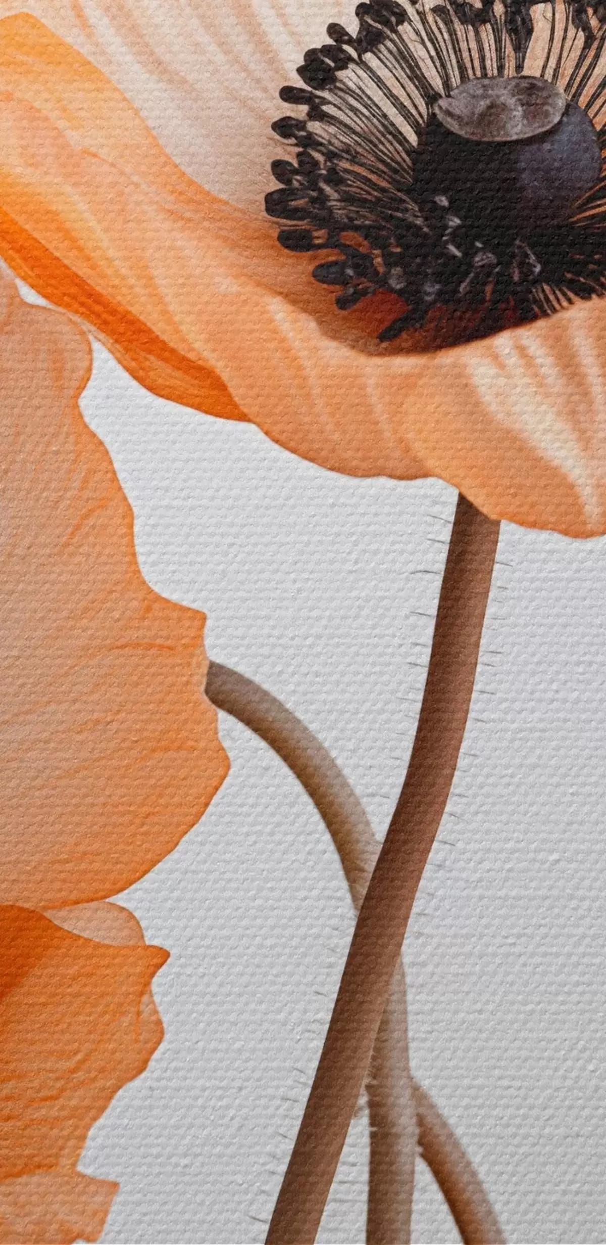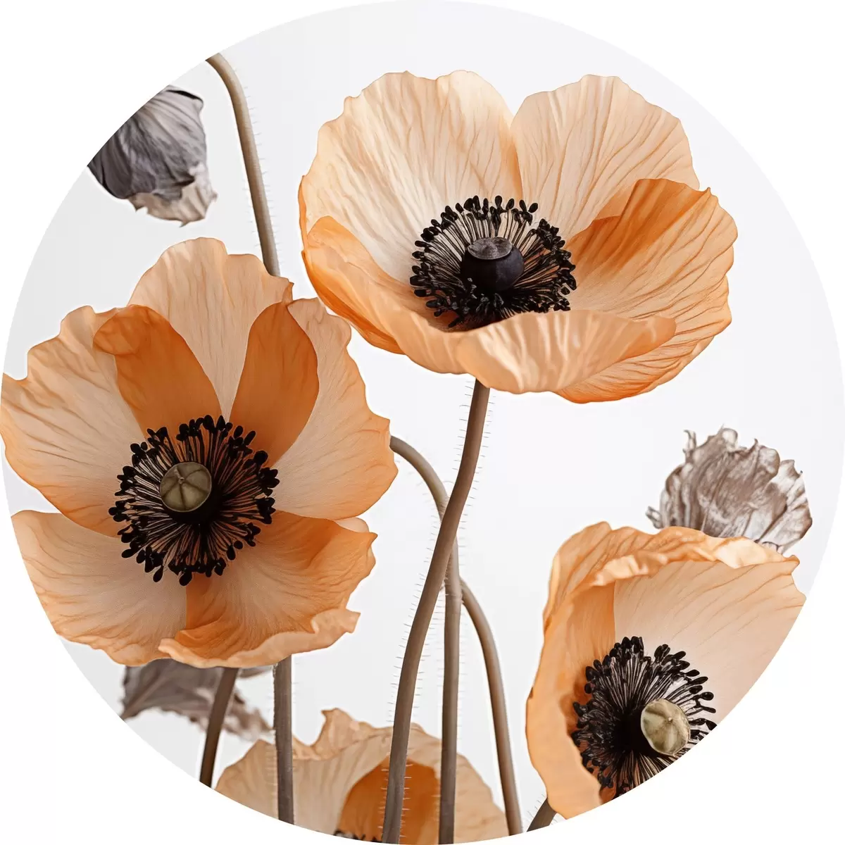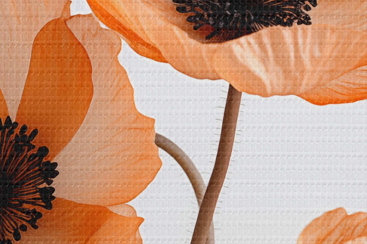Obrázek Oranžové máky, sušené květiny na světlém pozadí, měkké osvětlení, jemné okvětní lístky, květinové aranžmá Nr r45167