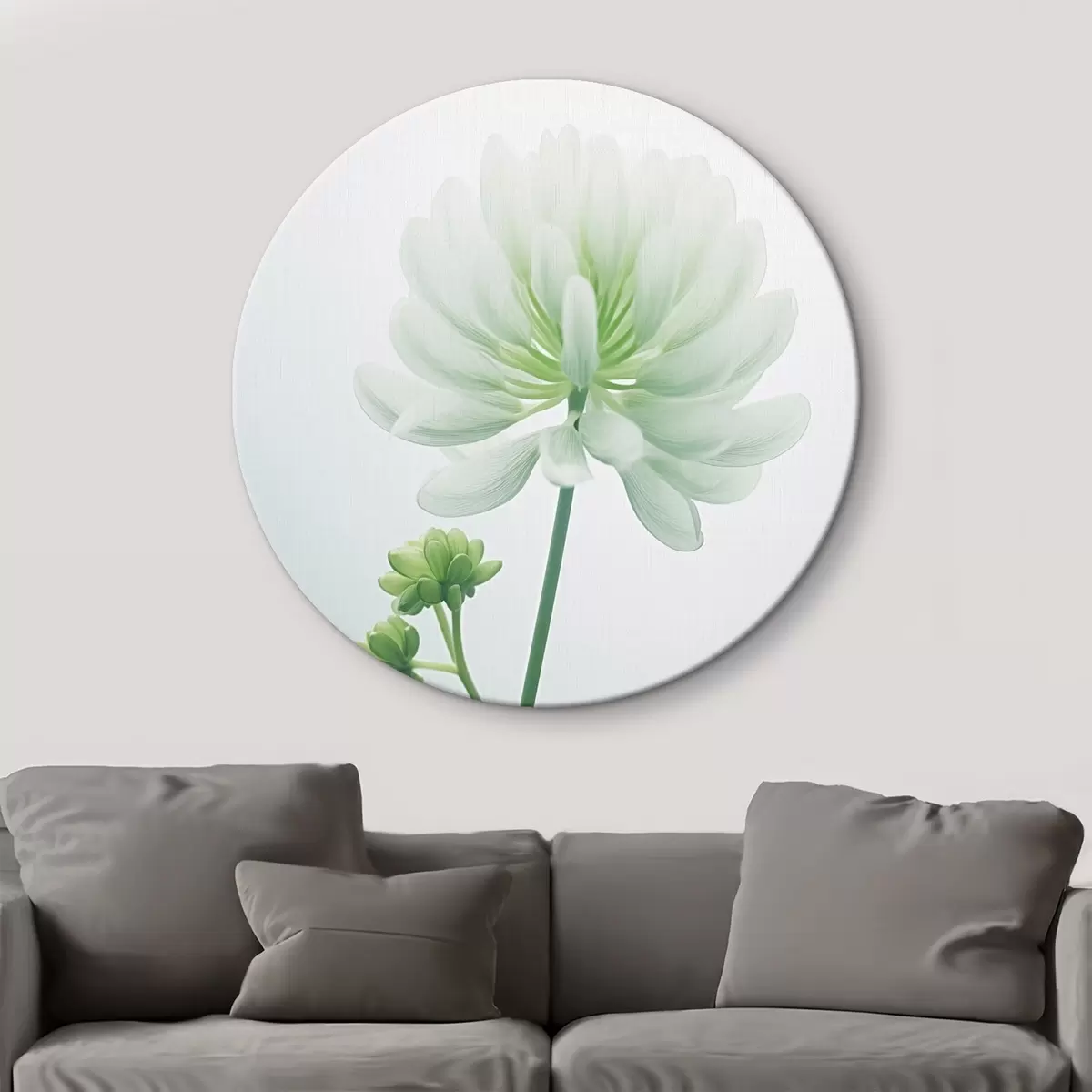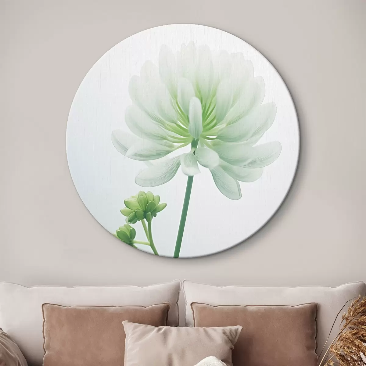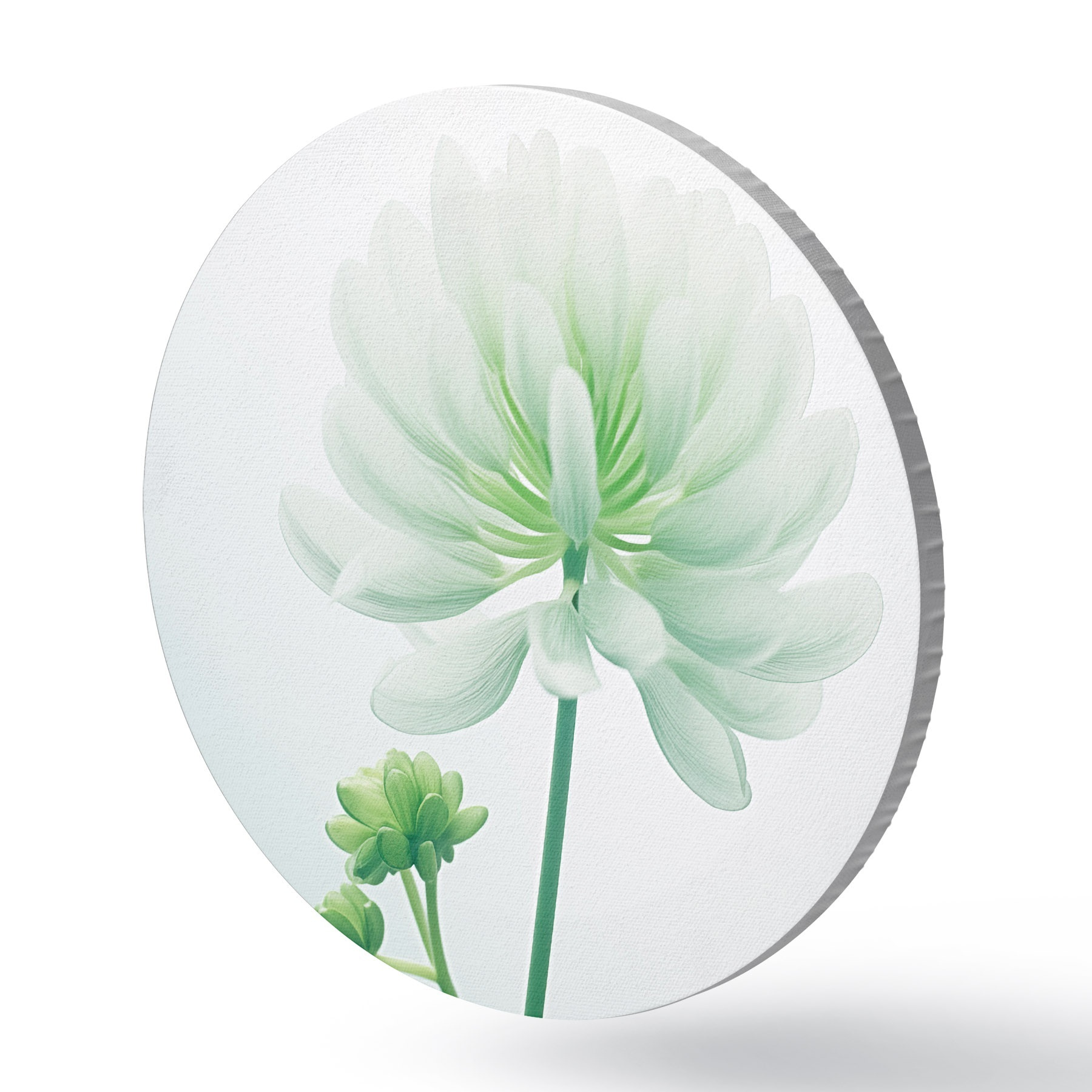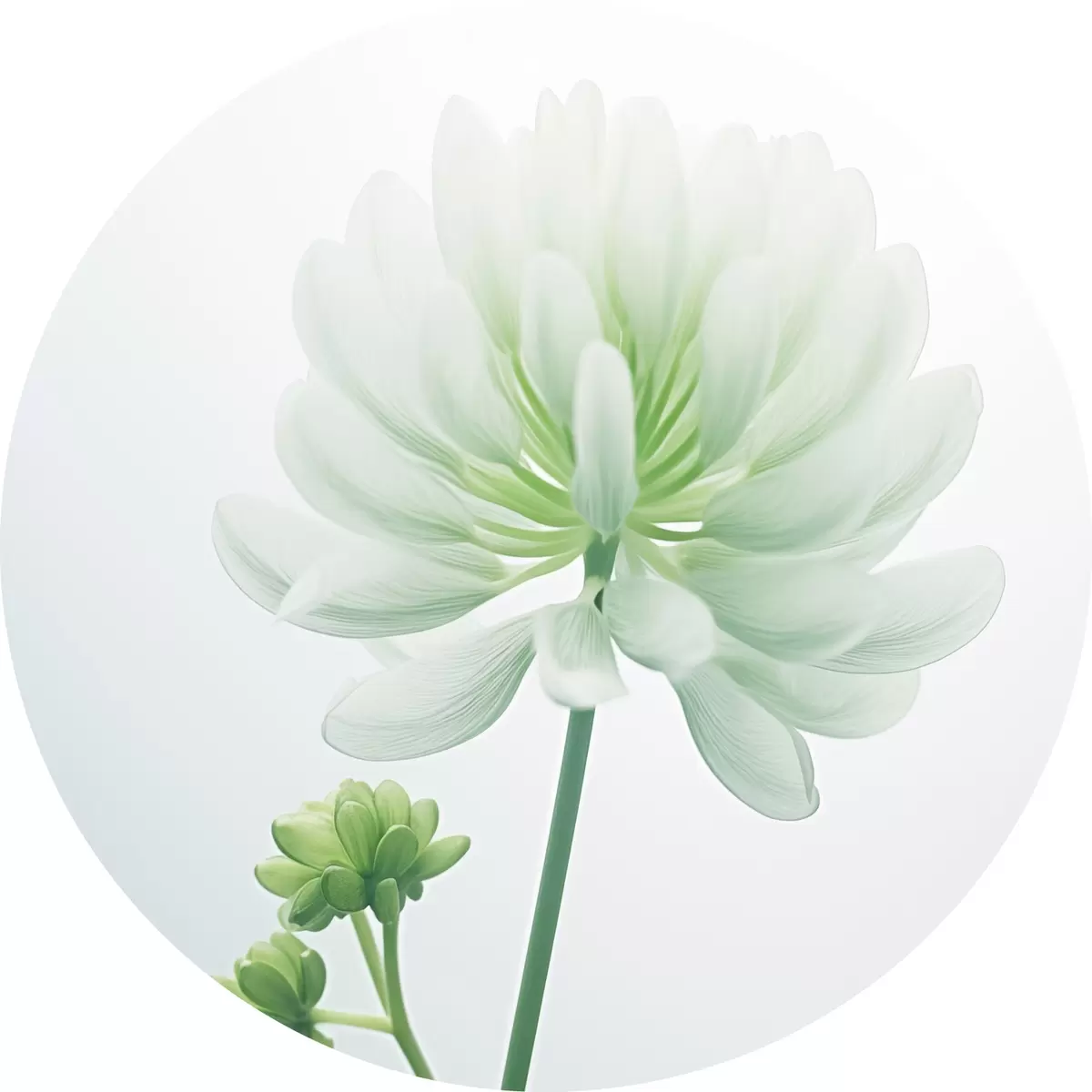 Obrázek Bílý květ jetele se zeleným stonkem a listy, měkké osvětlení, čisté pozadí, minimalistická kompozice, botanické motivy Nr r45171