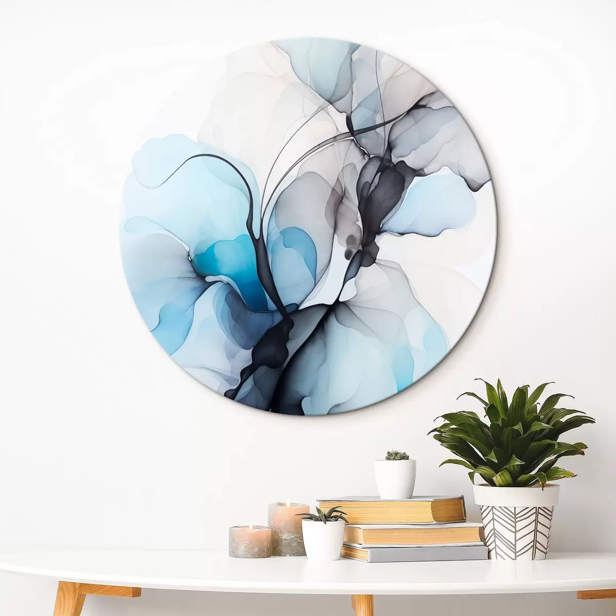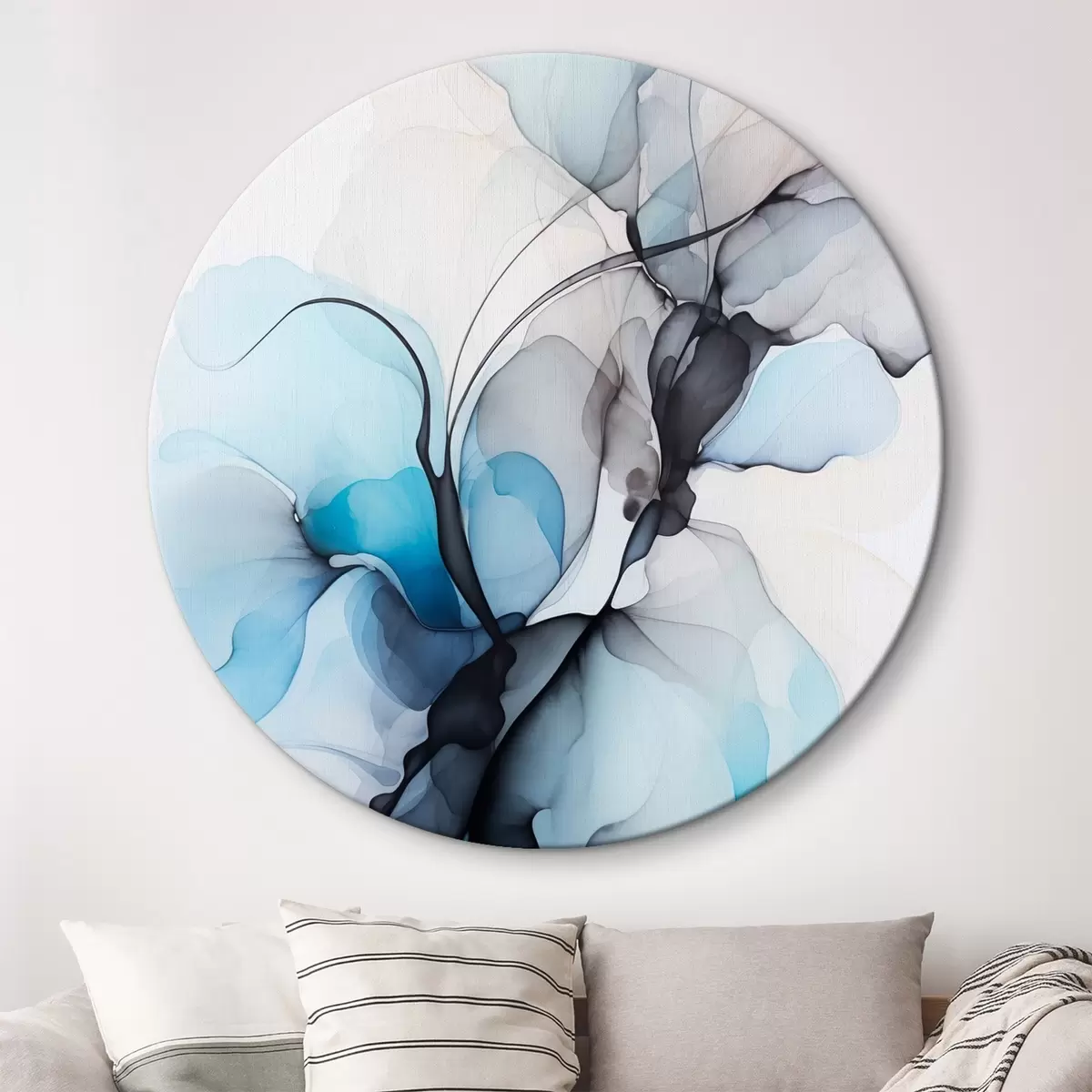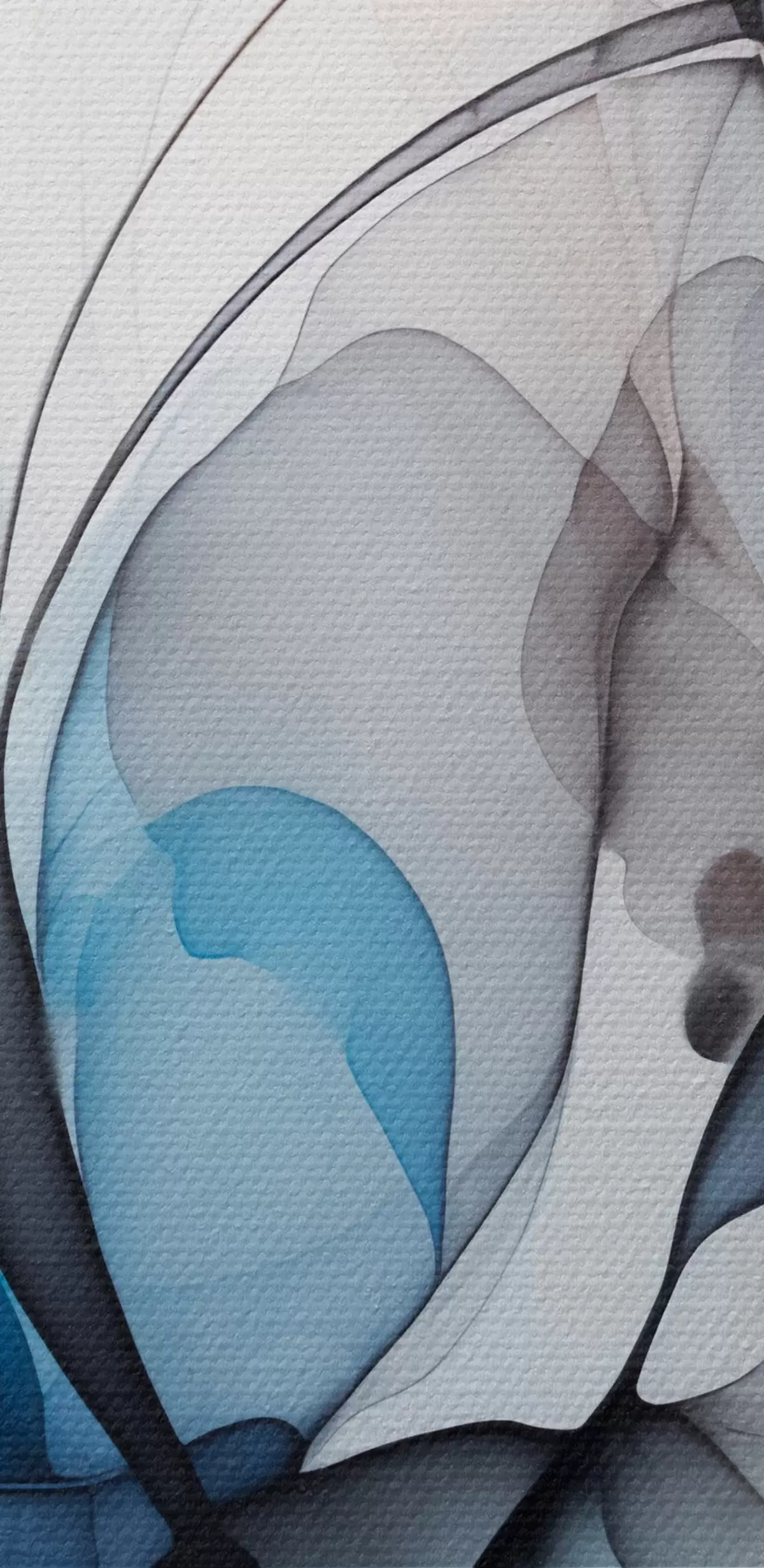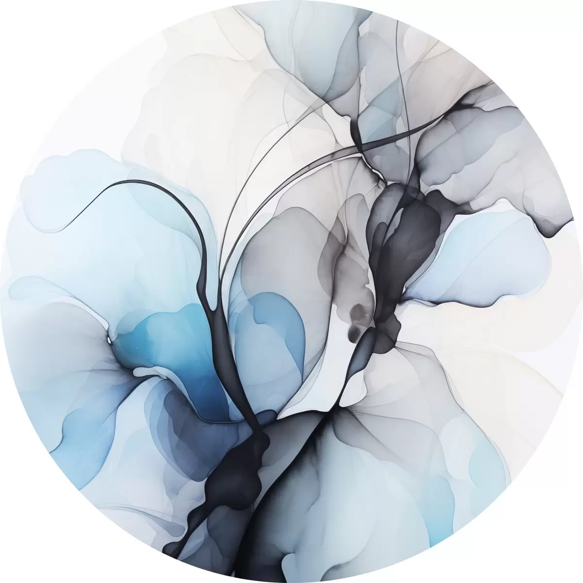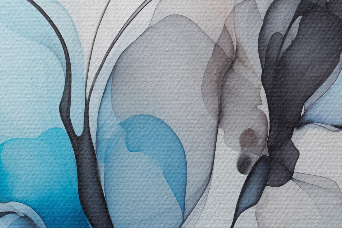 Obrázek Abstraktní kompozice s plynulými liniemi a průsvitnými okvětními lístky v odstínech modré, bílé a béžové, imitace lihového inkoustu Nr r45177