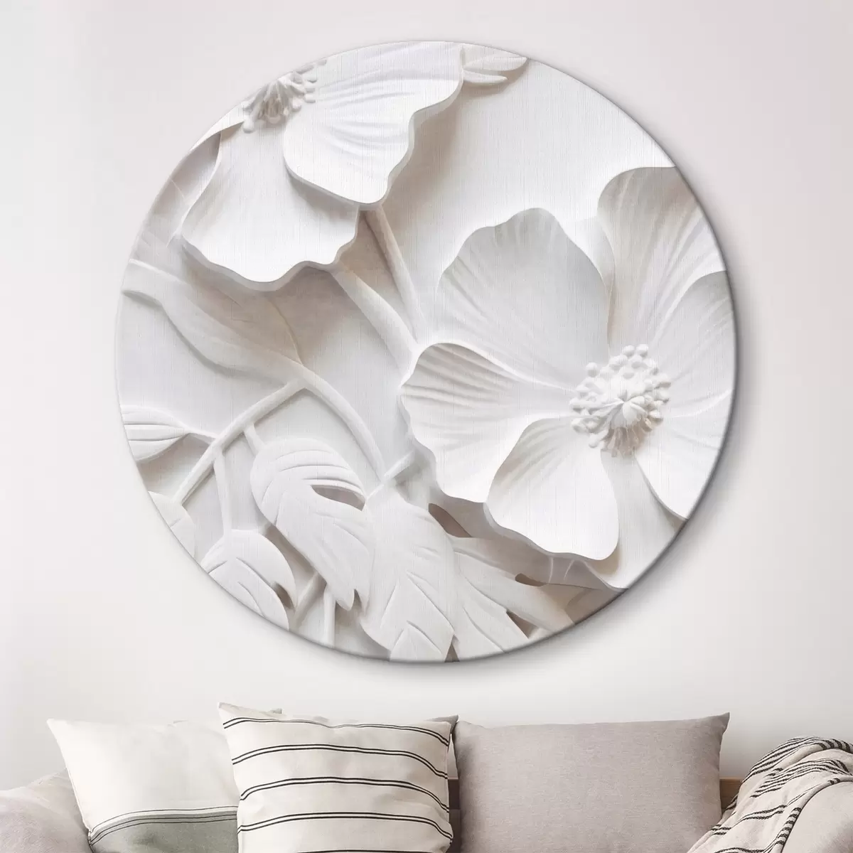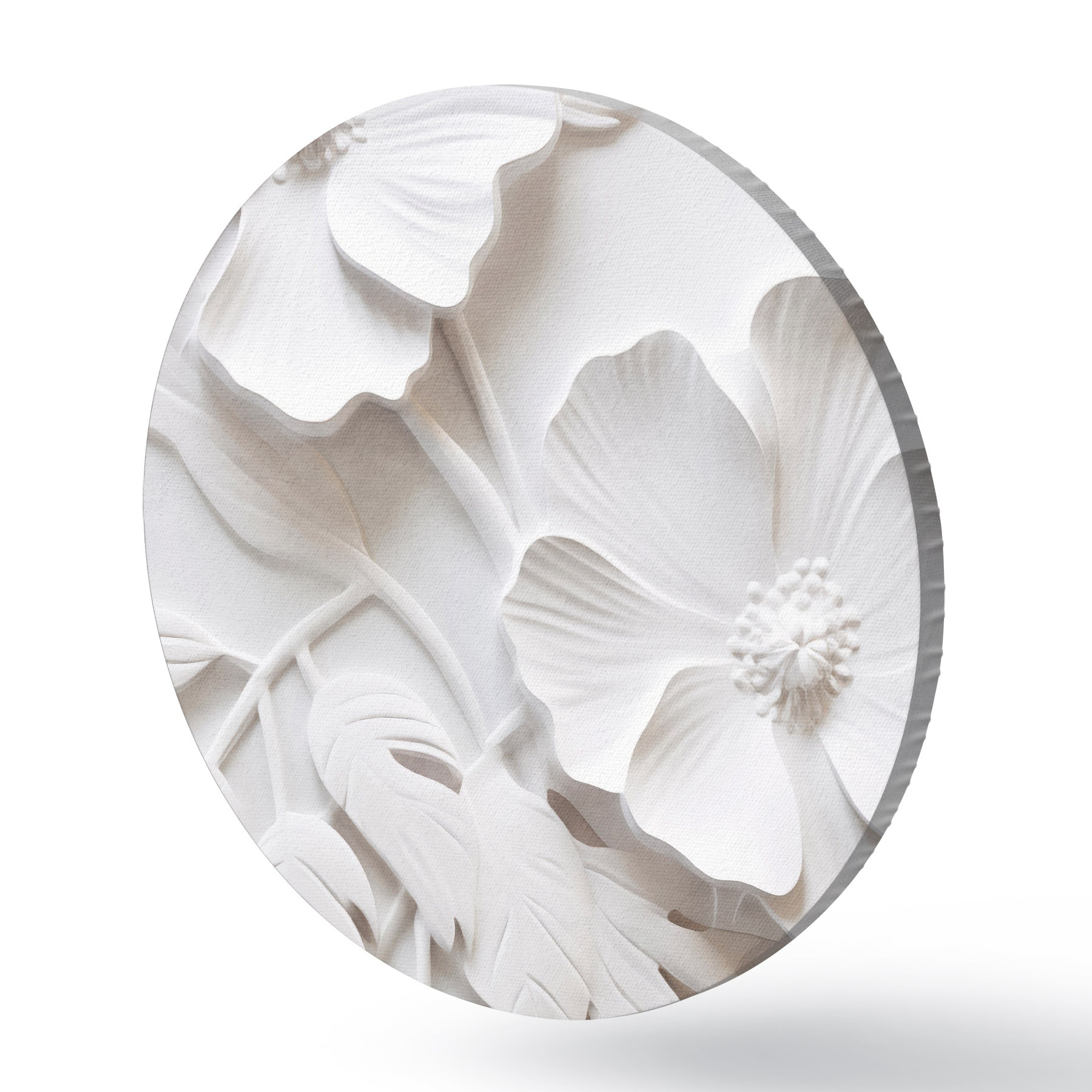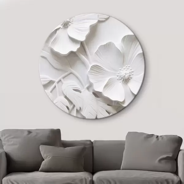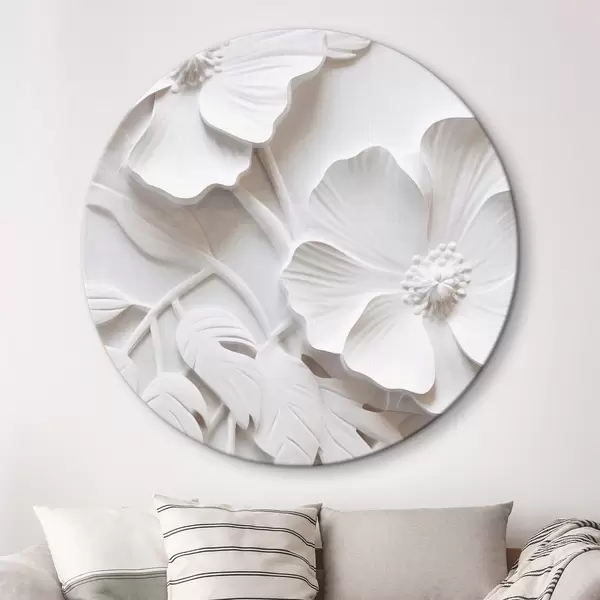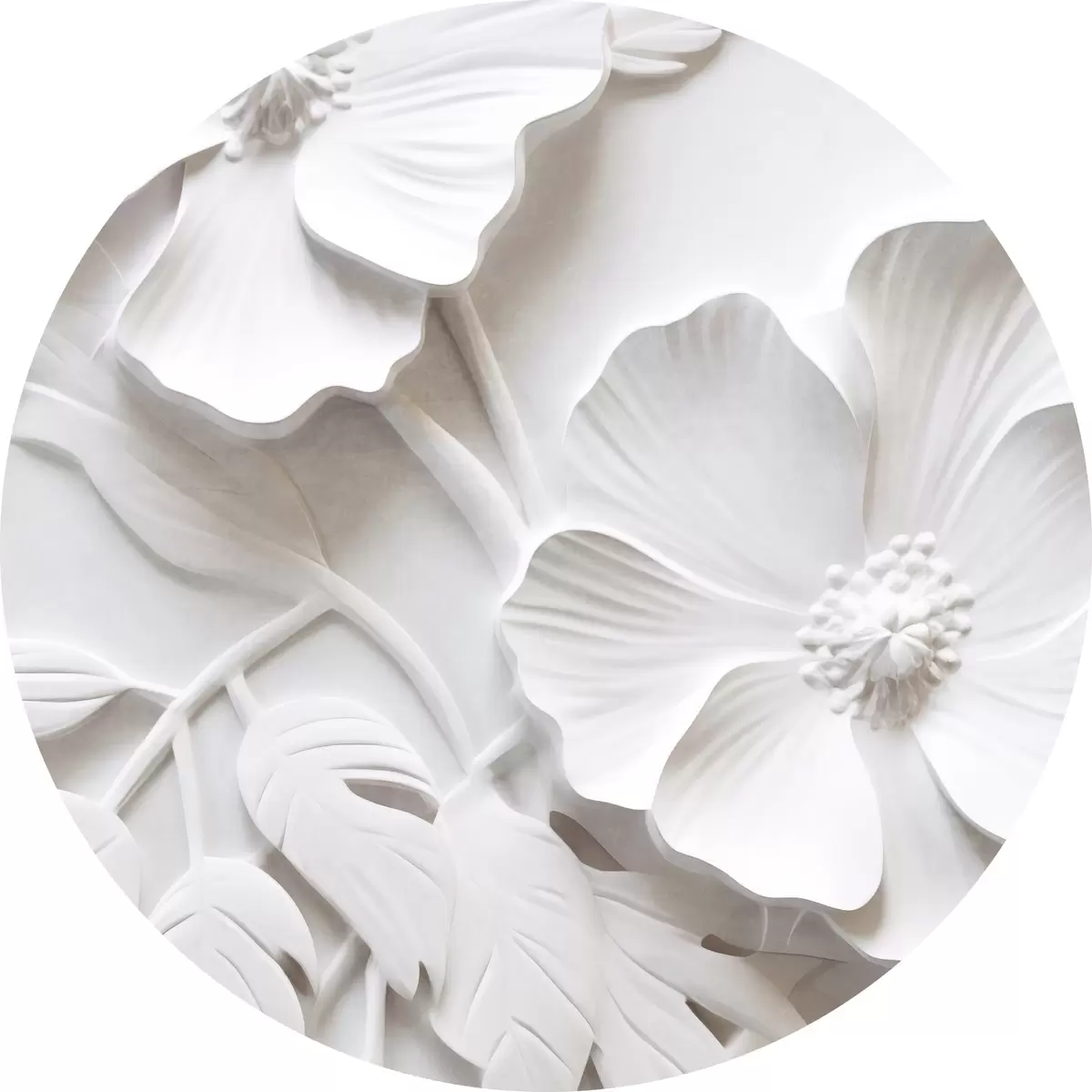 Obrázek Dekorativní minimalistické bílé květy s listy, imitace reliéfu, bílé pozadí Nr r45179