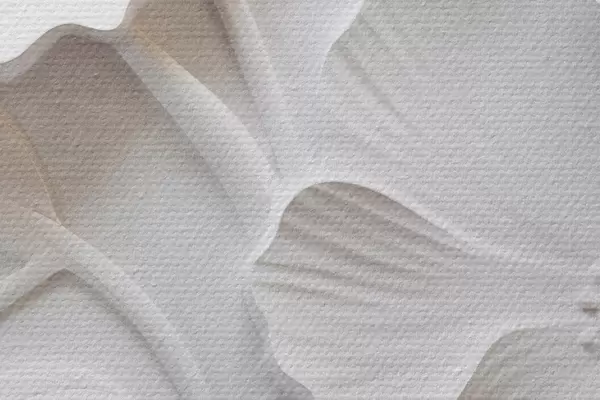 Obrázek Dekorativní minimalistické bílé květy s listy, imitace reliéfu, bílé pozadí Nr r45179