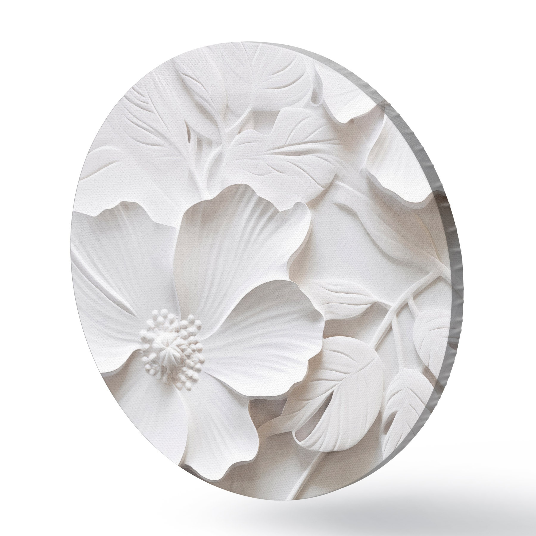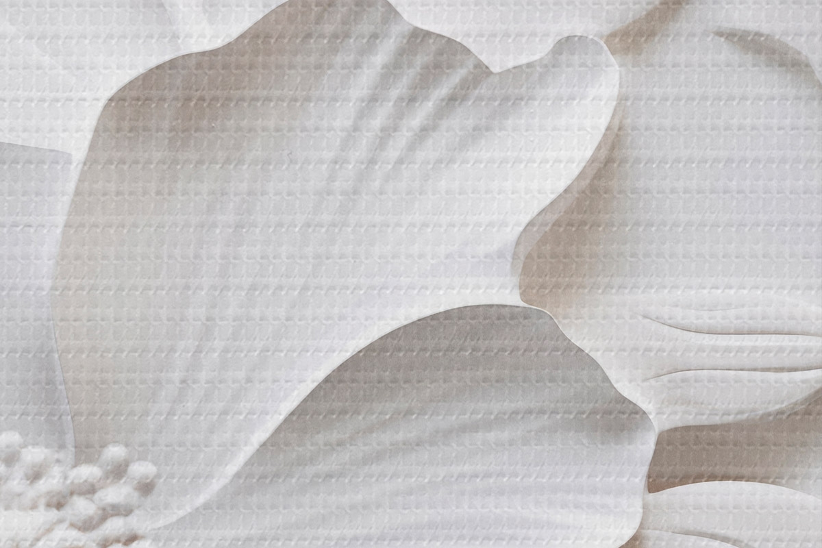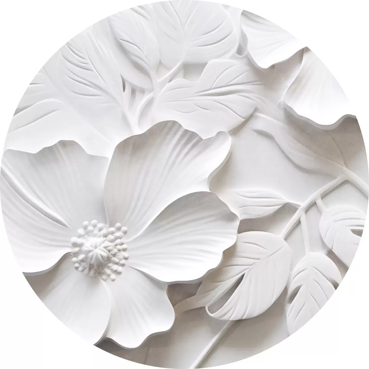 Obrázek Dekorativní minimalistické bílé květy s listy, imitace reliéfu, bílé pozadí Nr r45180